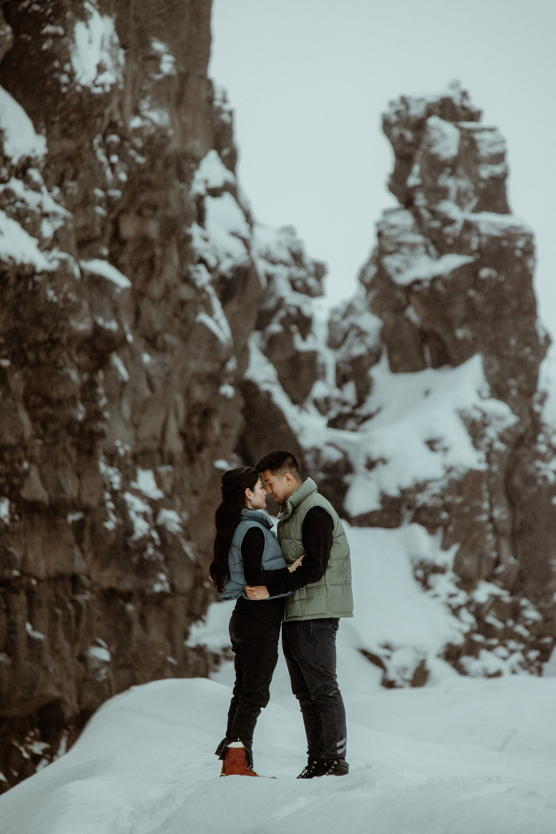 They explored Game of Thrones spots, hiked to frozen waterfalls, and ended the day at a serene fjord with family. Each photo captures their love in the midst of Iceland’s enchanting beauty.