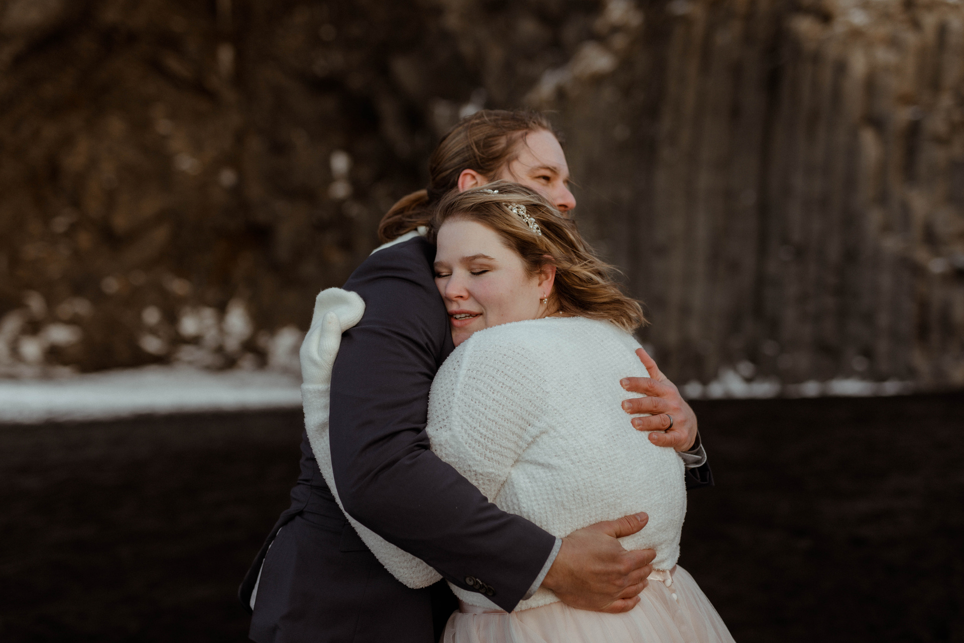 Caly+Seth had beautiful intimate ceremony between two huge rocks at the Londrangar cliff.