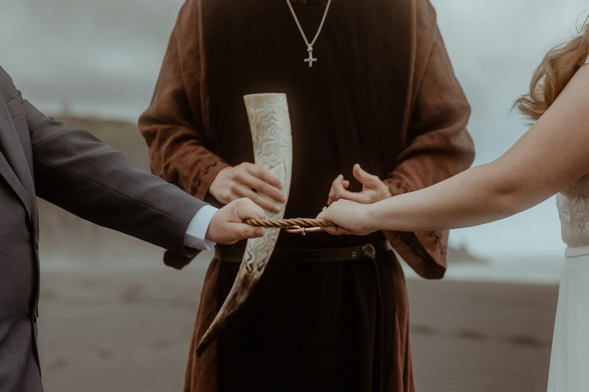 Next, imagine a heartwarming ceremony on a secluded black sand beach. Their traditional pagan ceremony was just as unique and special as their love, set against the stunning backdrop of the Icelandic coast.