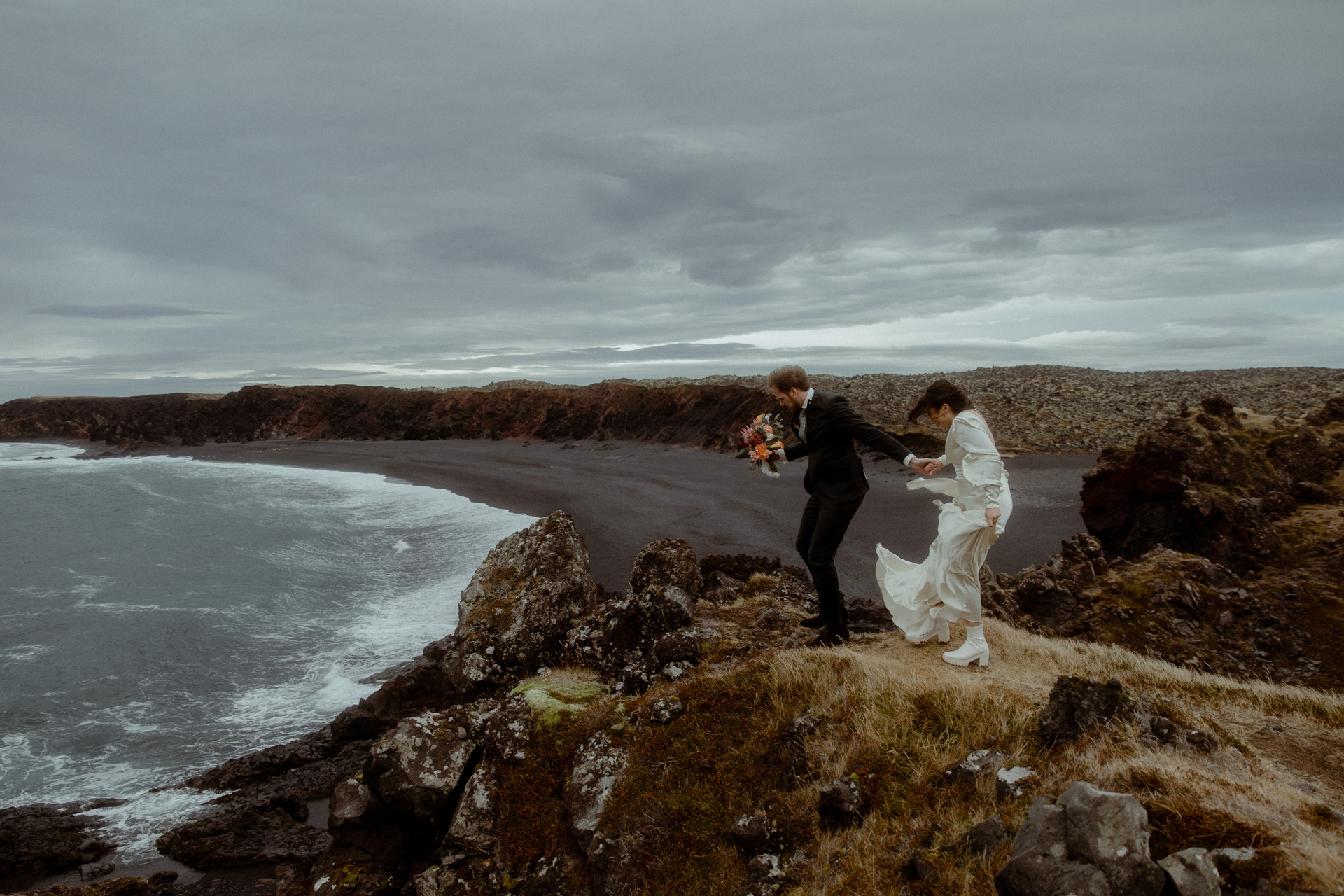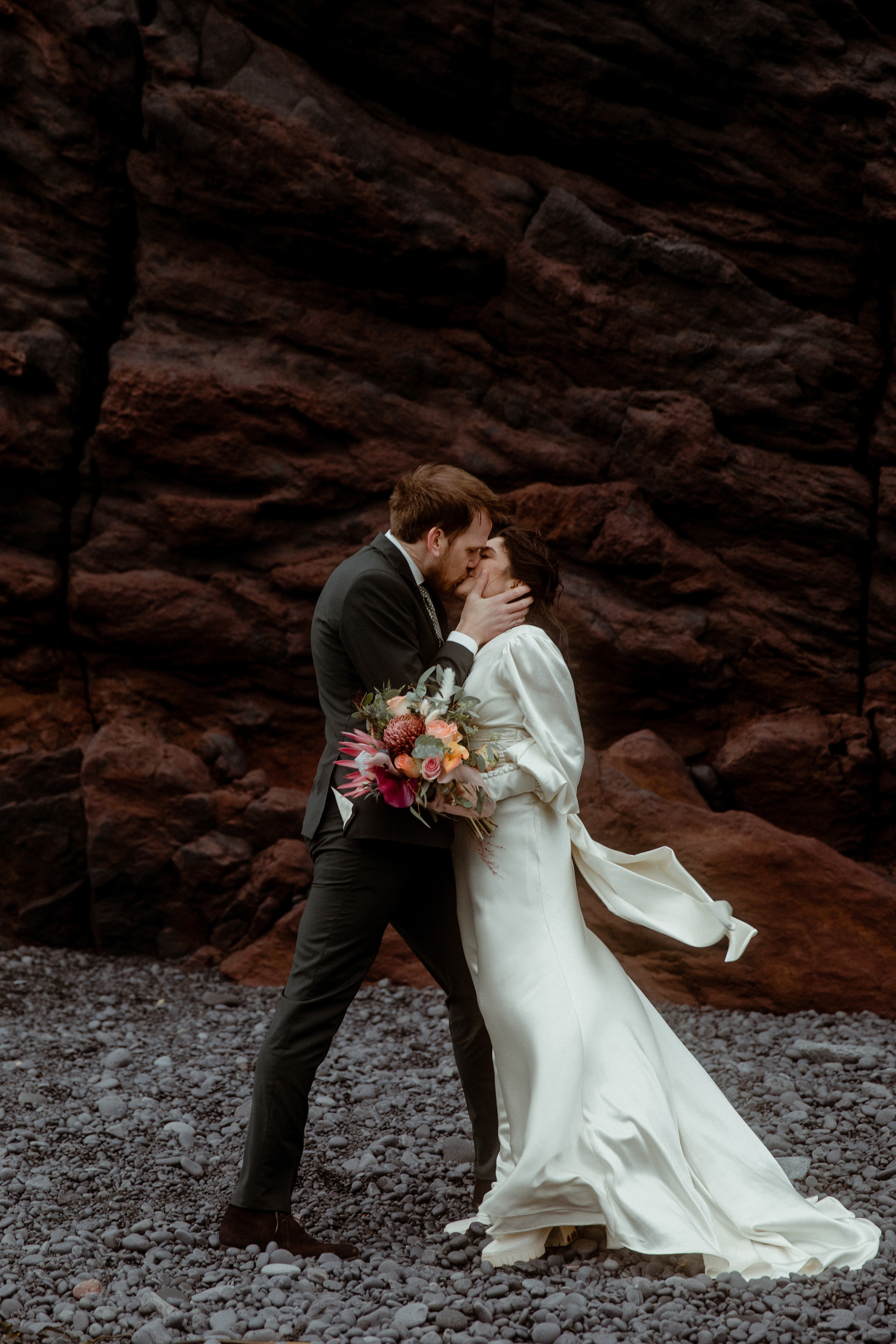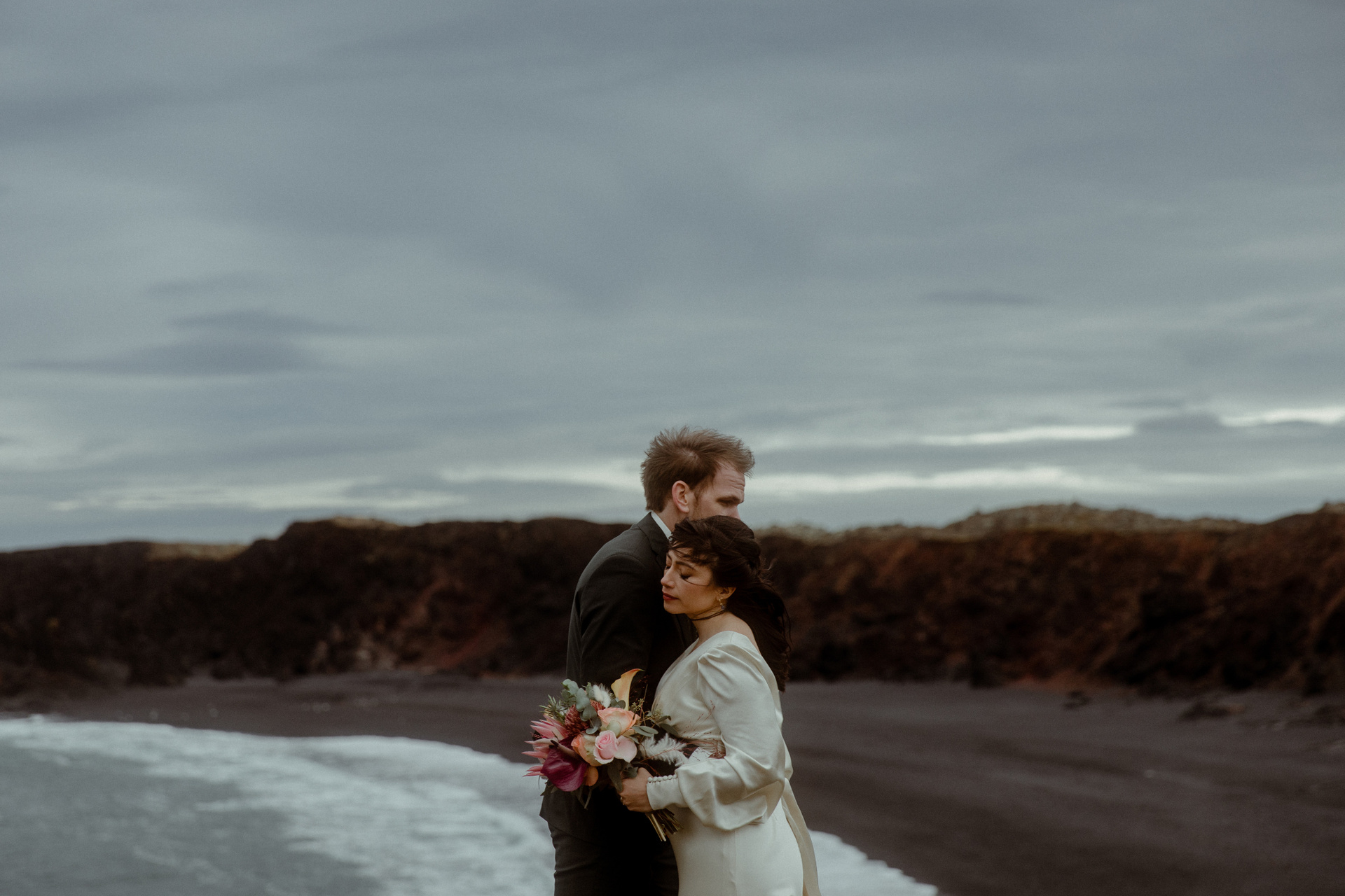 Winter elopement in Iceland | Stormy elopement at Black sand beach
