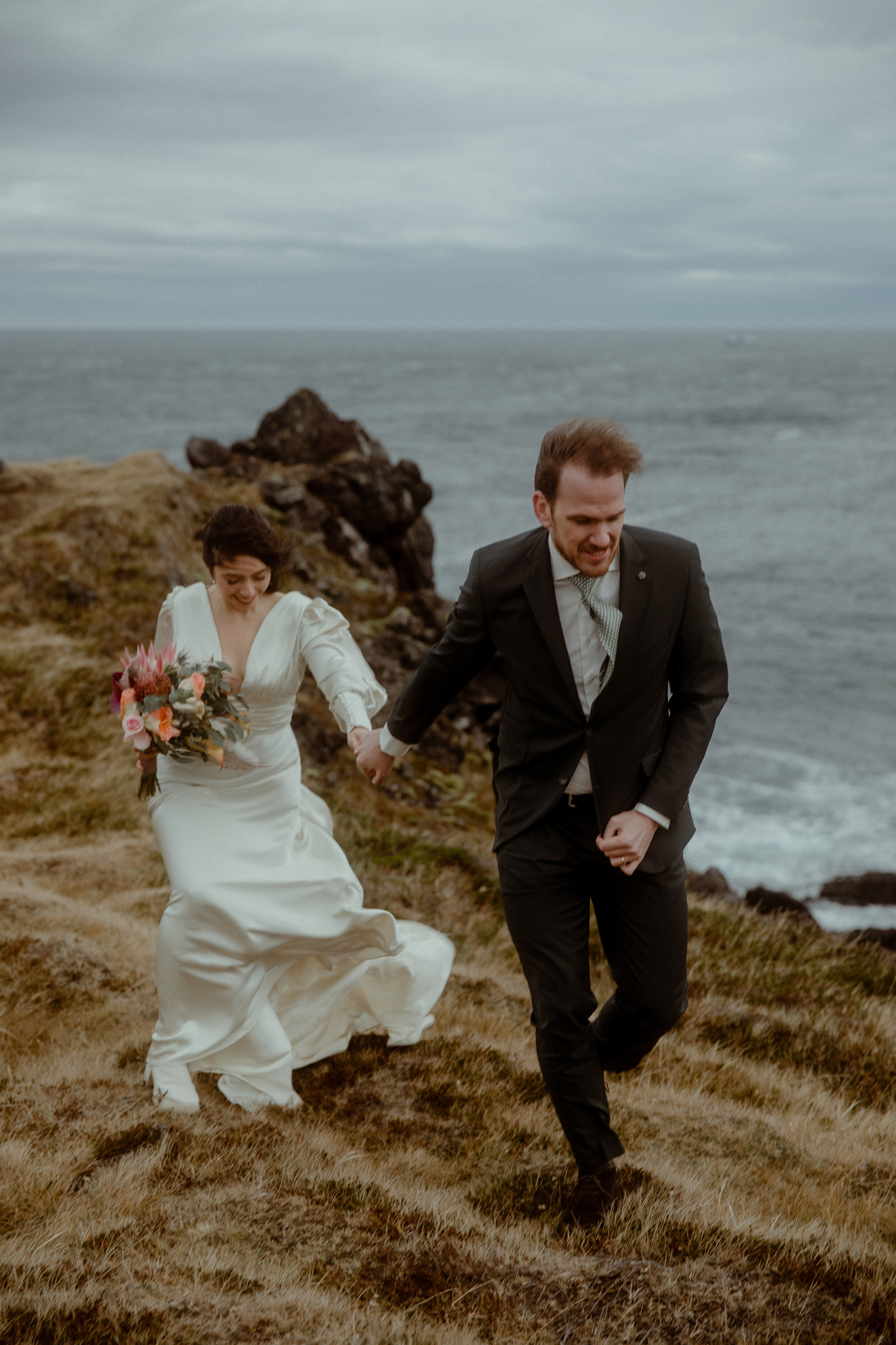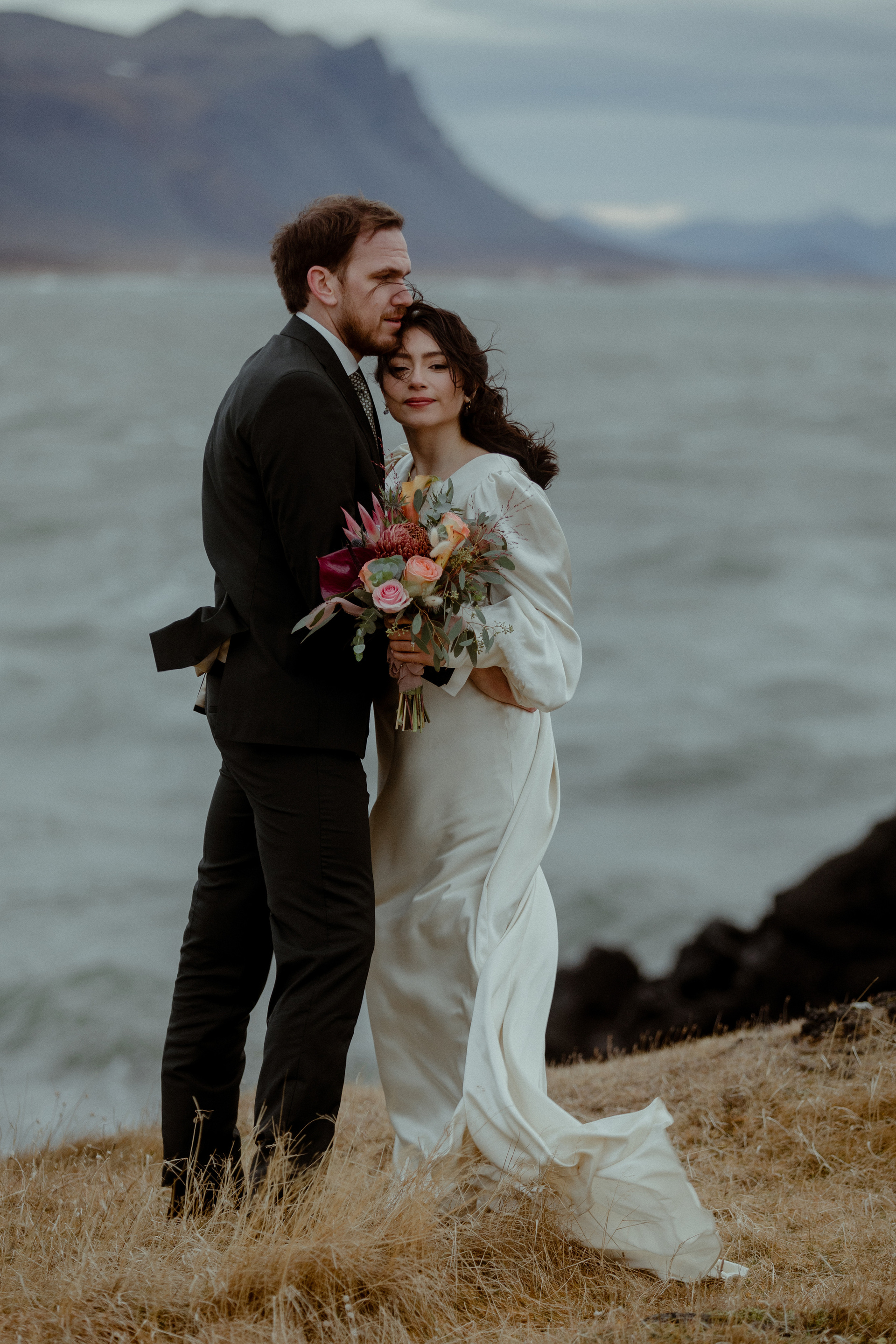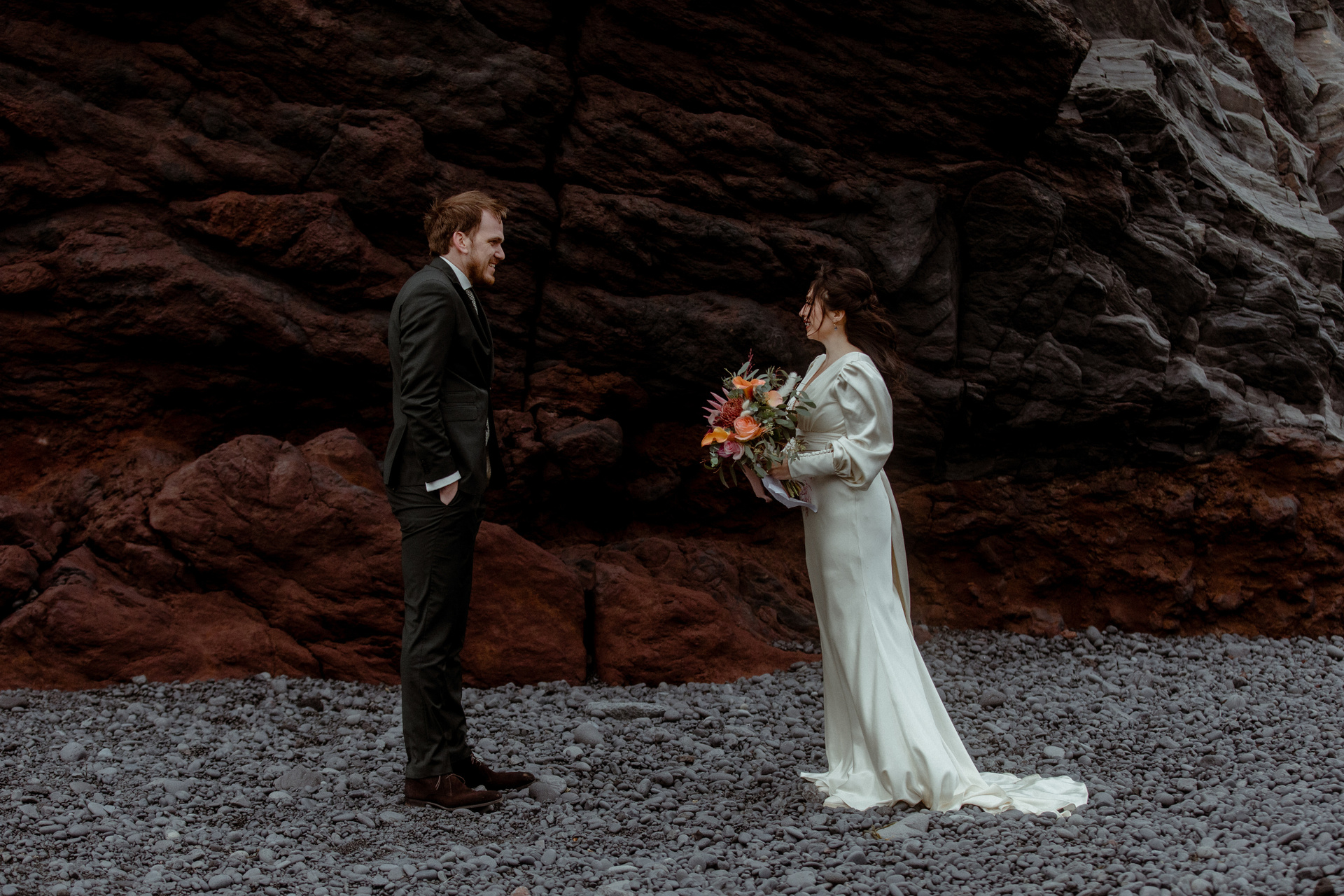 Winter elopement in Iceland | Stormy elopement at Black sand beach