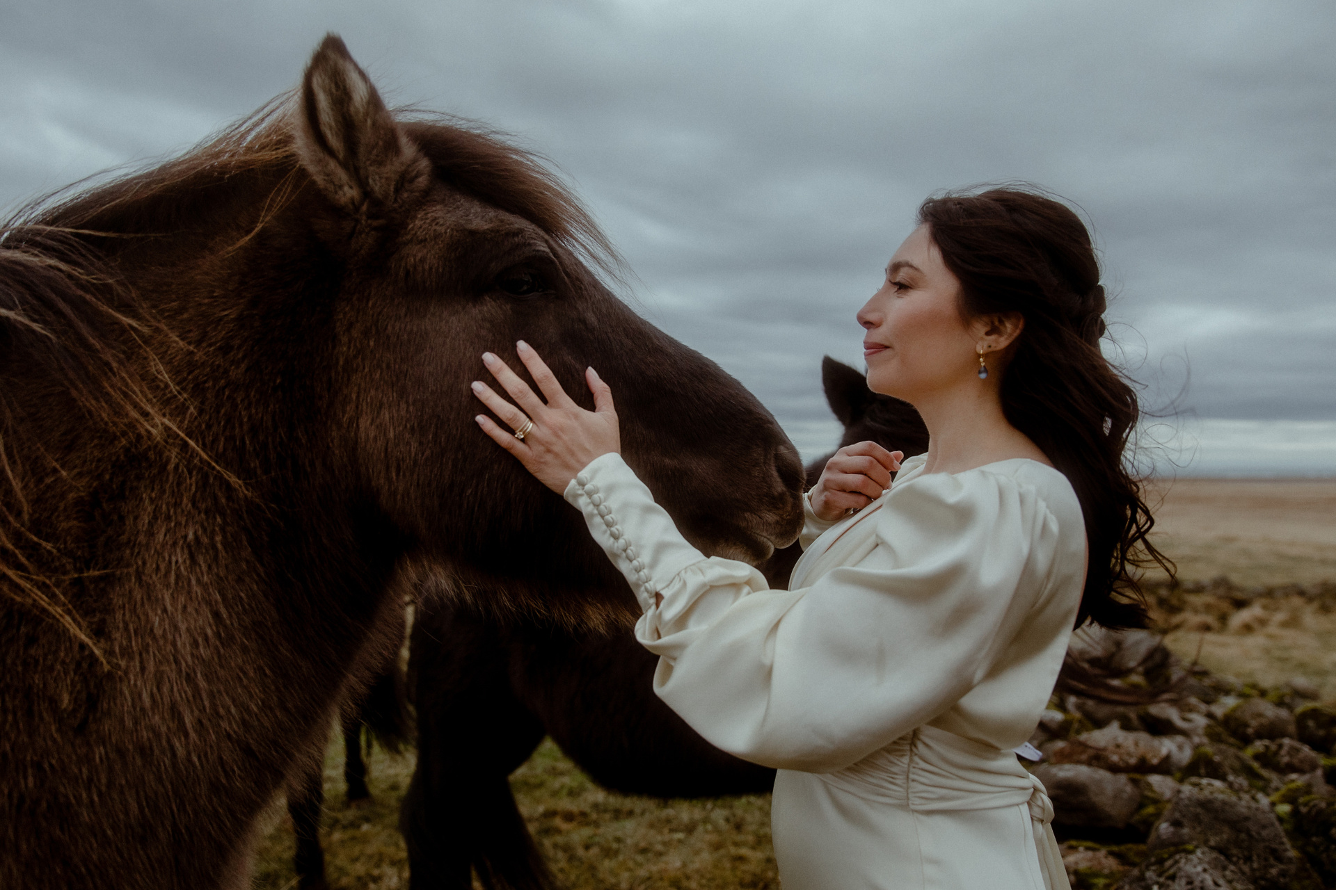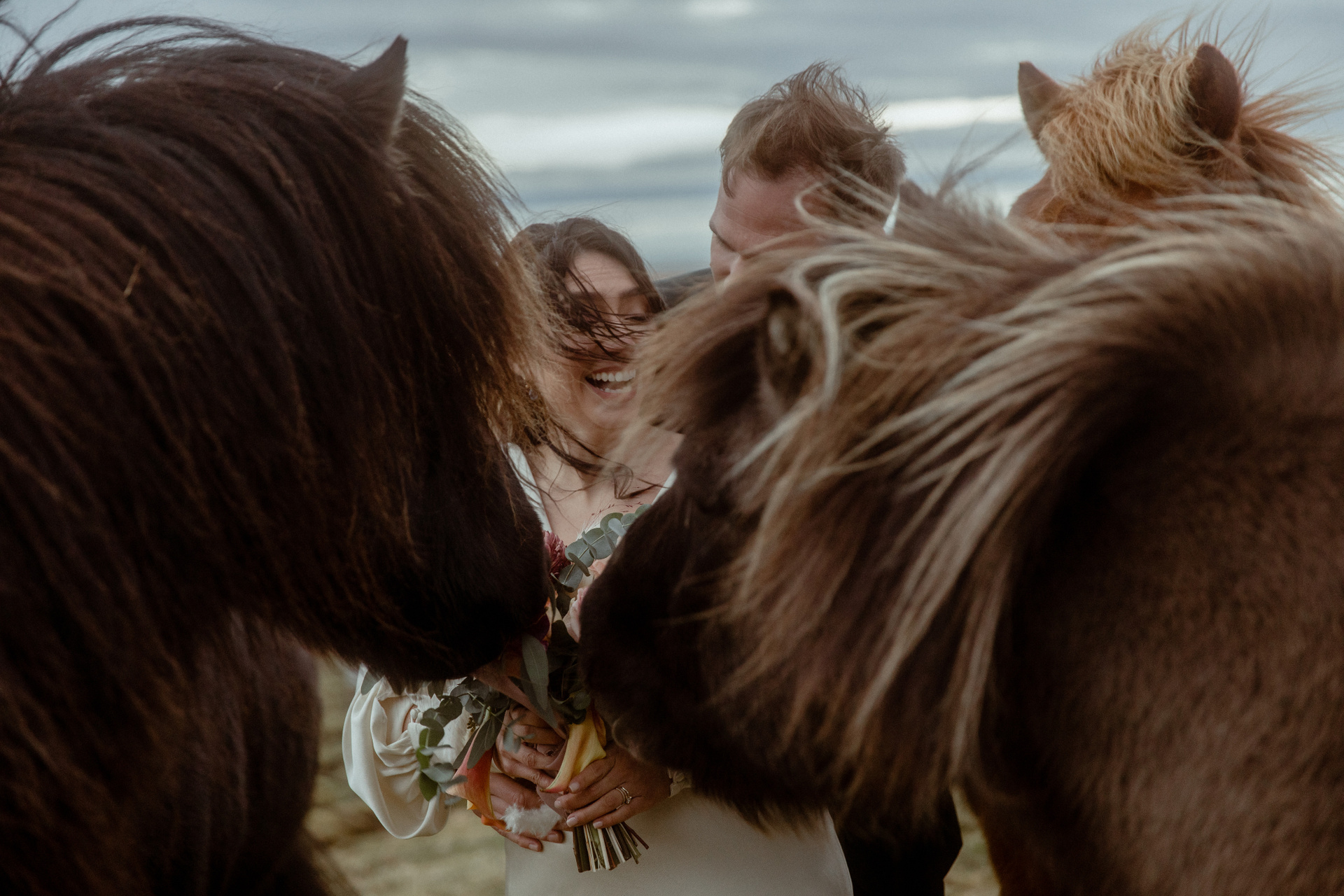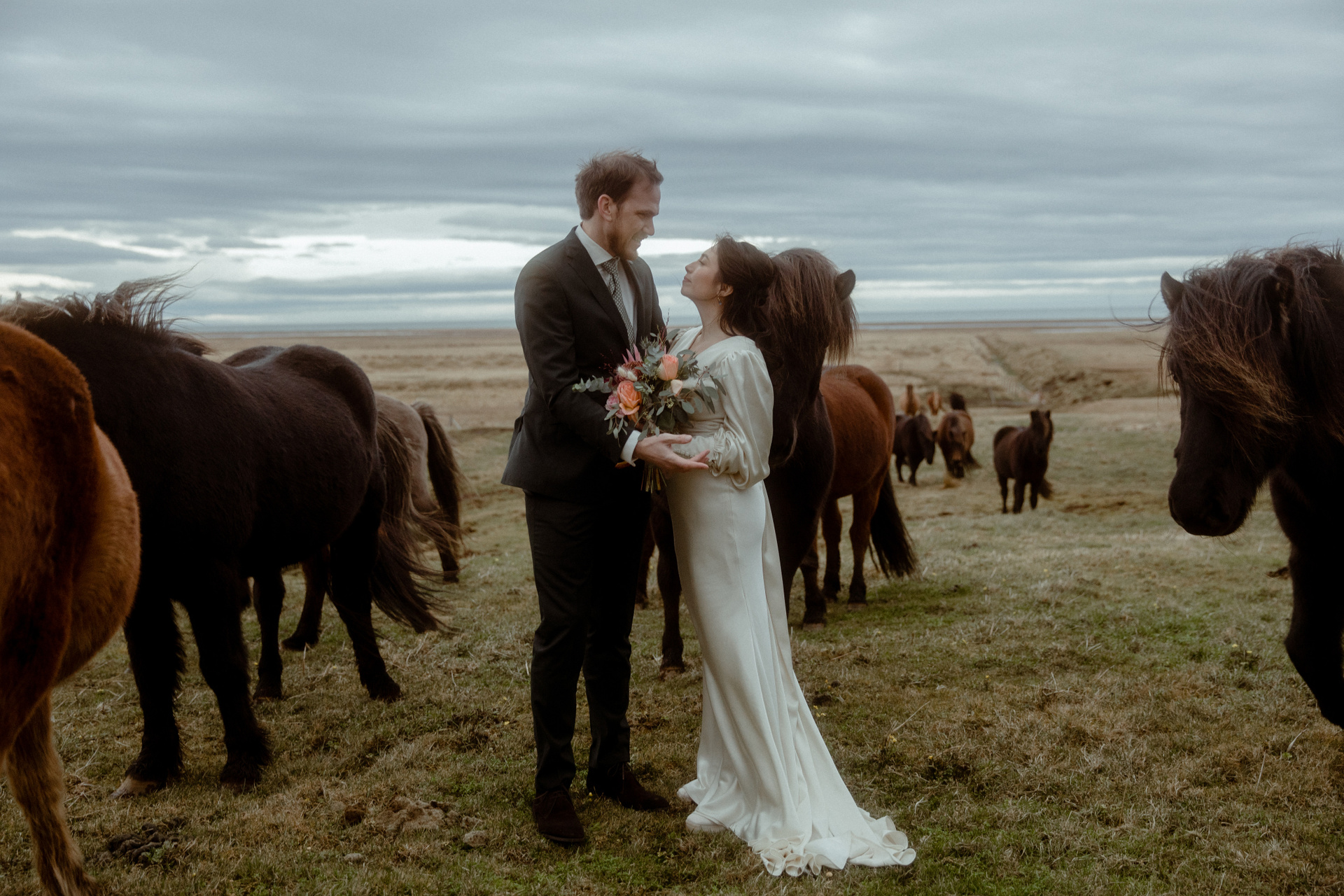 Elopement at Snaefellsnes Iceland | Wedding photos with Icelandic horses