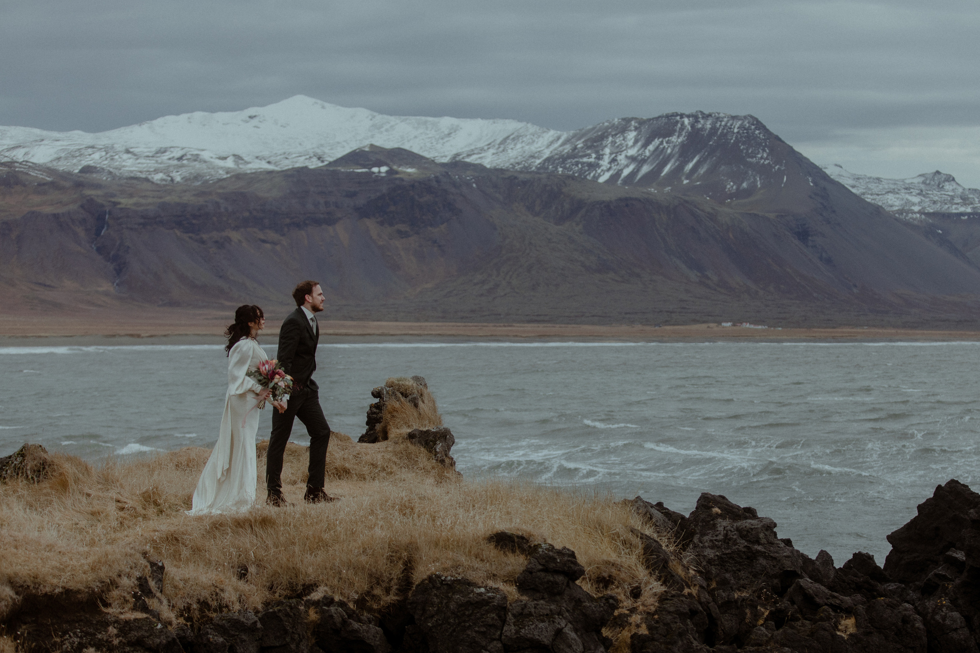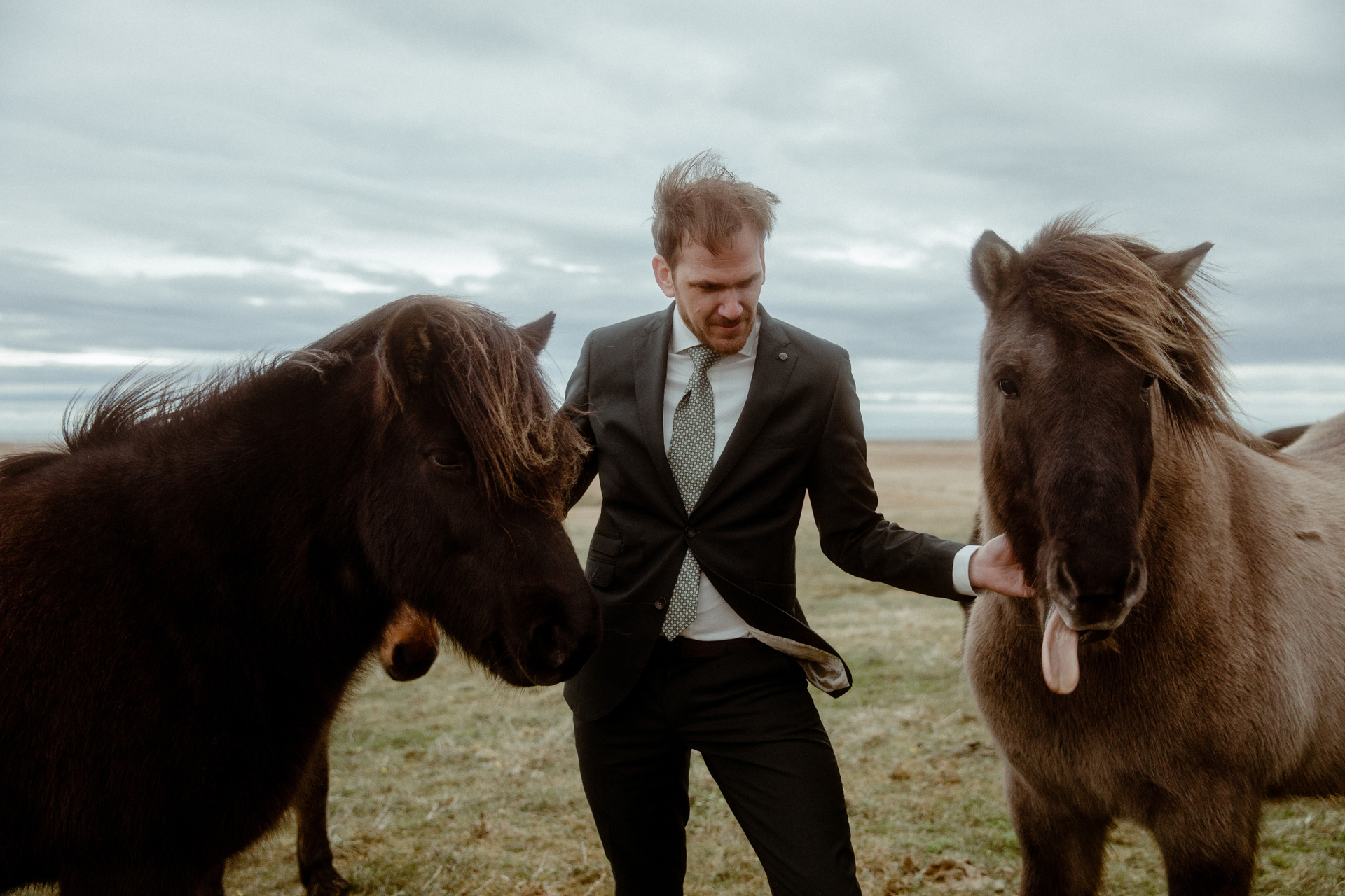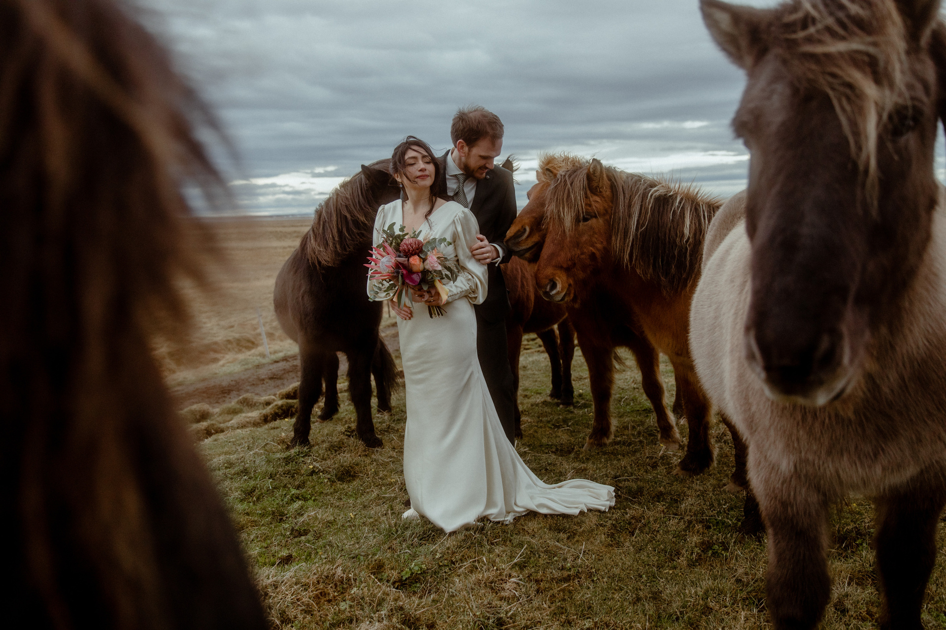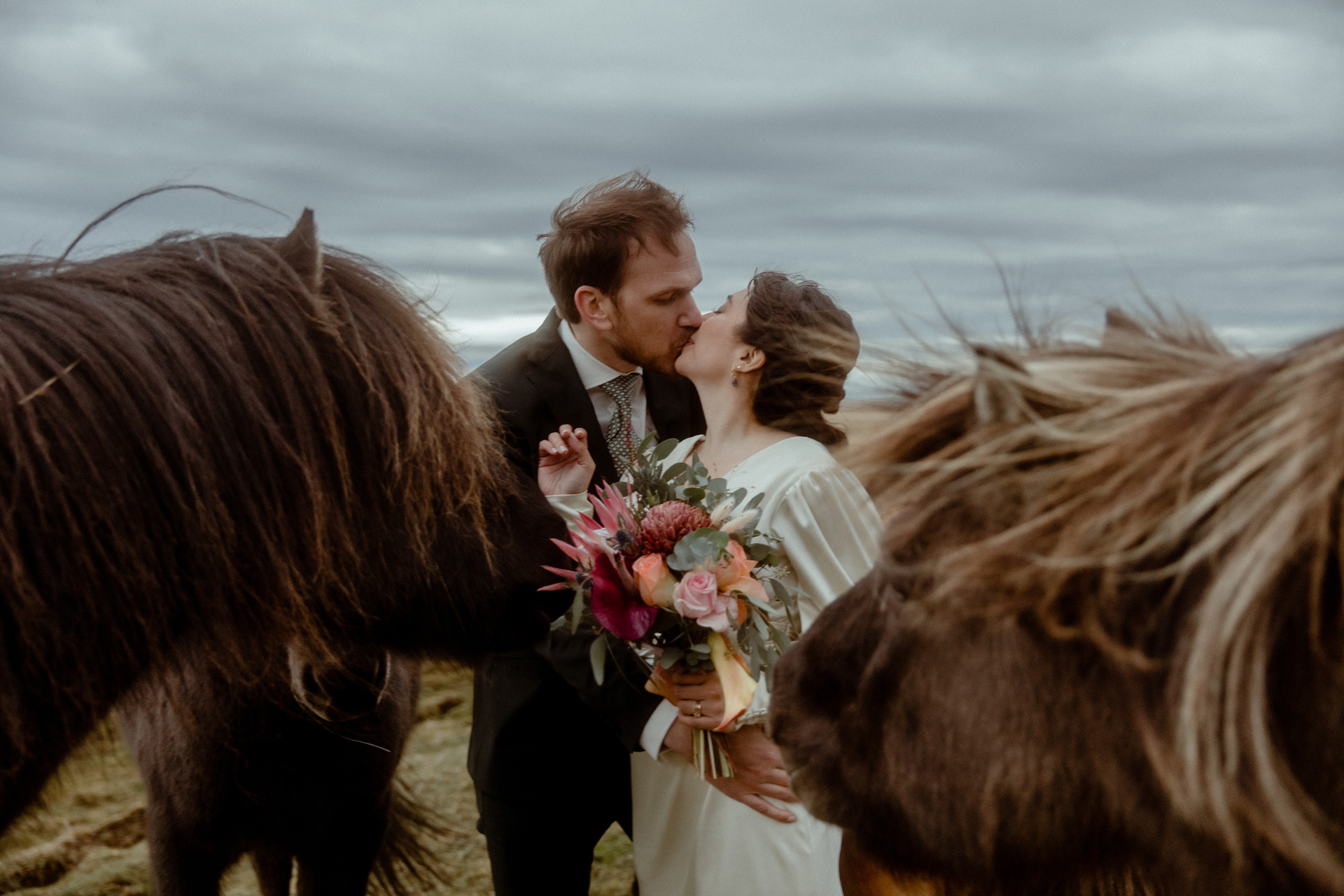 Elopement at Snaefellsnes Iceland | Wedding photos with Icelandic horses