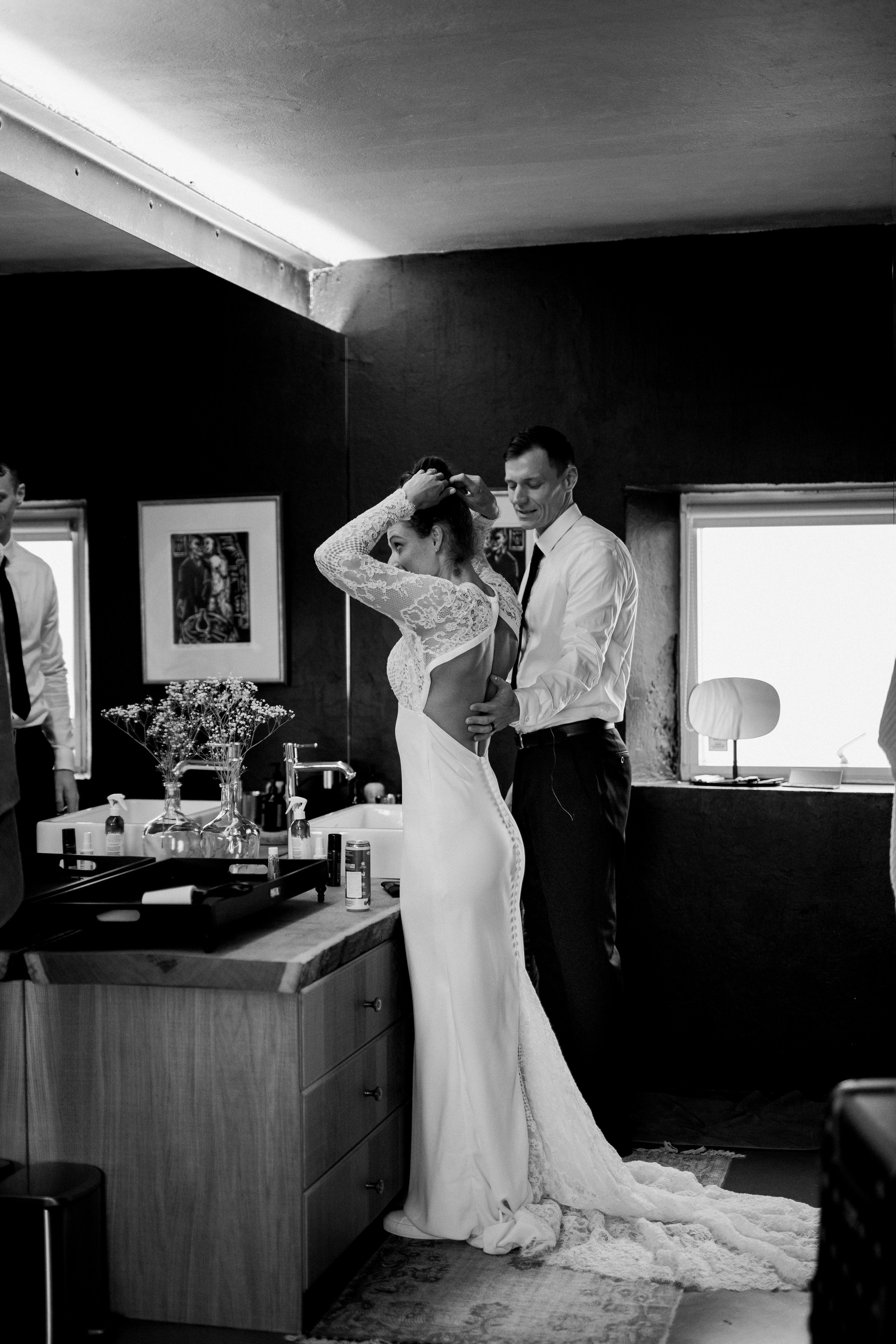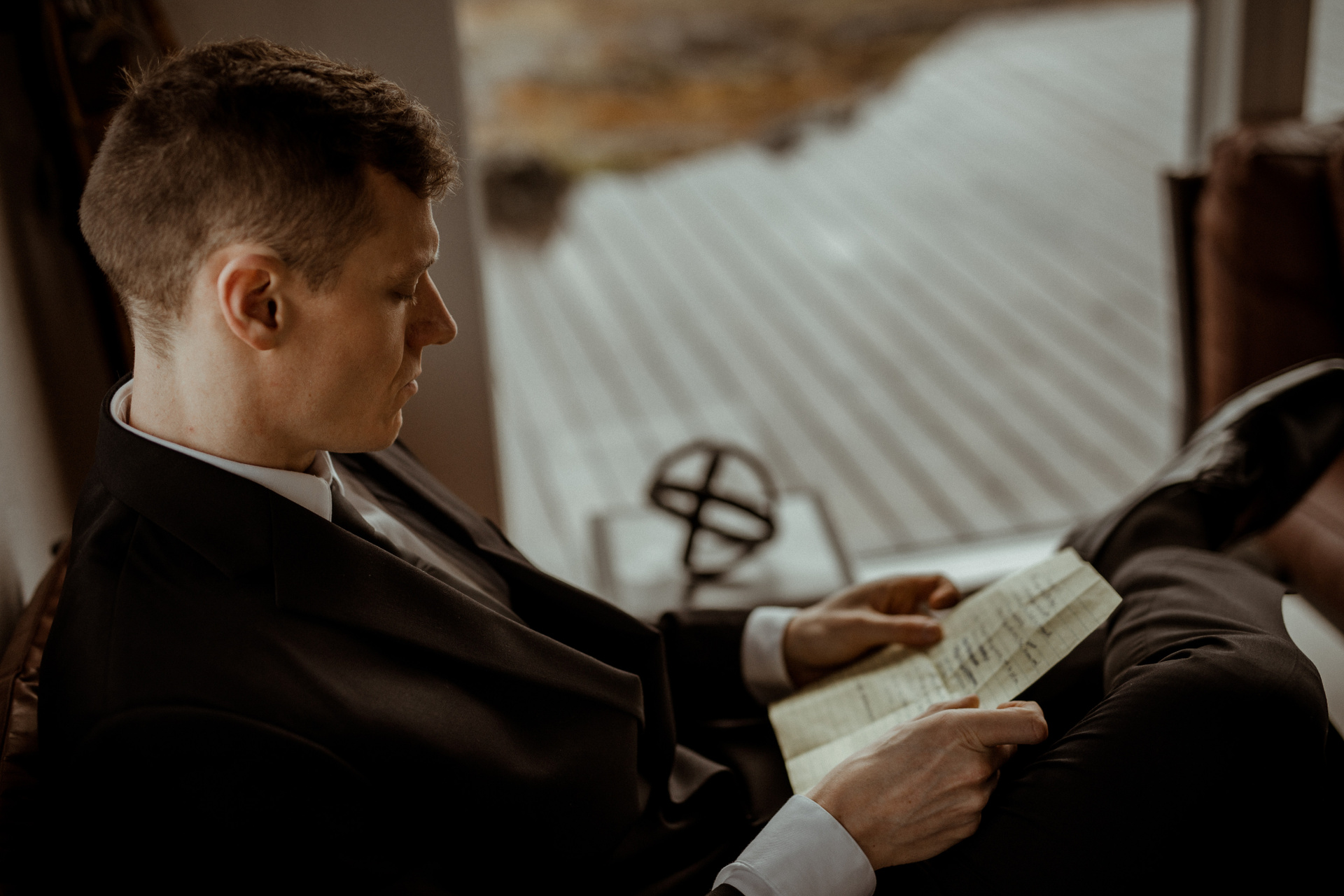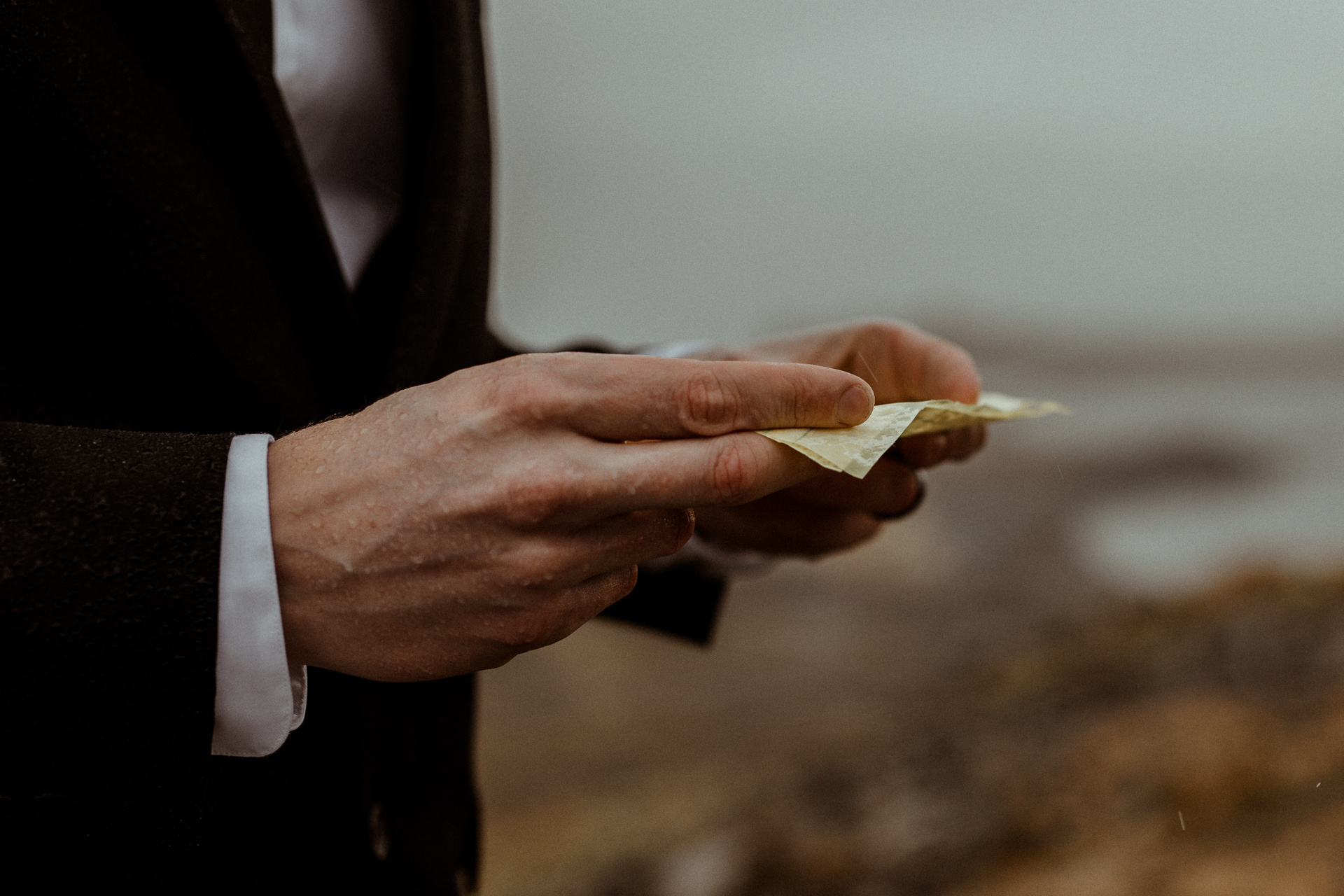 Their day started cozily in a quaint cottage, lost in the vastness of Iceland, with a breathtaking view of an Icelandic fjord. After a warm breakfast, they prepared for a day full of love and adventure, beginning with first look and a heartfelt Icelandic fjord ceremony.