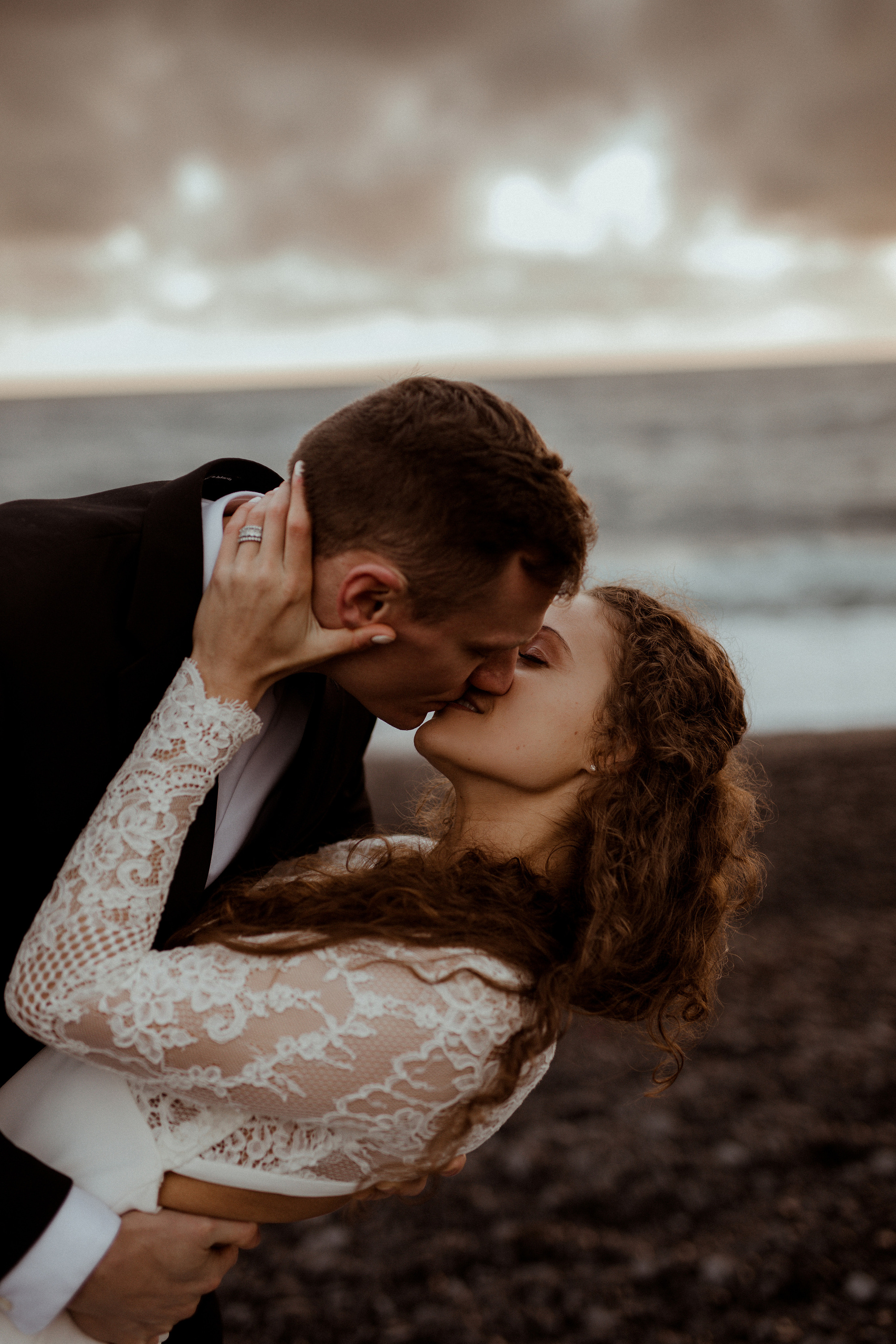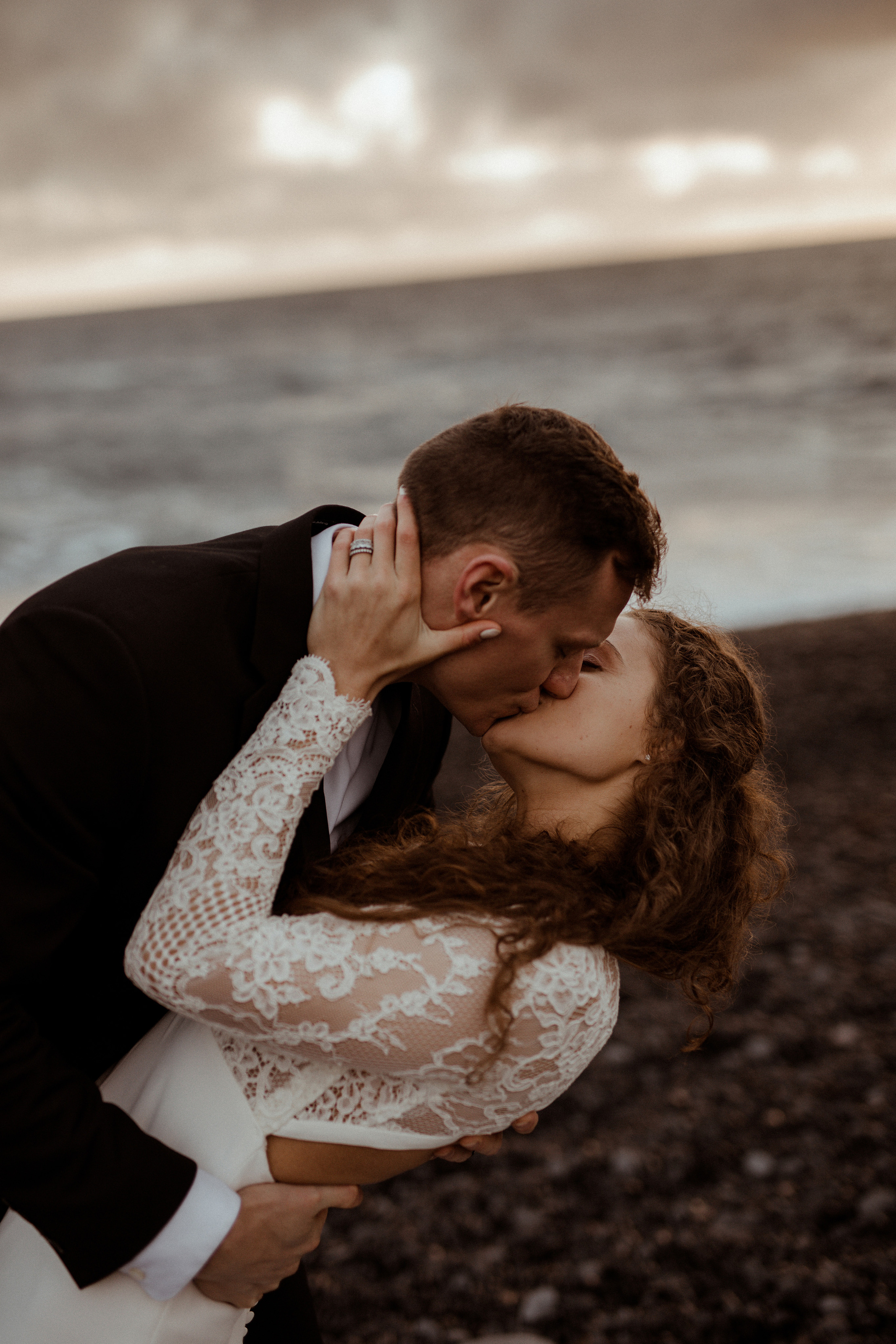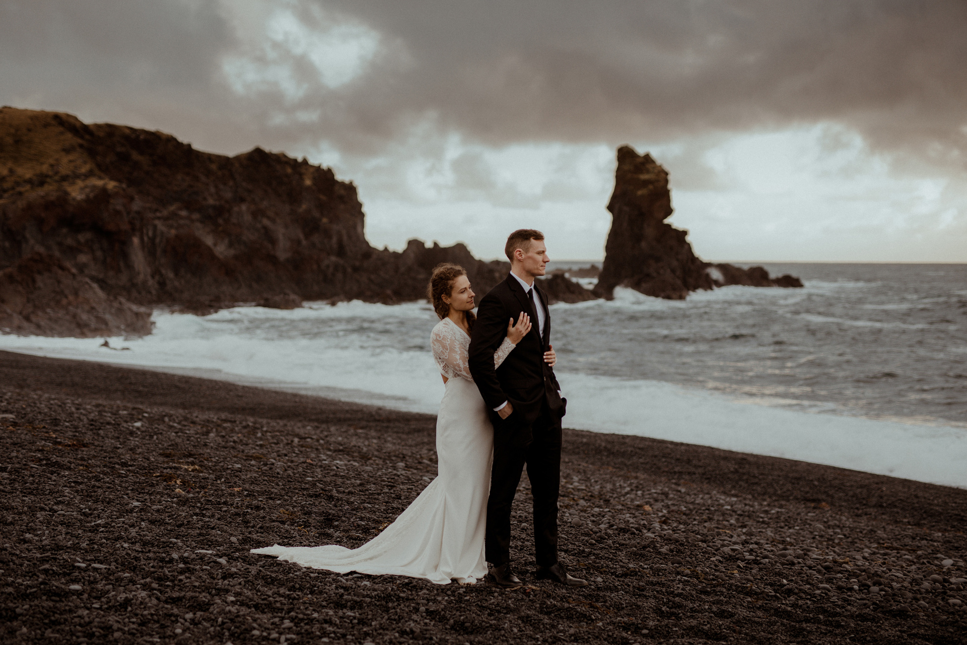 Their day of love, exploration, and celebration culminated with an elopement photos at black sand beach. The beach’s dramatic landscape provided a perfect, memorable end to their incredible elopement in Iceland.