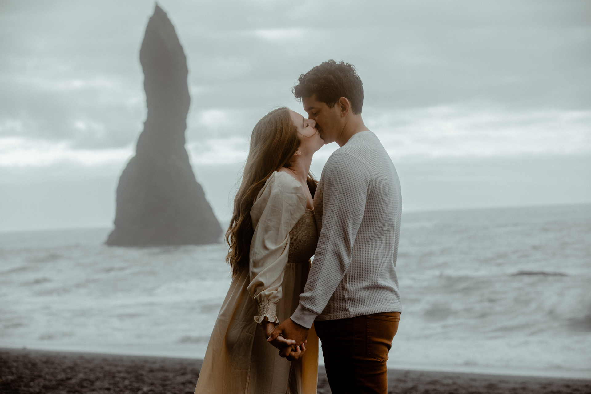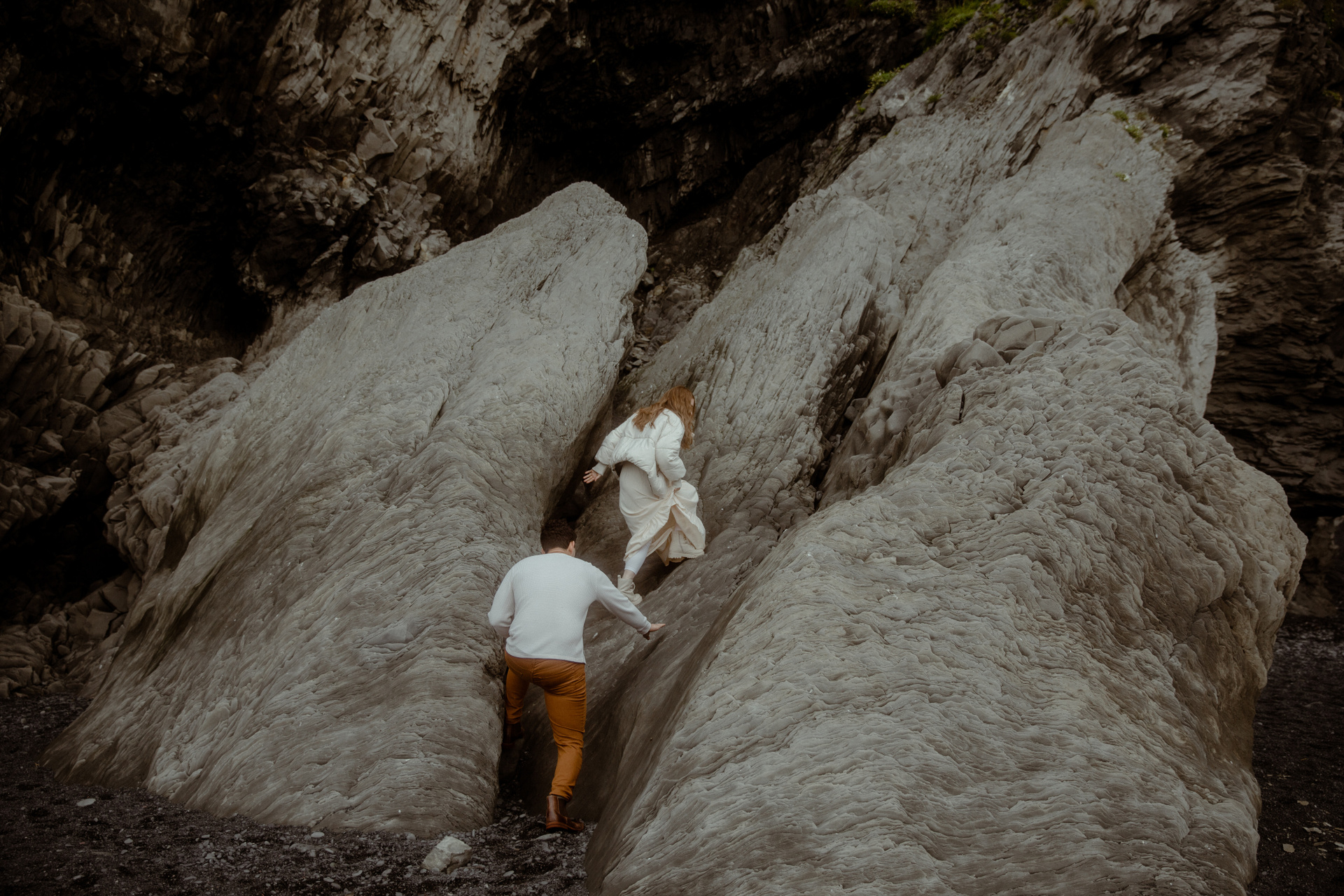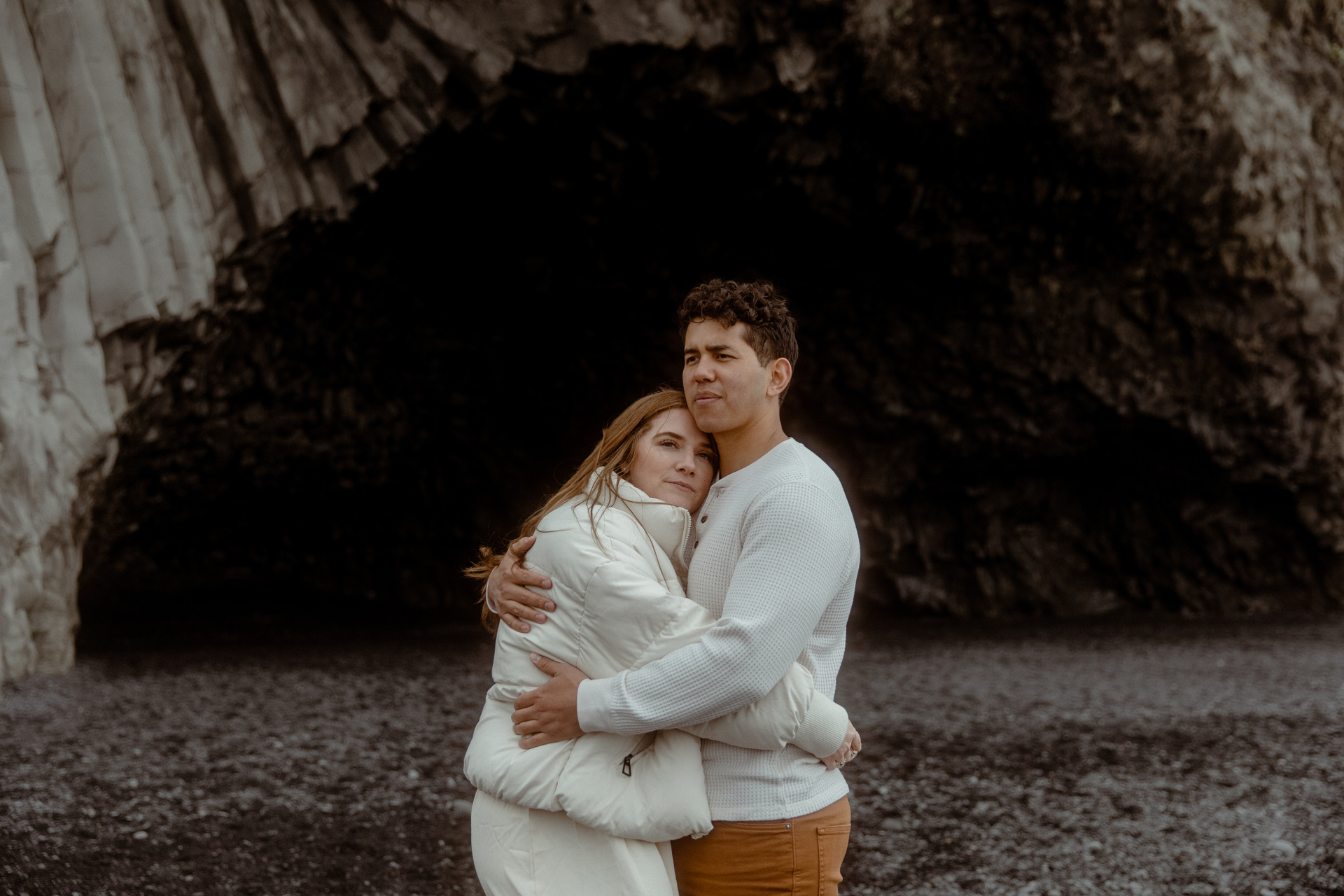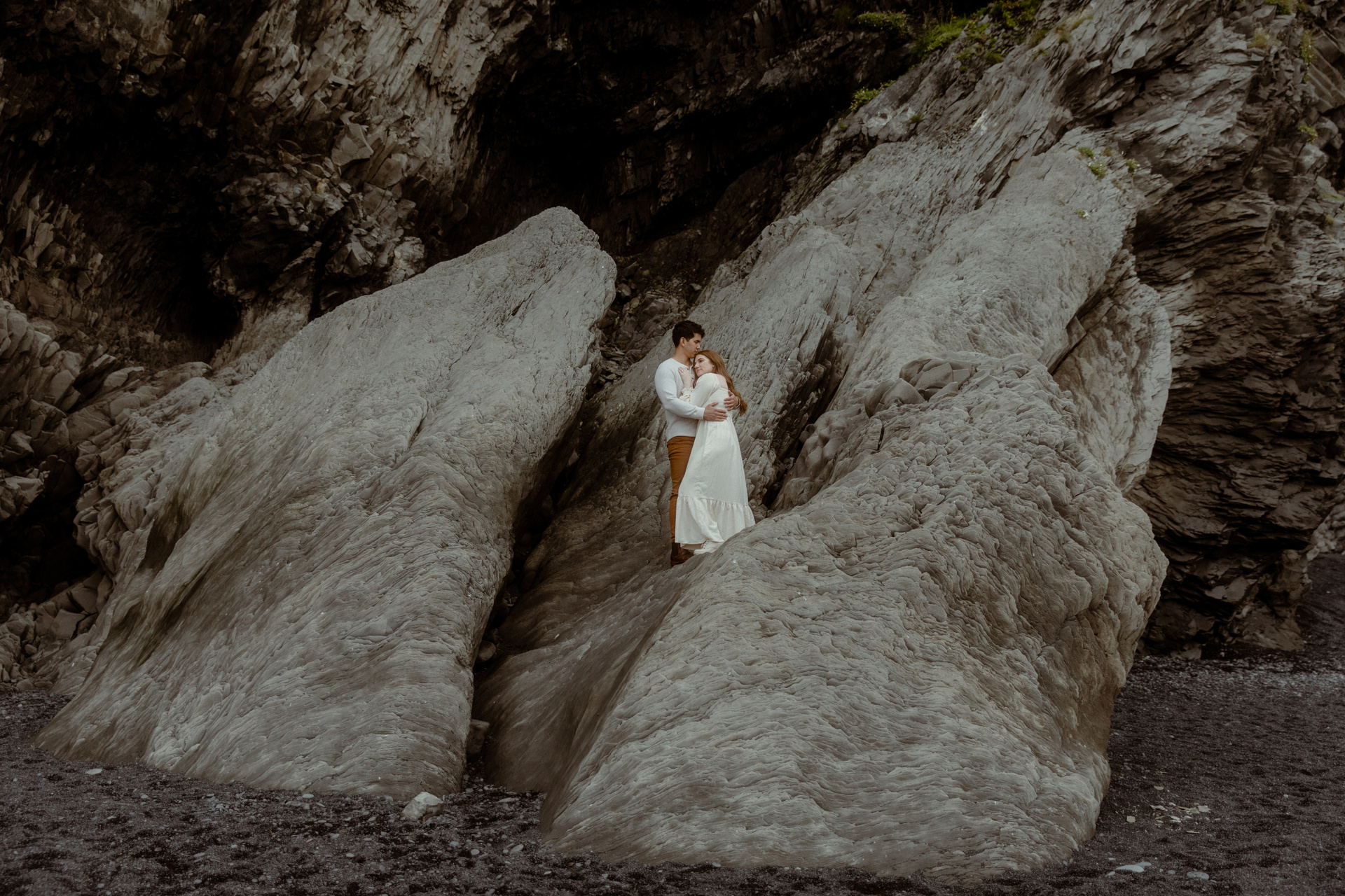 Winter elopement in Iceland | Stormy elopement at Black sand beach