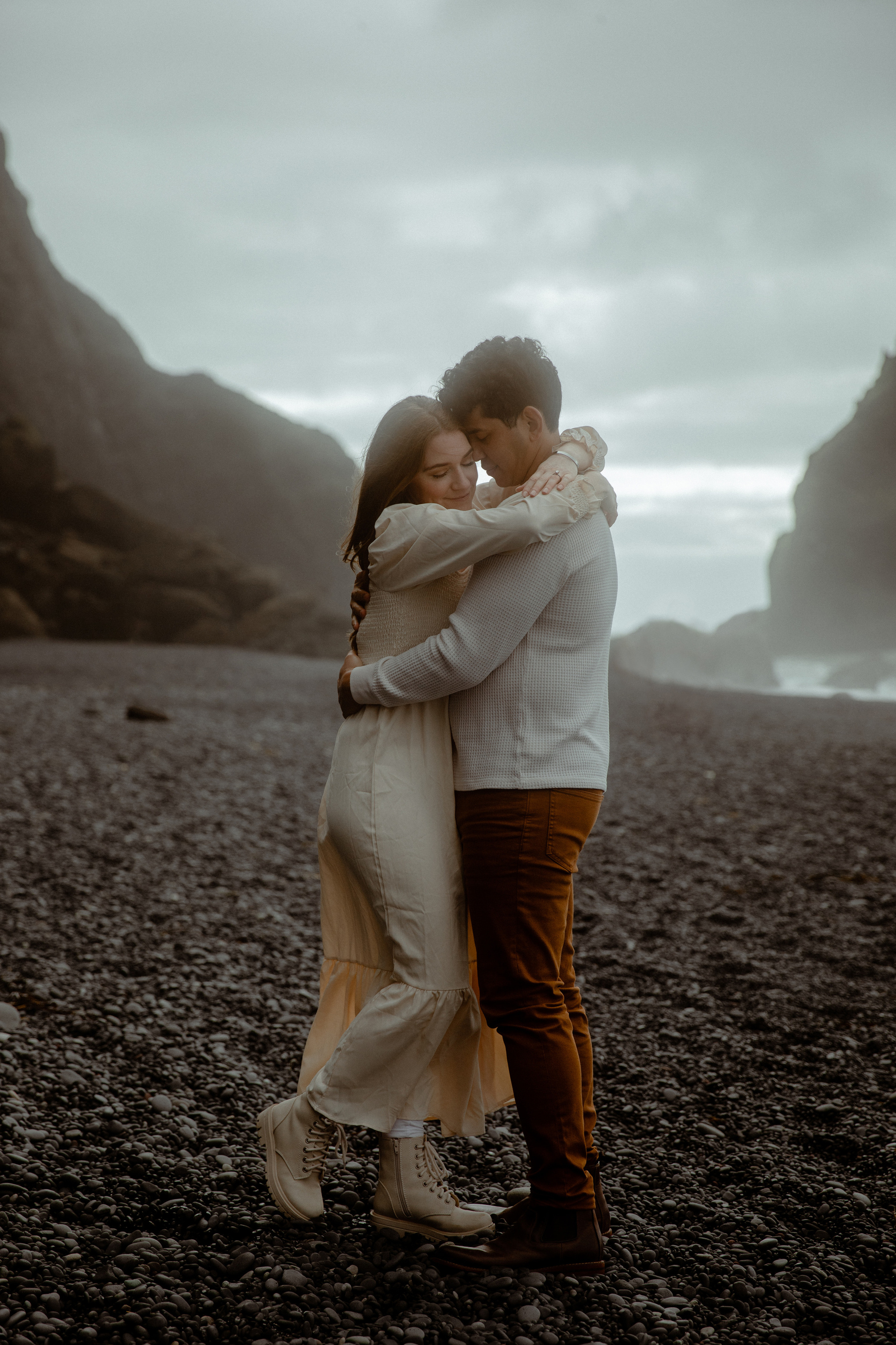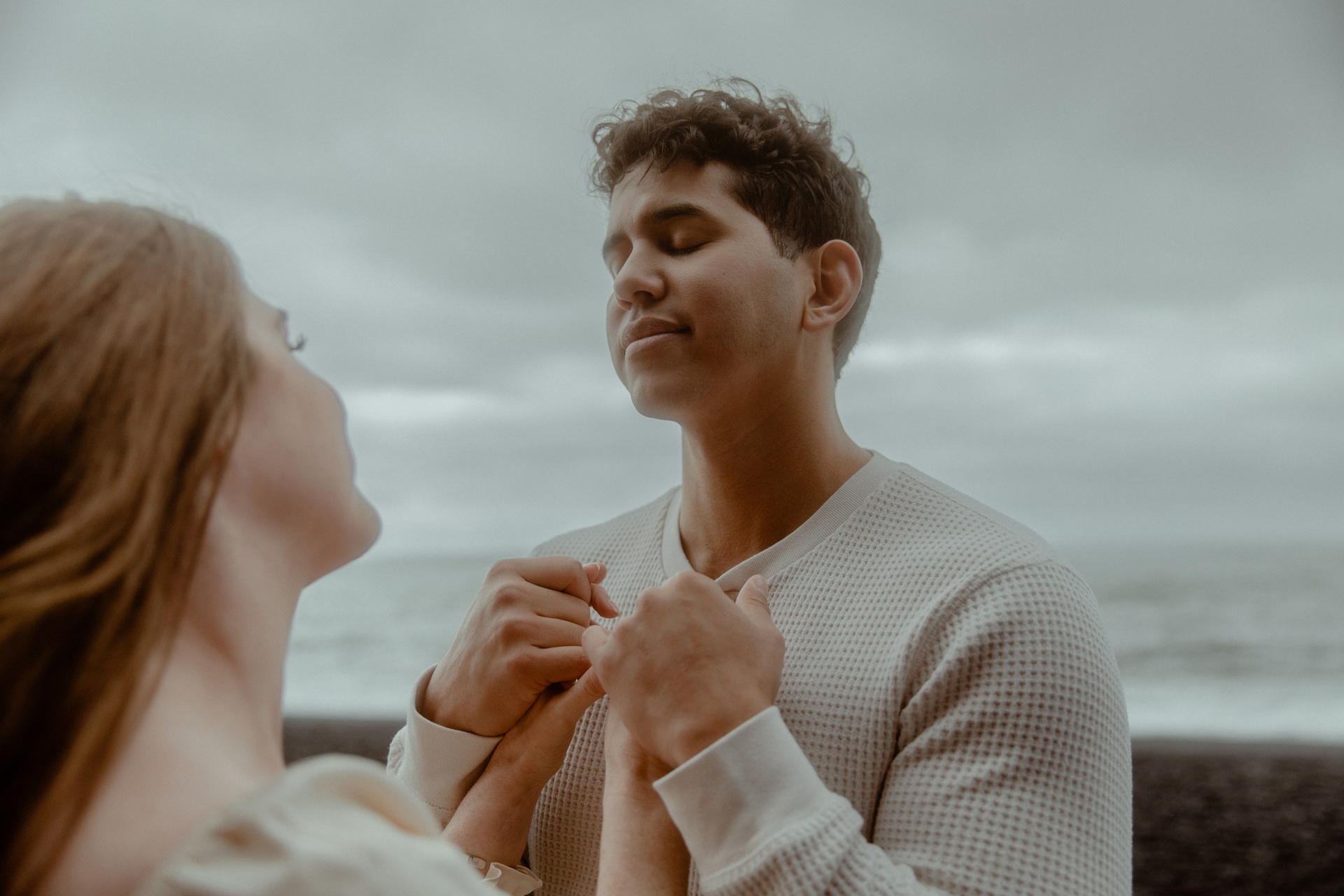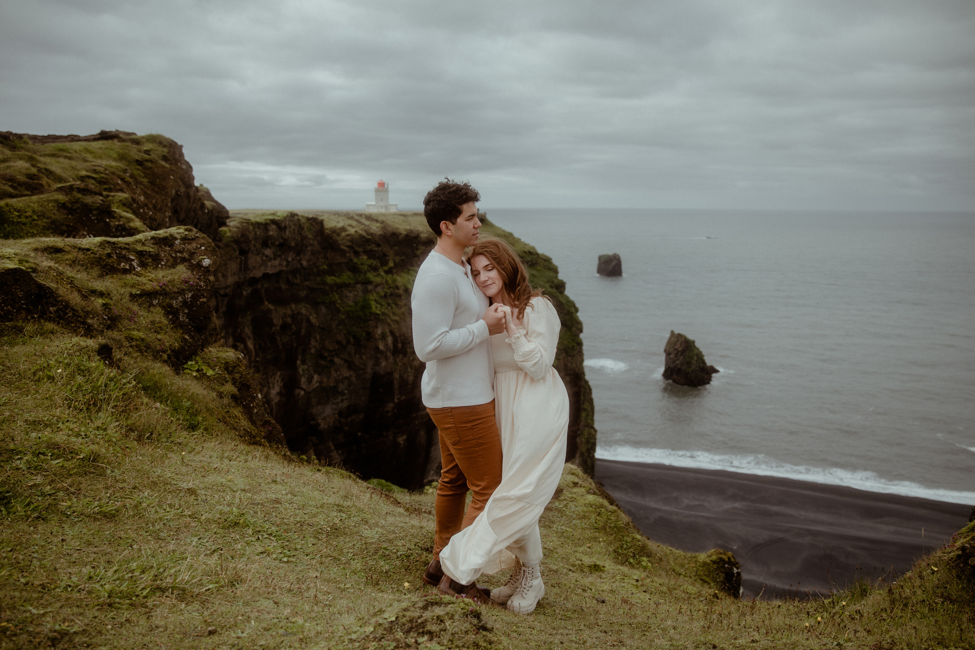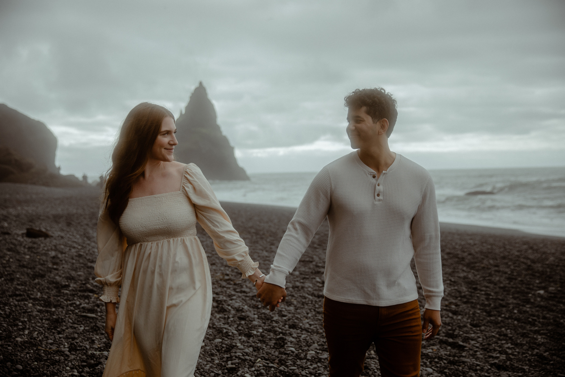 Winter elopement in Iceland | Stormy elopement at Black sand beach