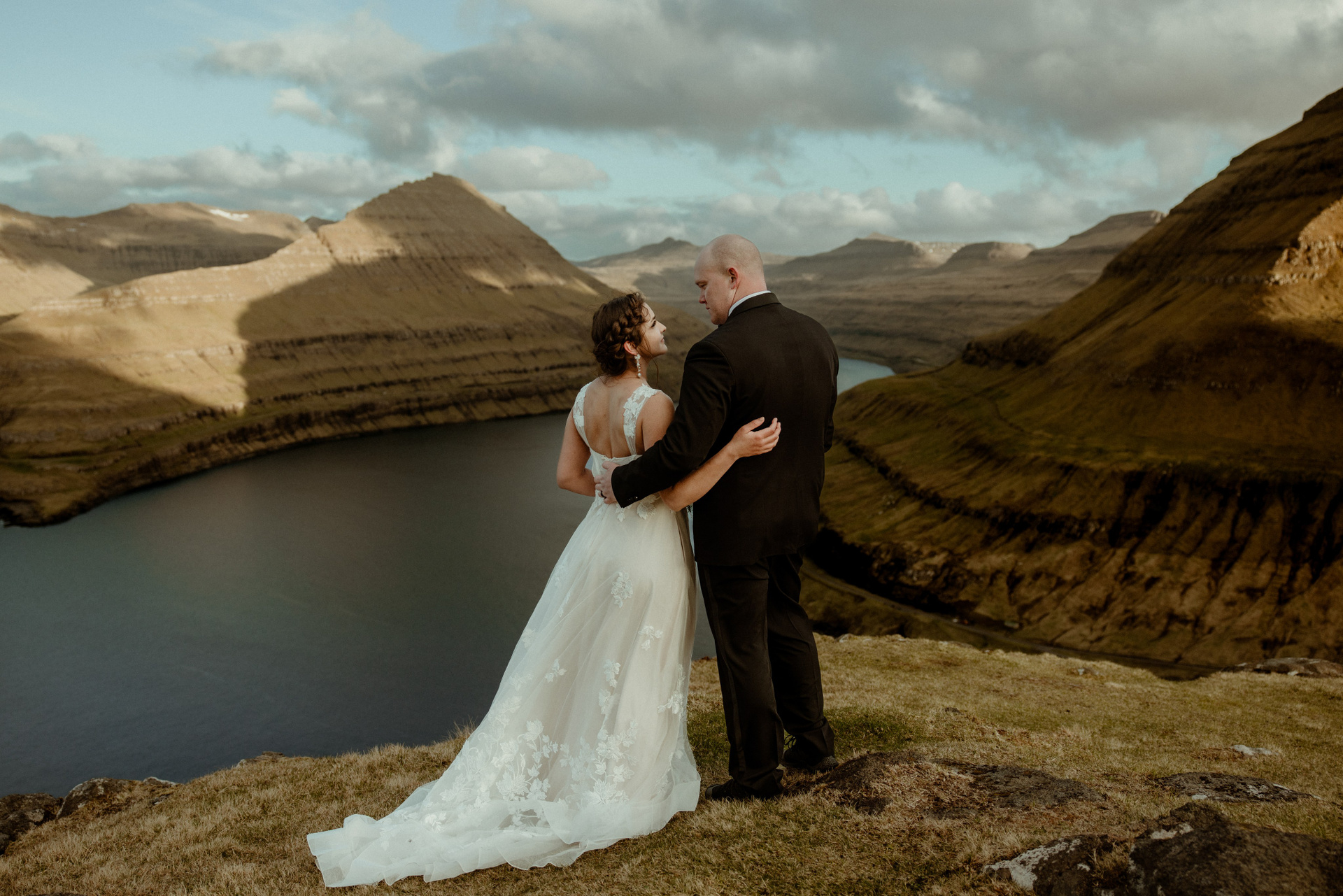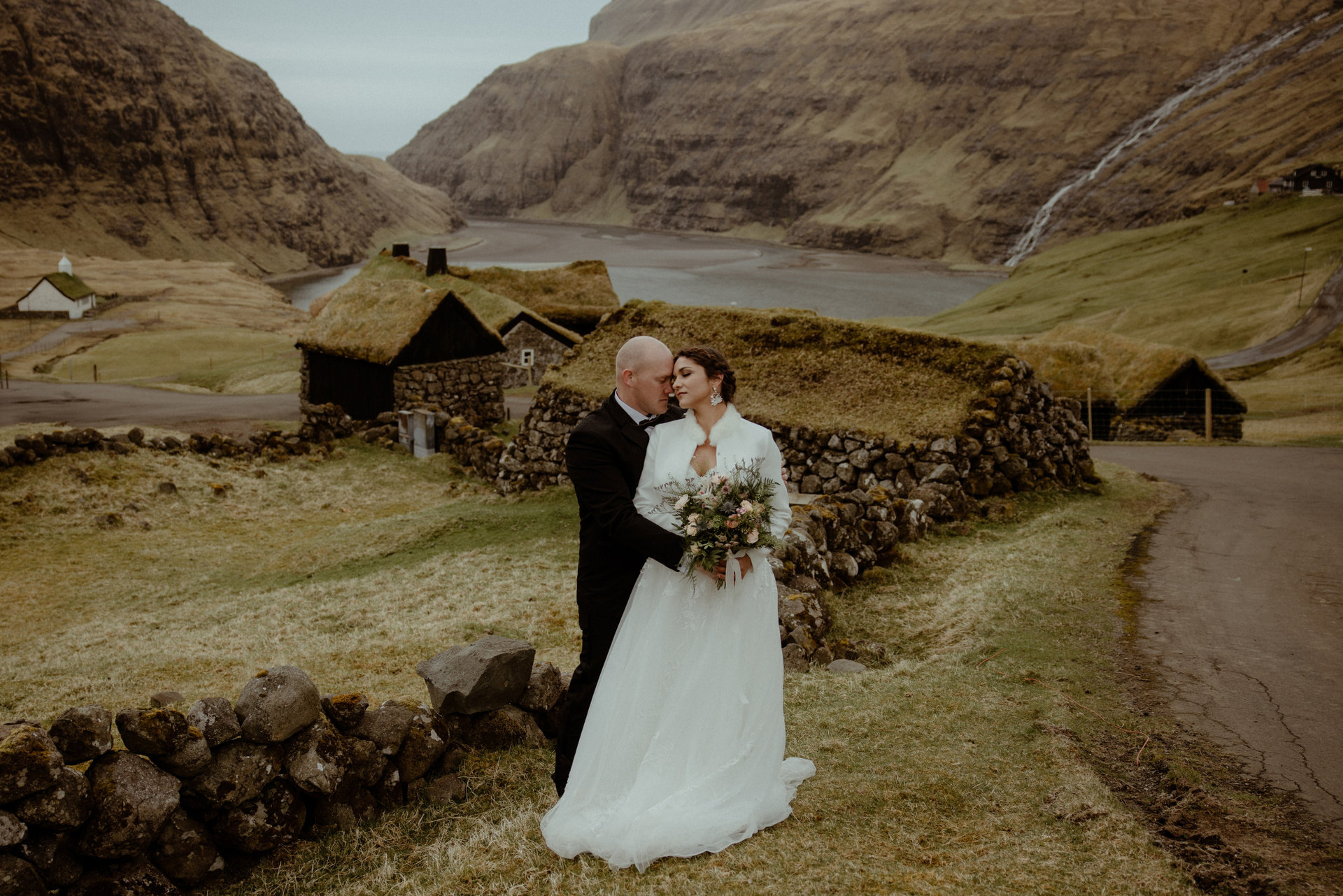 Their wedding photos in the Faroe Islands were taken on a bright day full of majestic scenery, Viking history, and quiet time together.