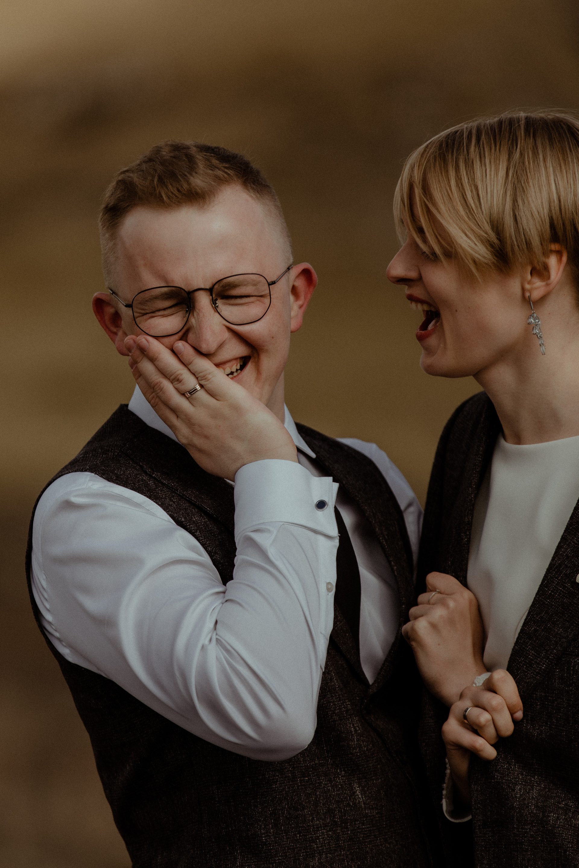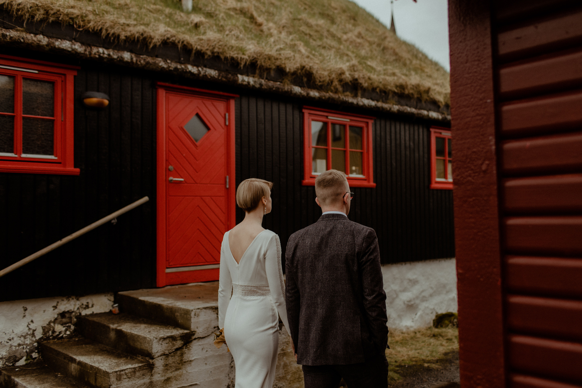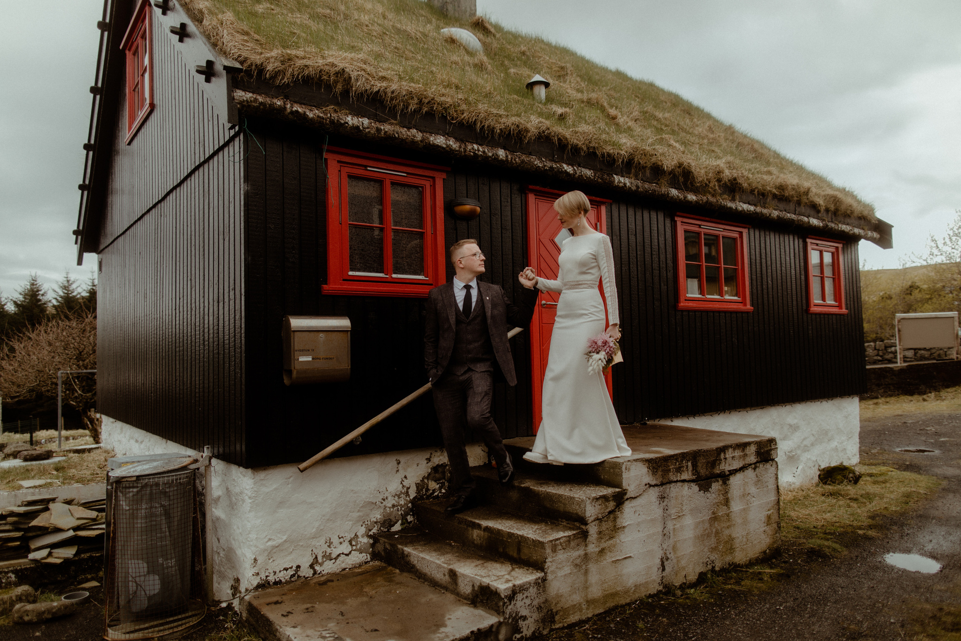 Their elopement at Faroe islands turned out to be 2 days adventure! We were driving around different little islands together, hiking and exploring area and every 5 minutes these landscapes just blowed our minds. They stayed in traditional black cottage with grass roof and helped to each other to get ready for their Big day.