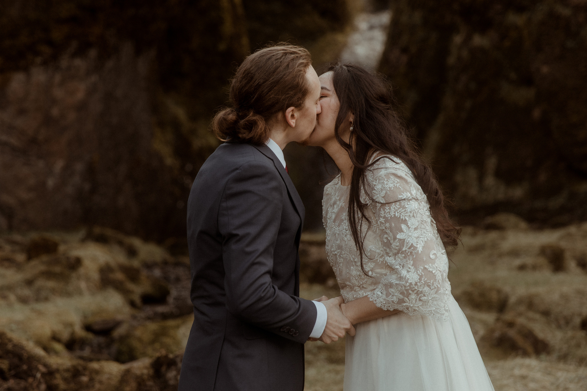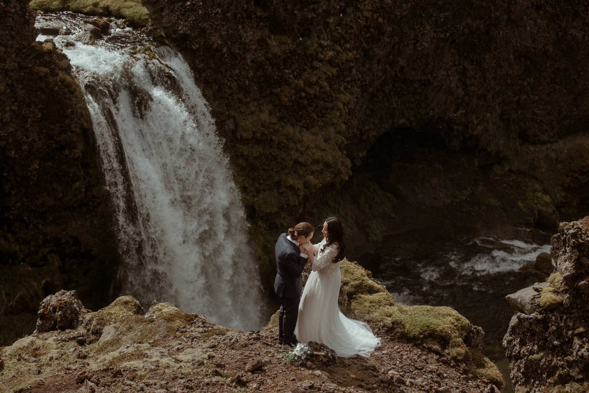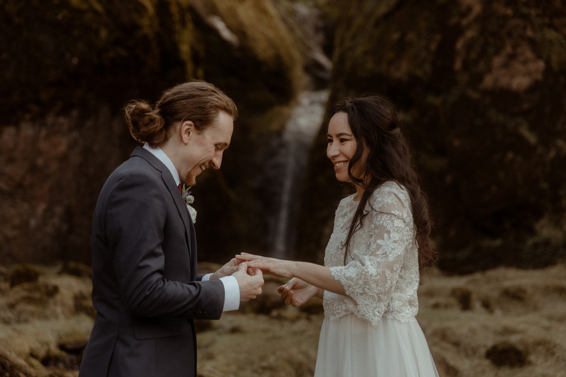 Next stop? The majestic highlands of Iceland! With hearts full of excitement, they hiked to a secluded waterfall, a little slice of paradise where they promised each other forever. Just them, their love, and the echoing sounds of falling water — it was as intimate as it could get.