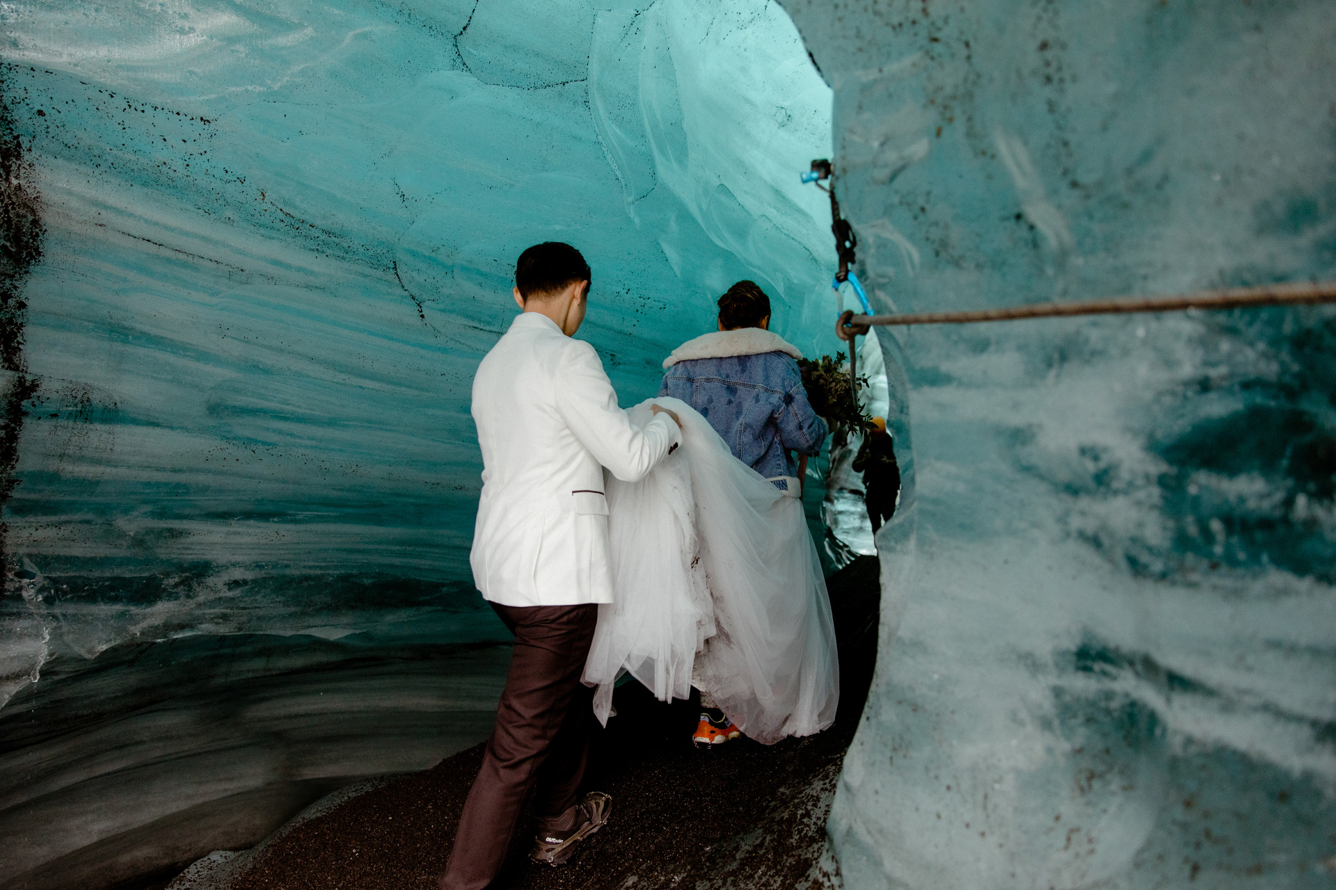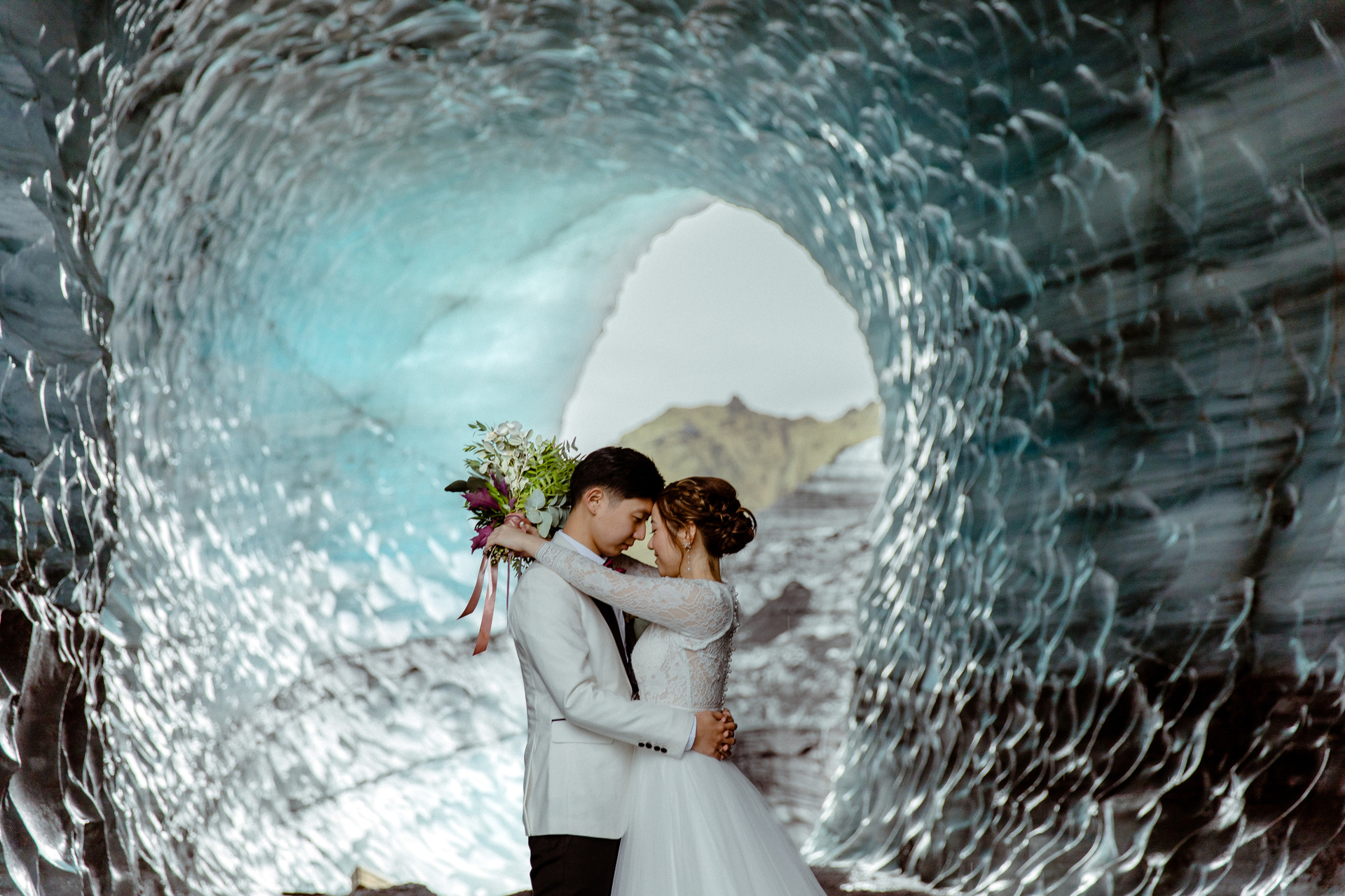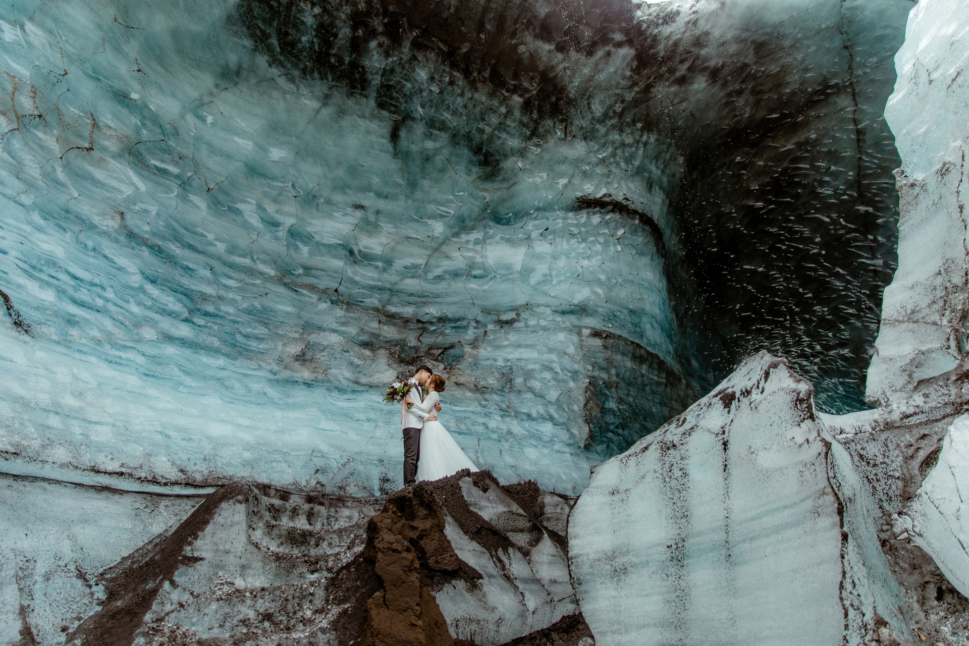 It was intimate and magical moment as they read their vows and exchanged rings in the ice cave. They were surrounded by a blue ice and there were no one around. It was for sure once a life time experience — to take wedding photos in ice cave in Iceland!