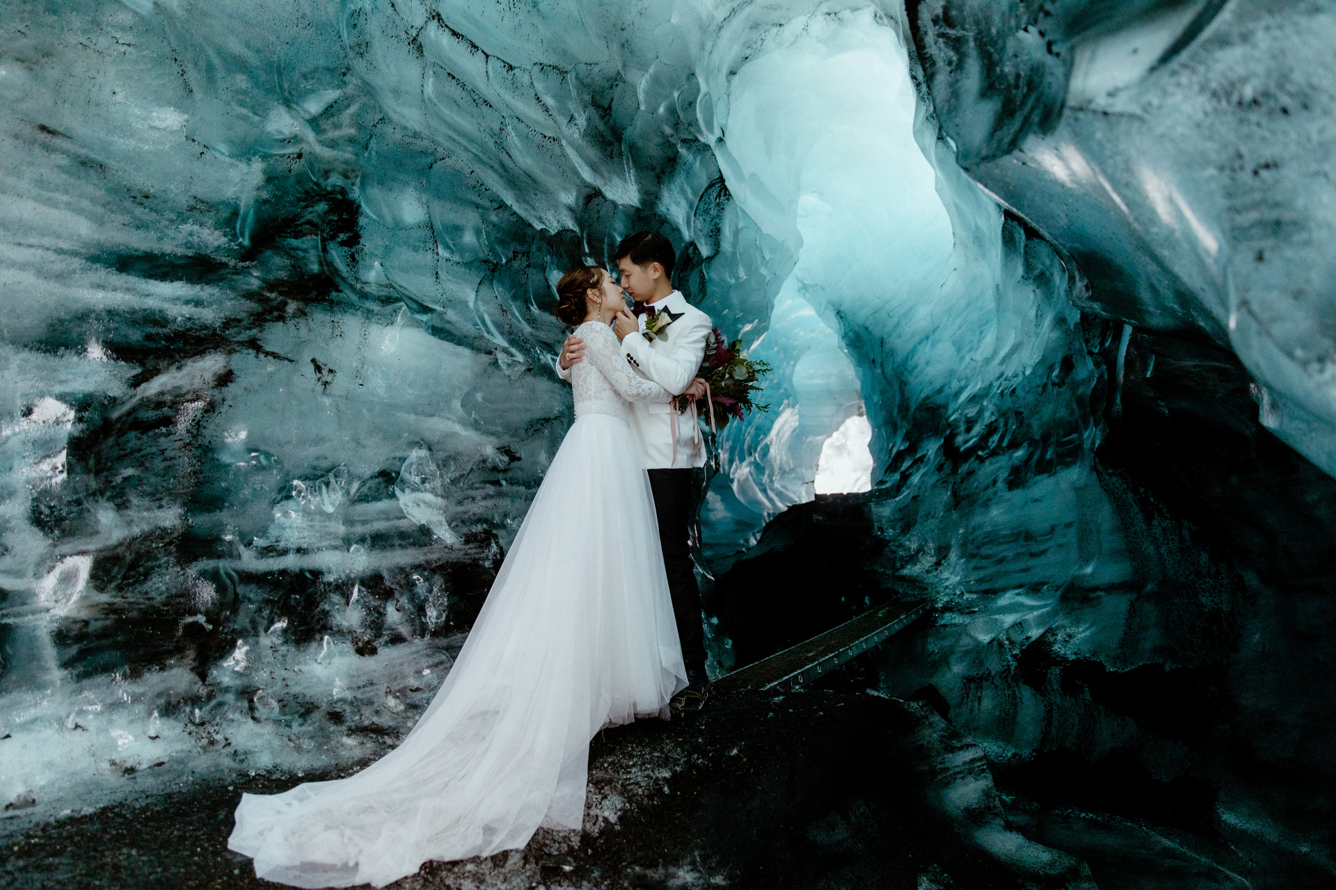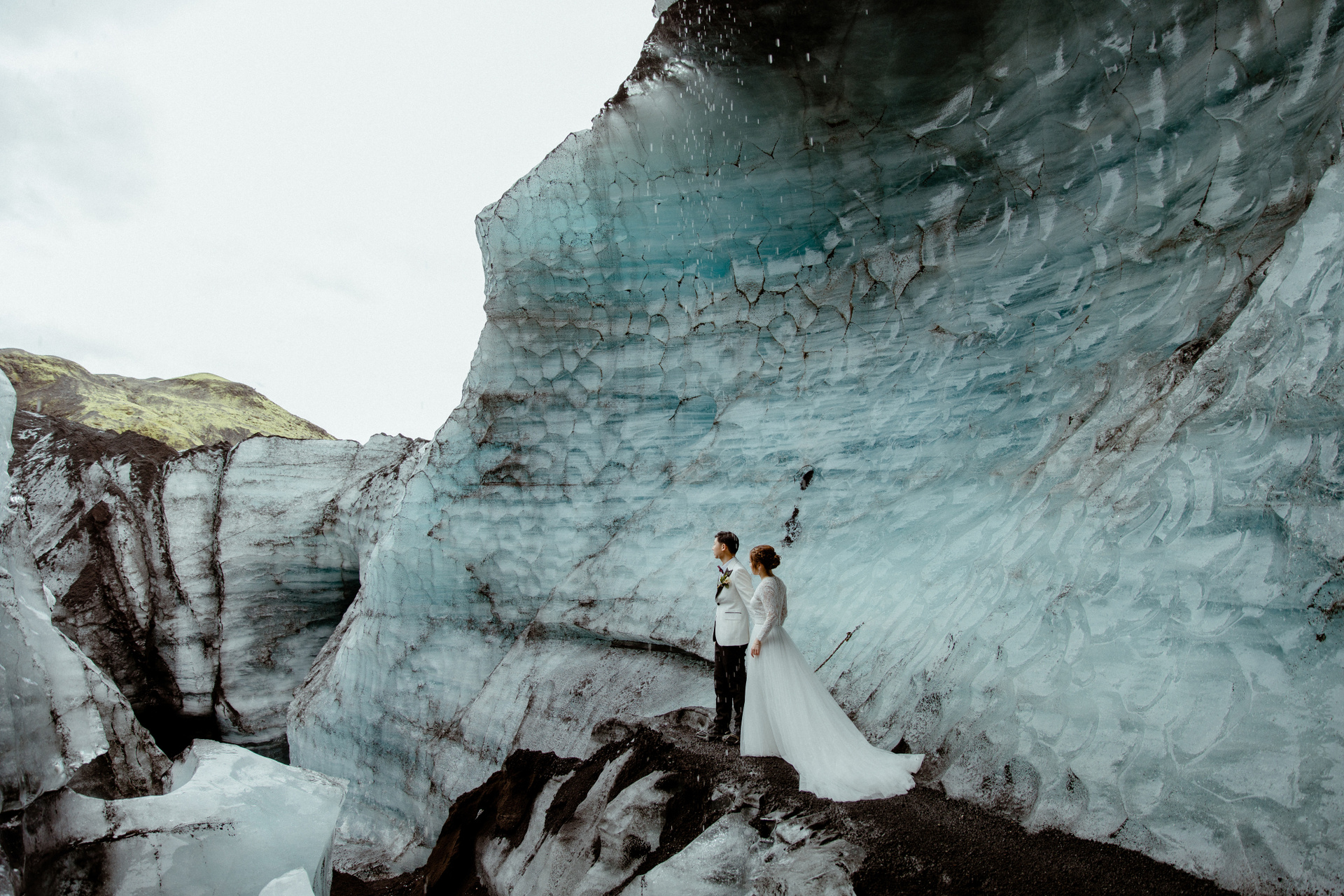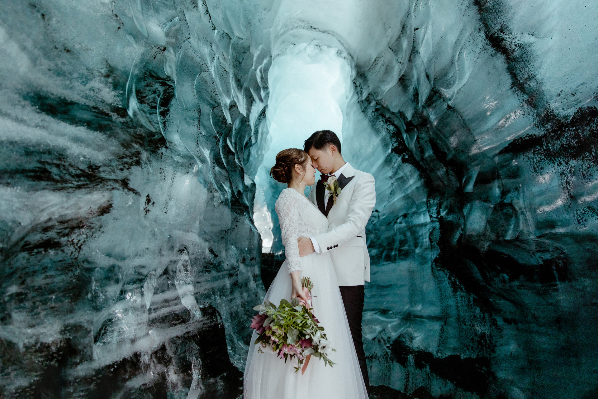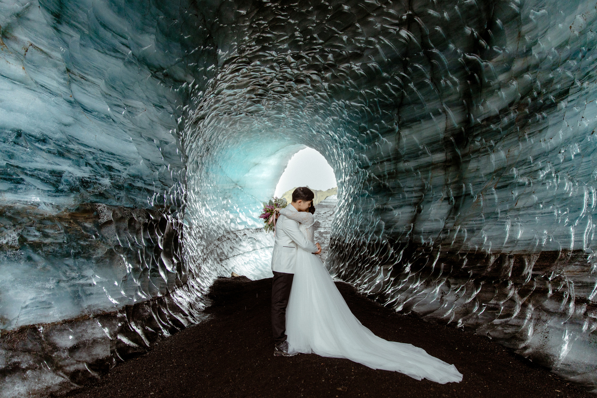It was intimate and magical moment as they read their vows and exchanged rings in the ice cave. They were surrounded by a blue ice and there were no one around. It was for sure once a life time experience — to take wedding photos in ice cave in Iceland!