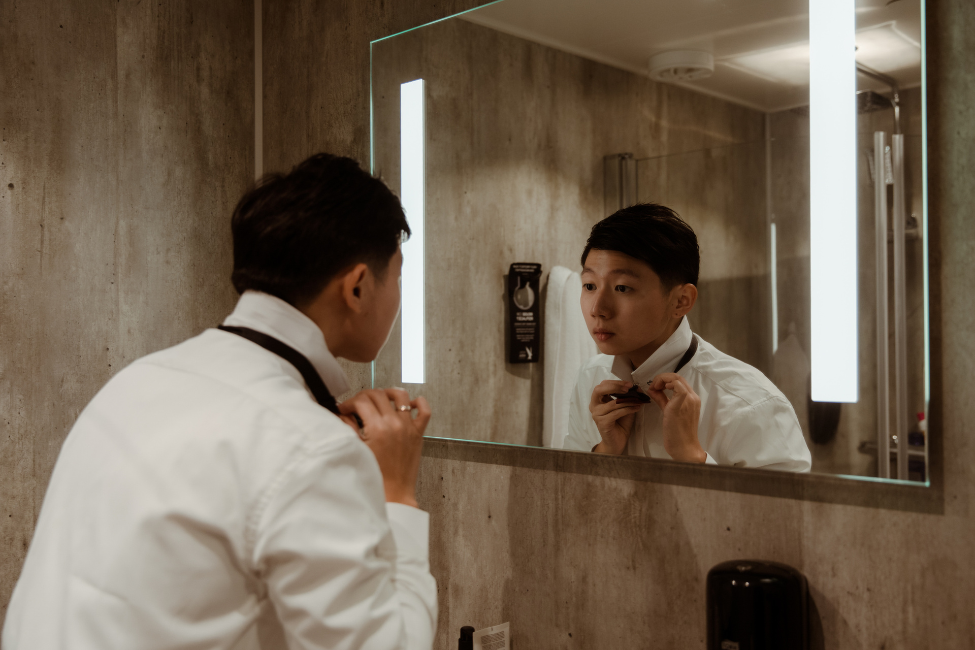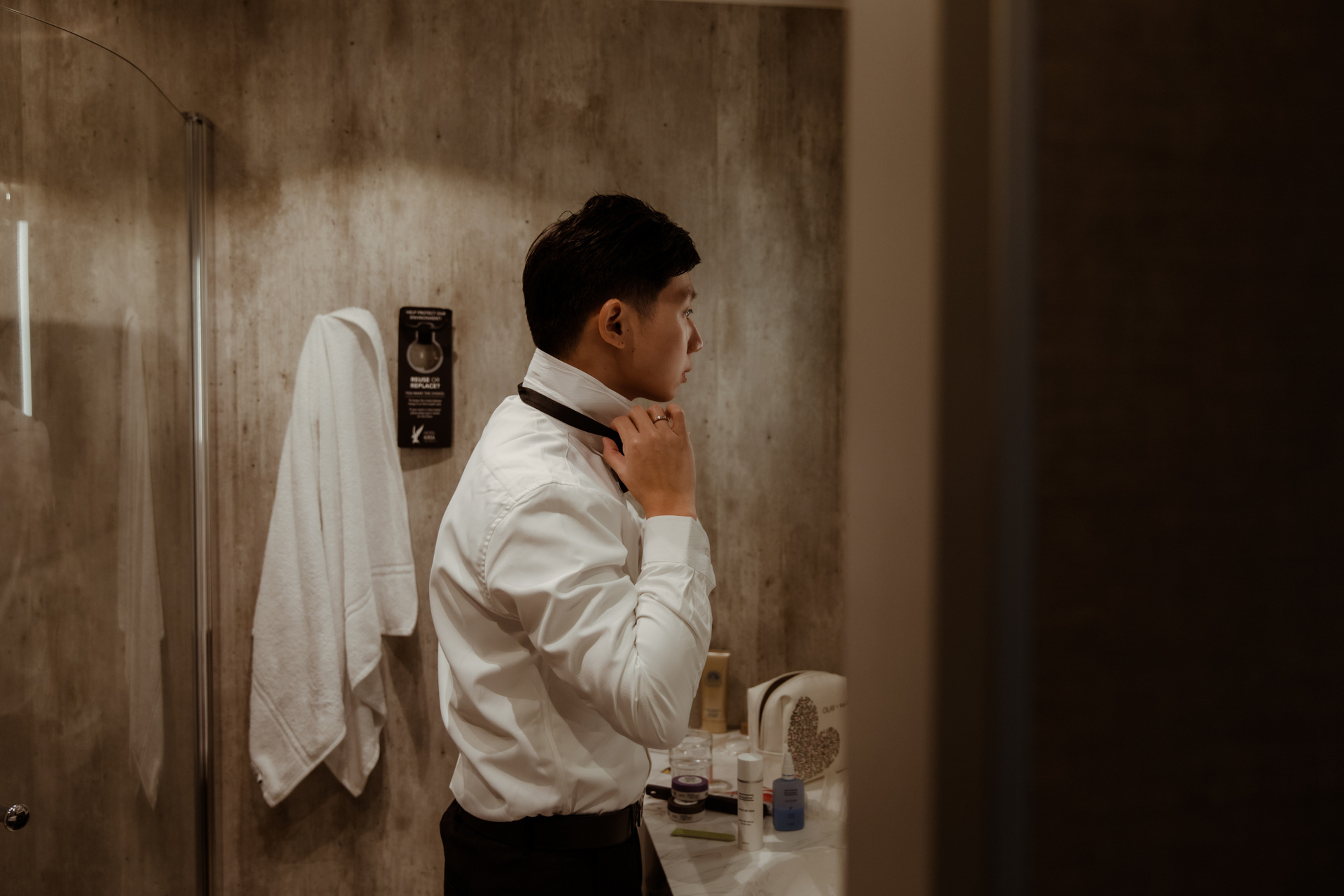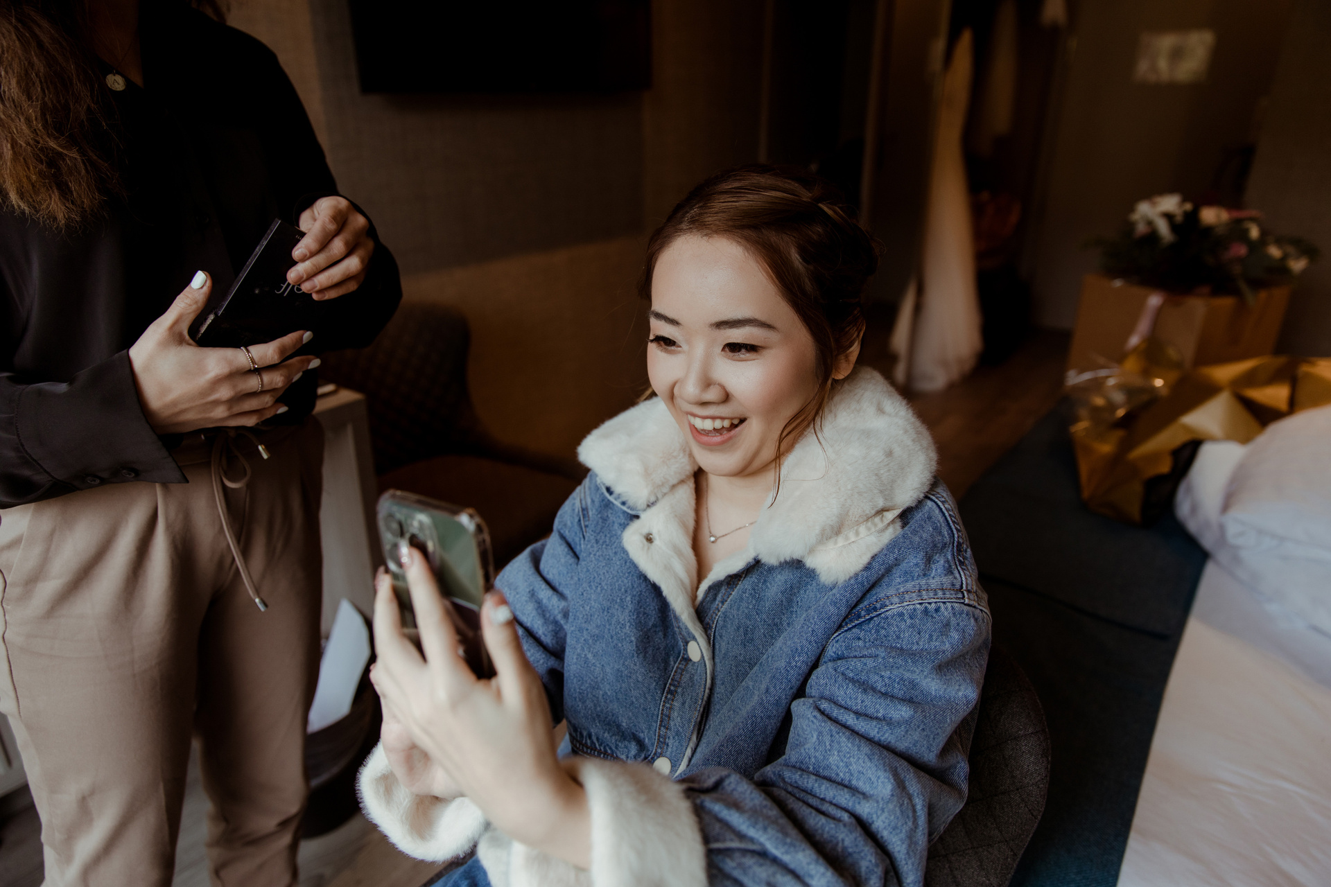 Their day started with getting ready moments in their hotel room. As the hotel in Vik was surrounded by mountains it gave them perfect backdrop for the first look.