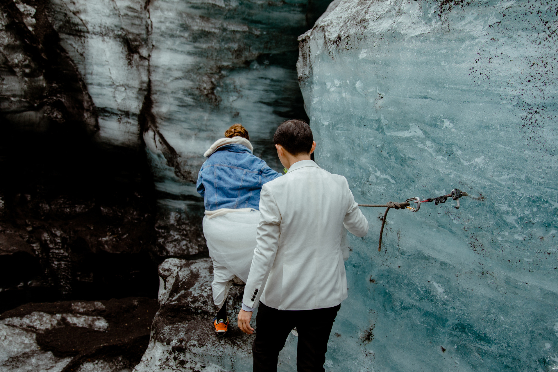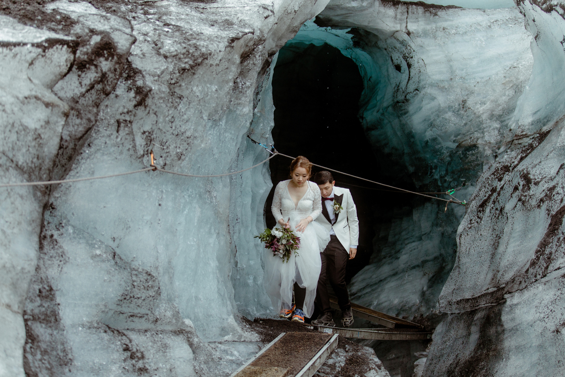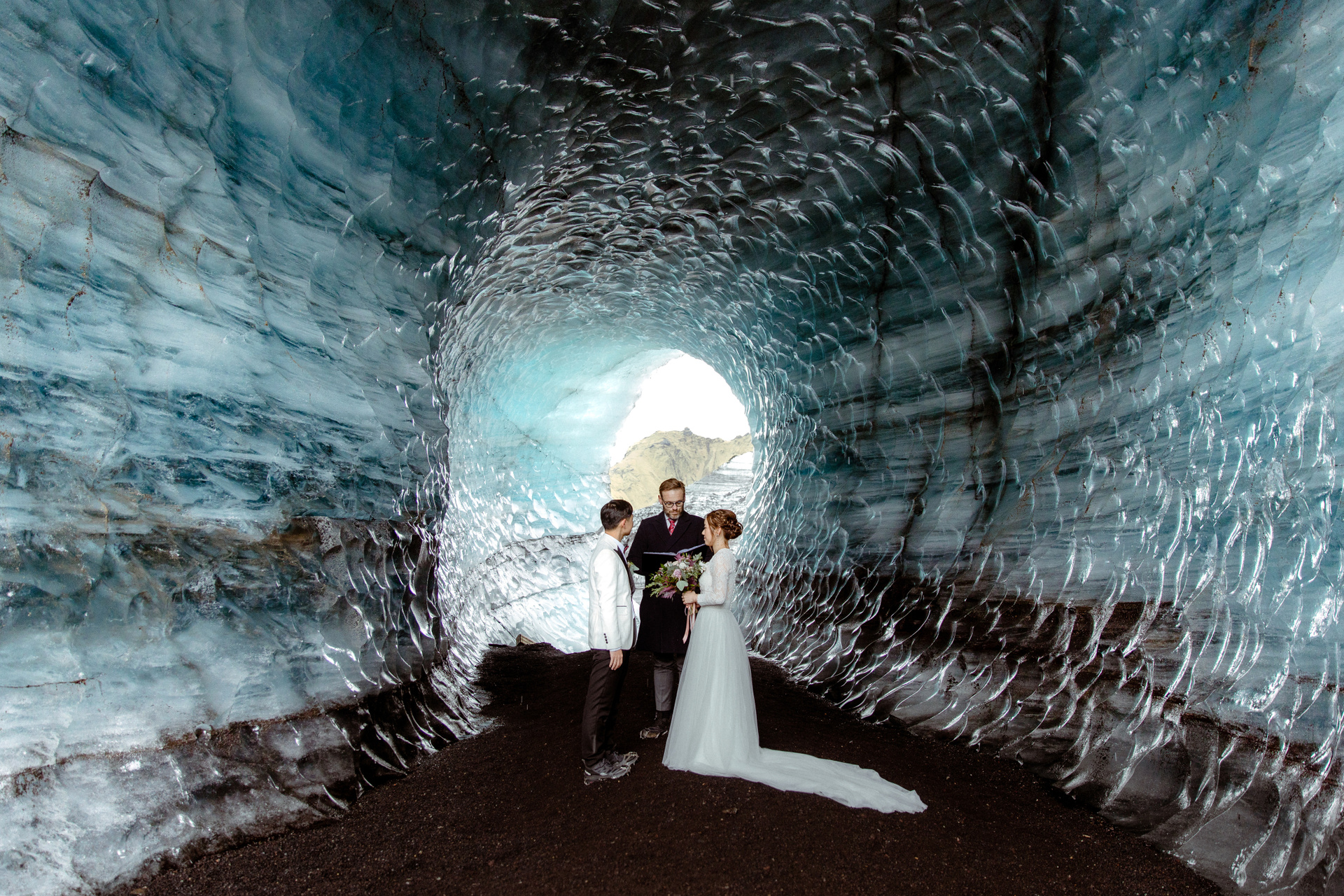 The first stop of the day was an Icelandic ice cave wedding ceremony. Yes that’s right! They hiked on the glacier and eloped inside an ice cave!