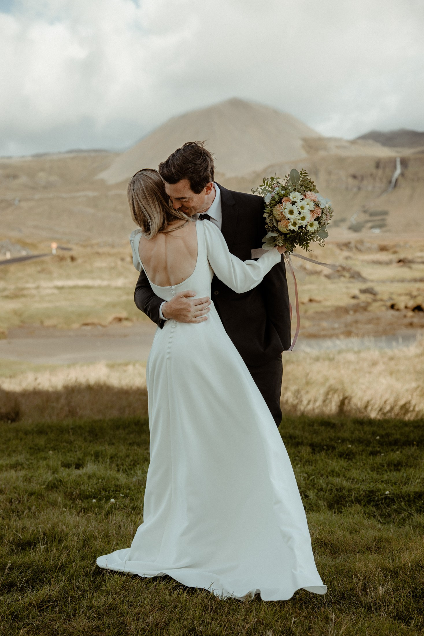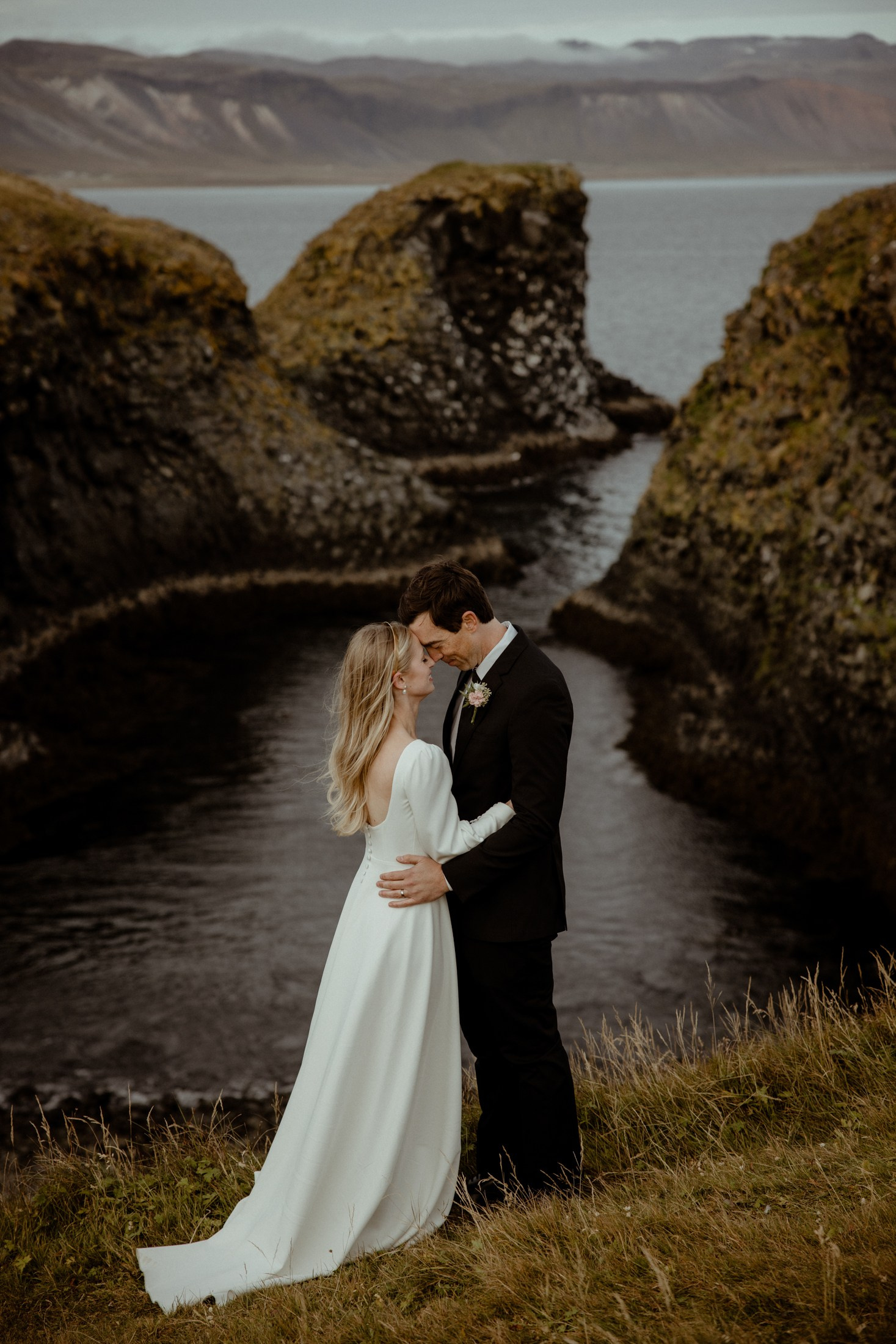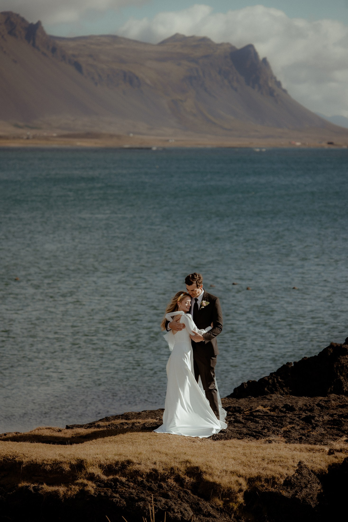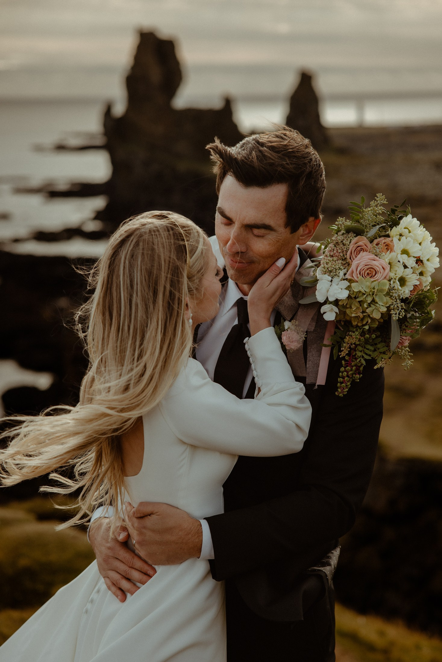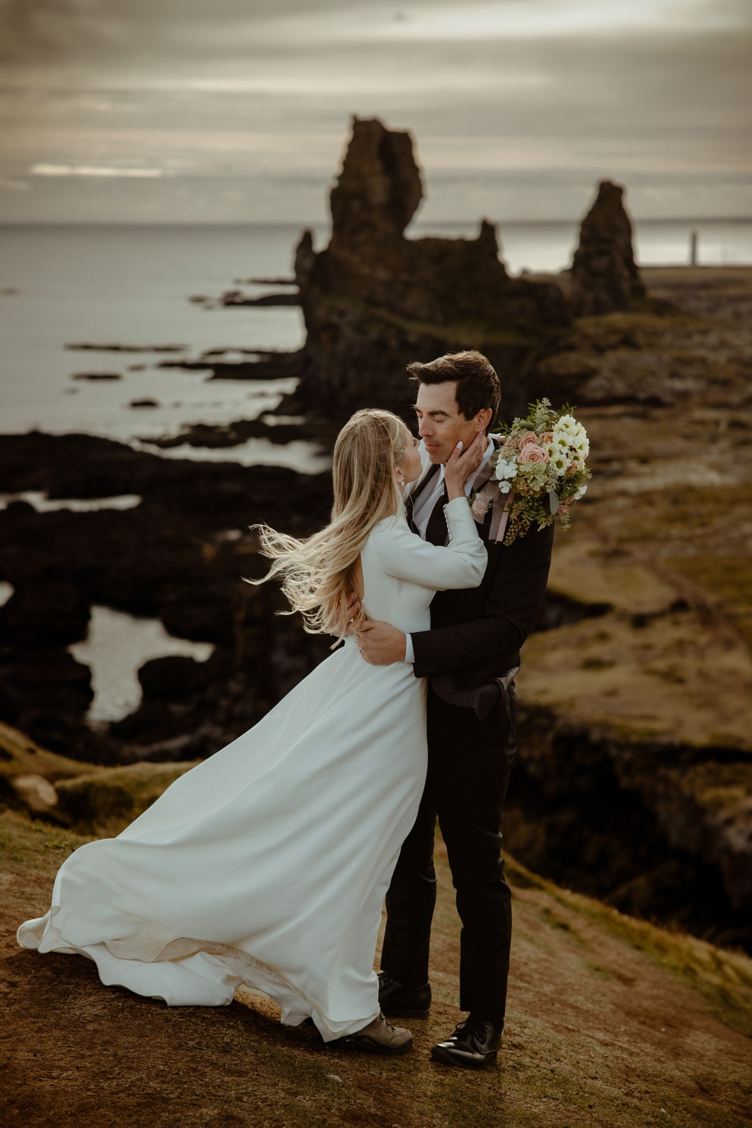They stood against the wind at Londrangar cliff hugging each other. This is what an Iceland wedding photo should feel like— honest and full of feelings.