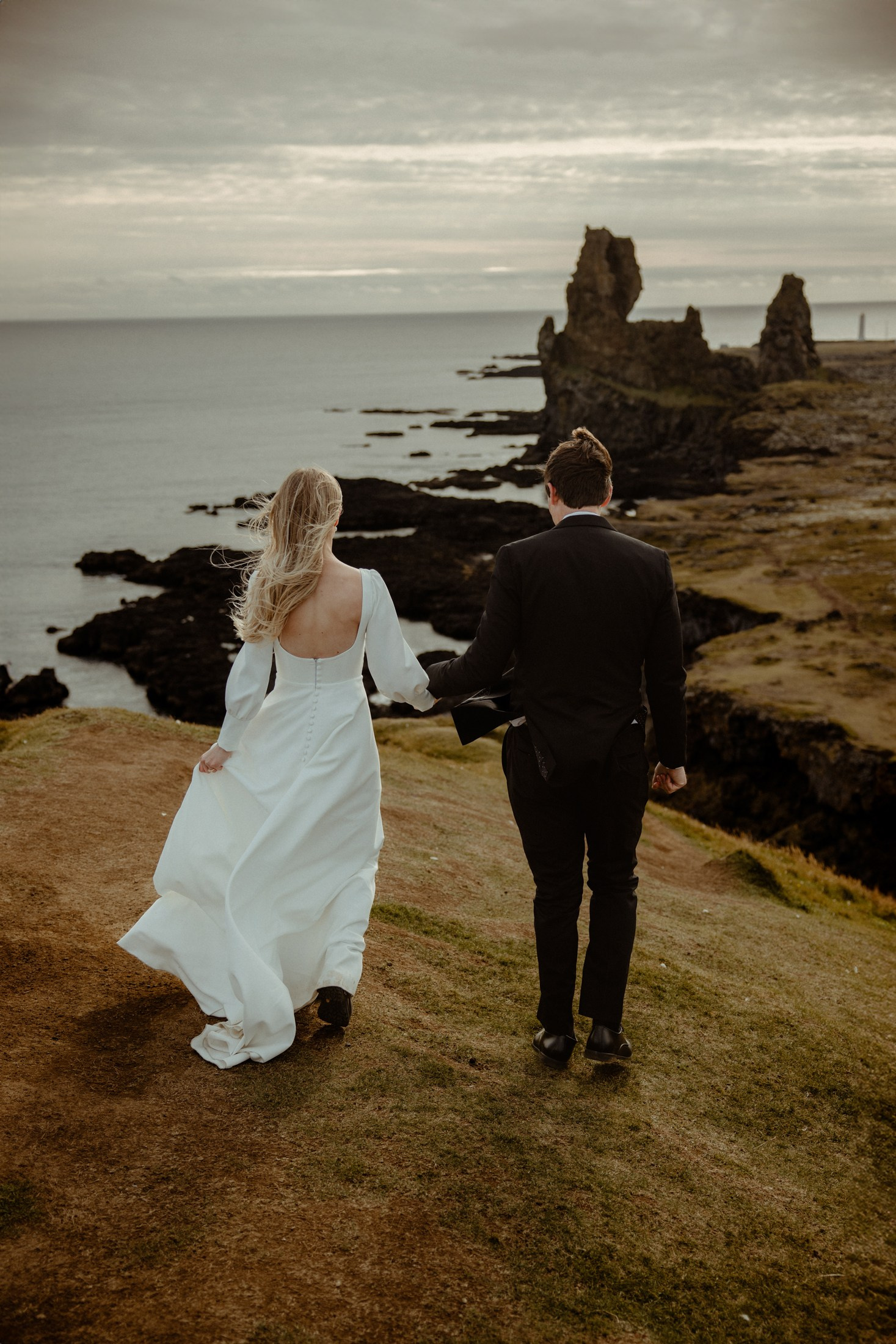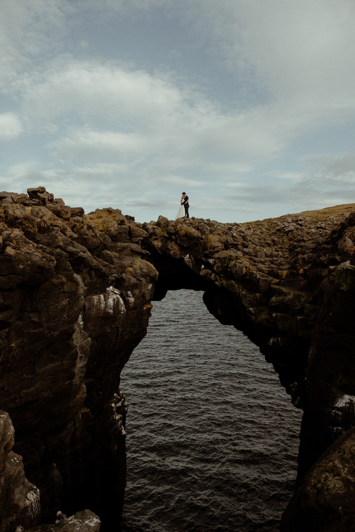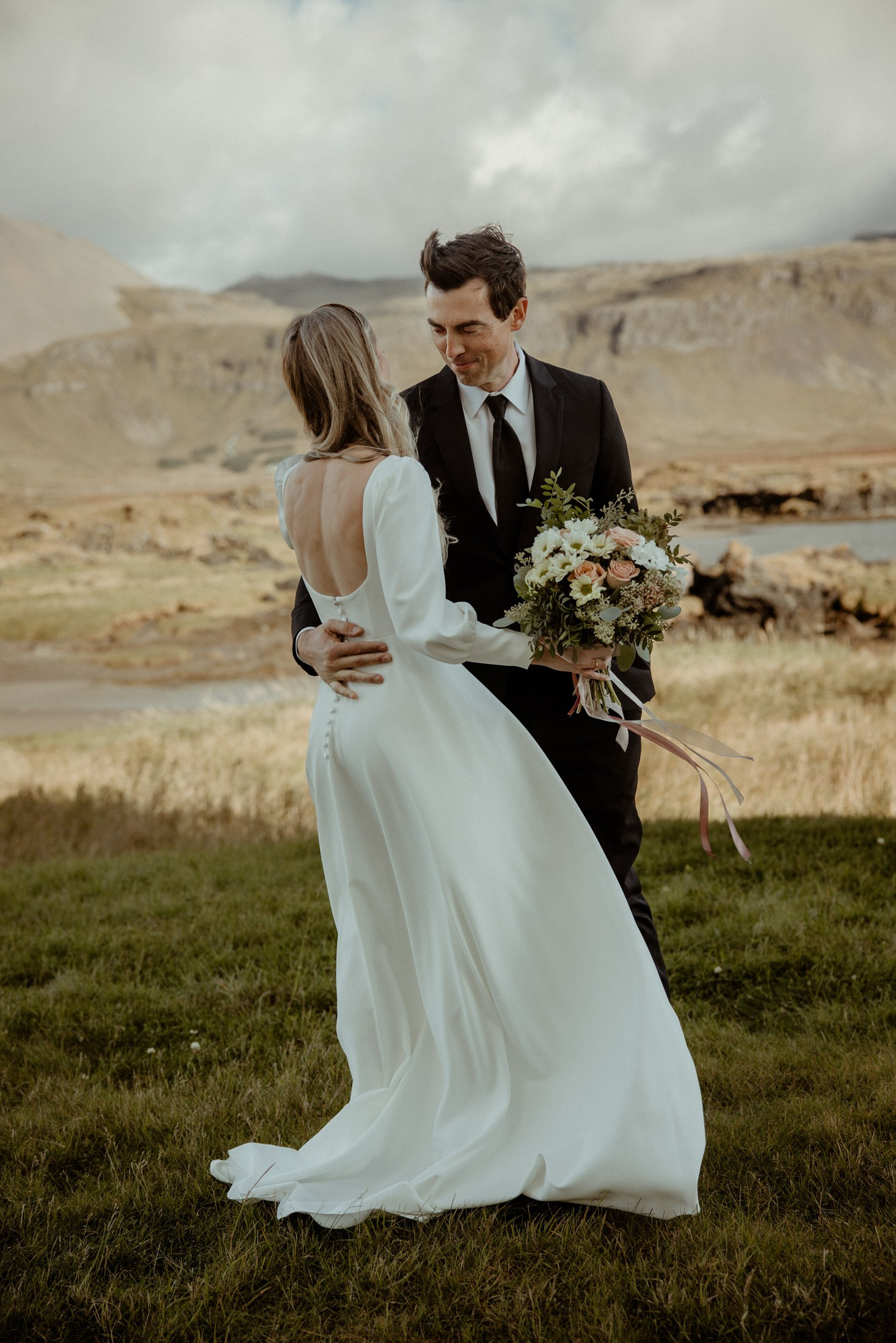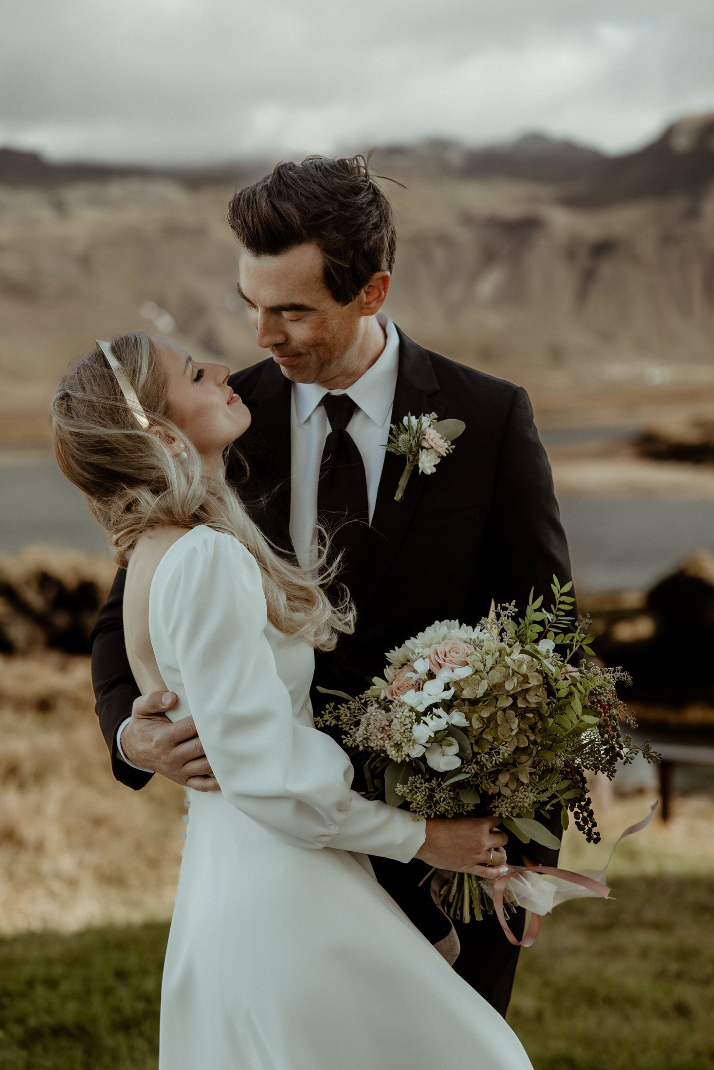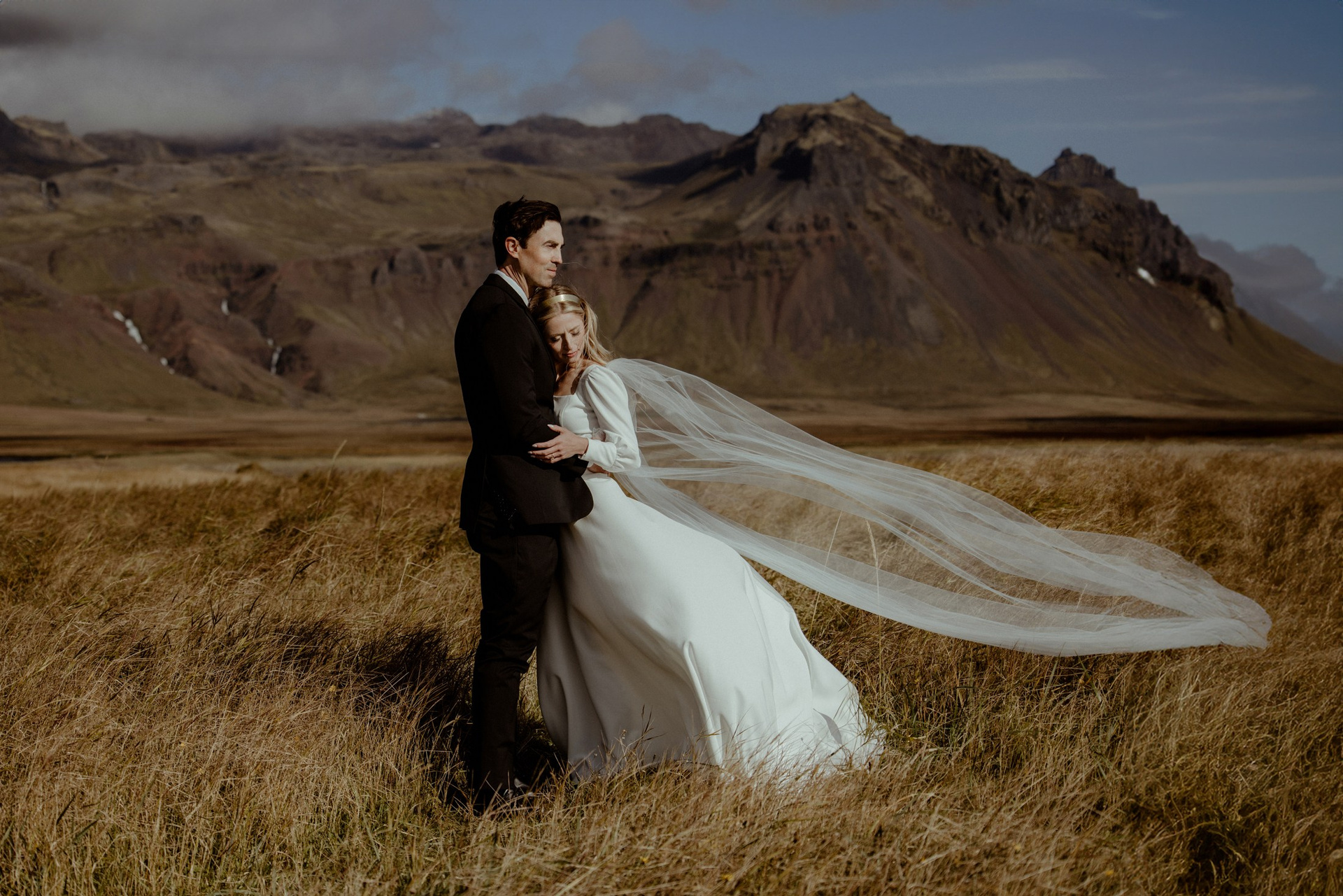 They stood against the wind at Londrangar cliff hugging each other. This is what an Iceland wedding photo should feel like— honest and full of feelings.
