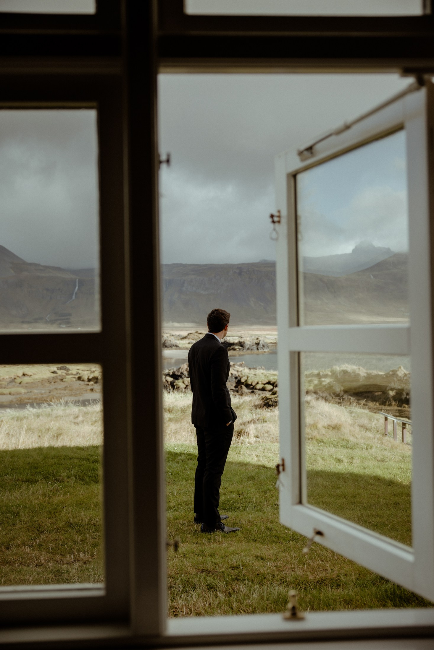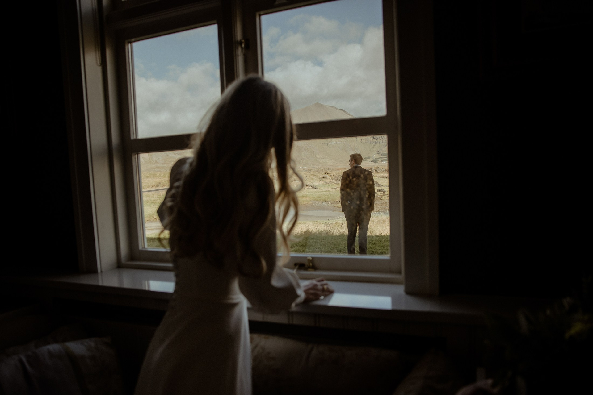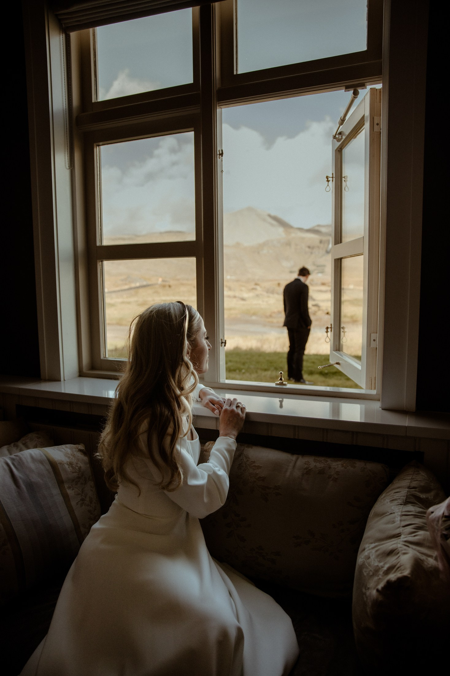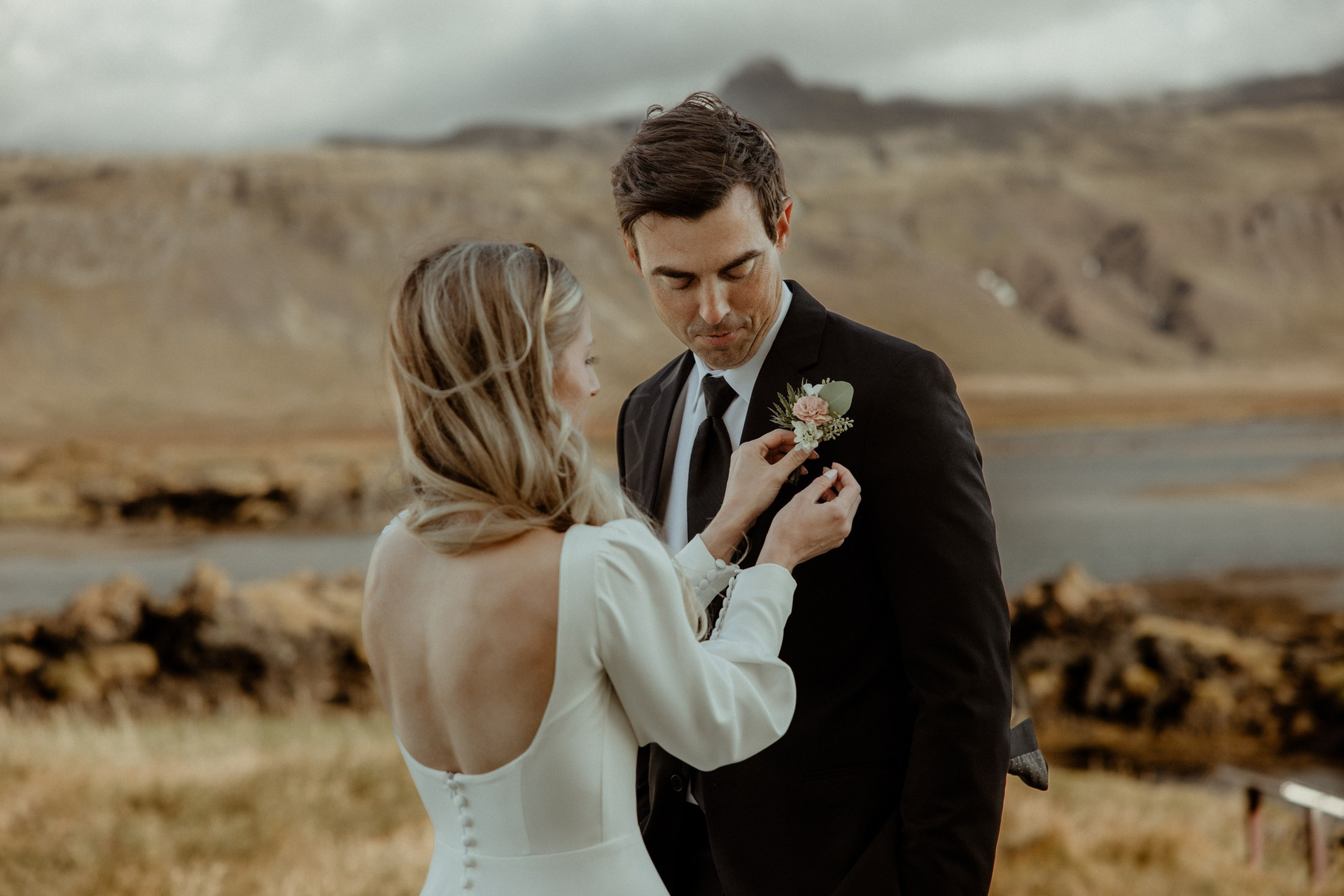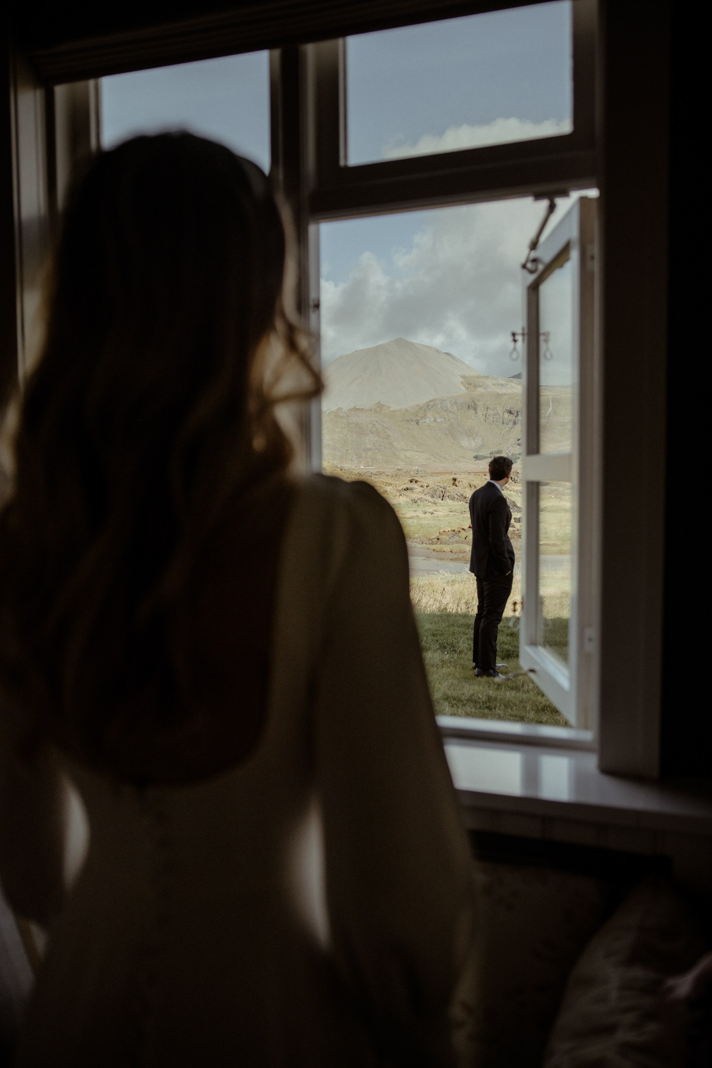 Their wedding day began at the Budir Hotel, which is hidden between mountains and lava fields.