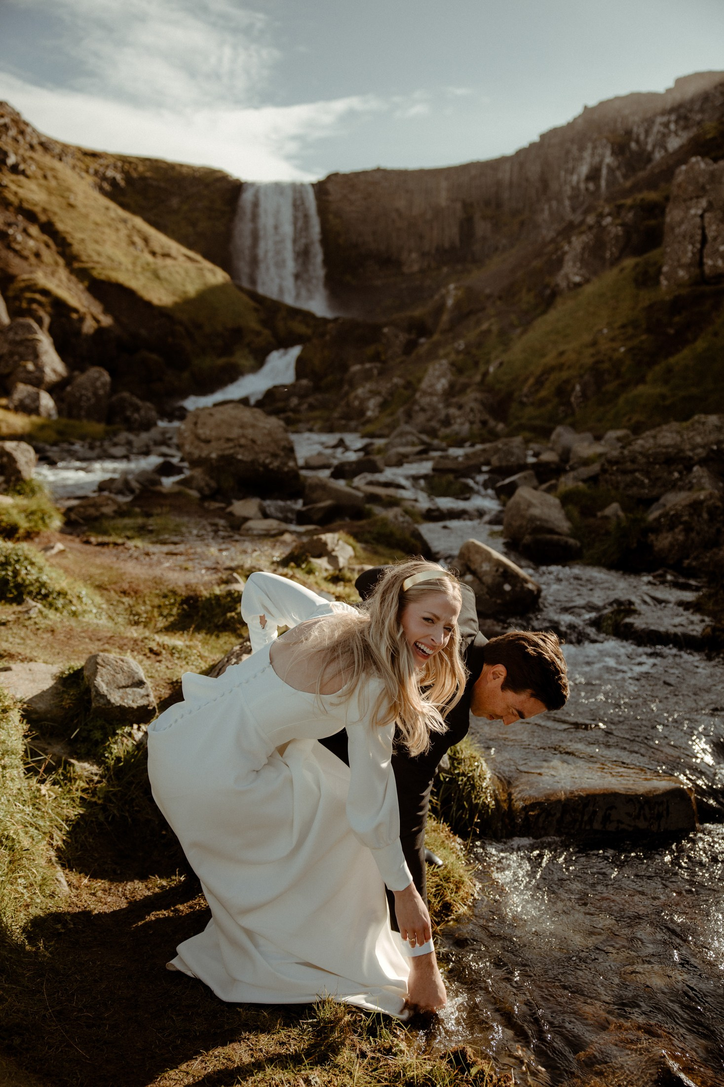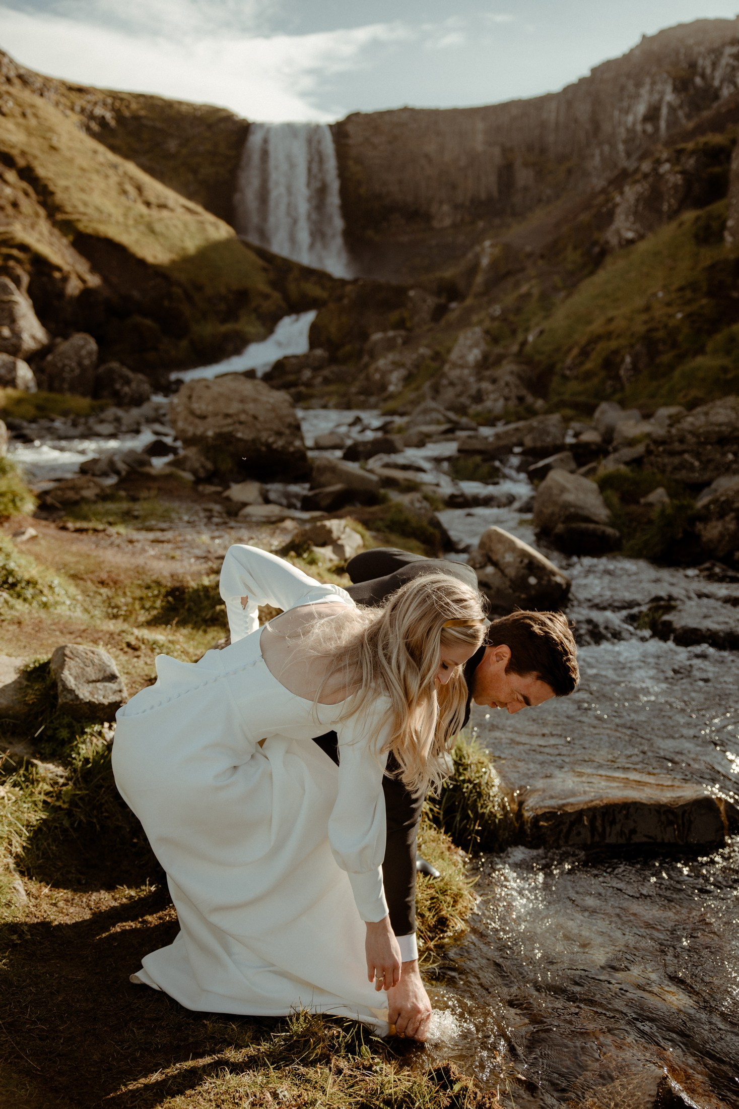 After saying their Iceland wedding ceremony, it was time to explore the area. We took them on a small road trip through Snæfellsnes. We stopped for short hikes to hidden waterfalls and the stone bridge.