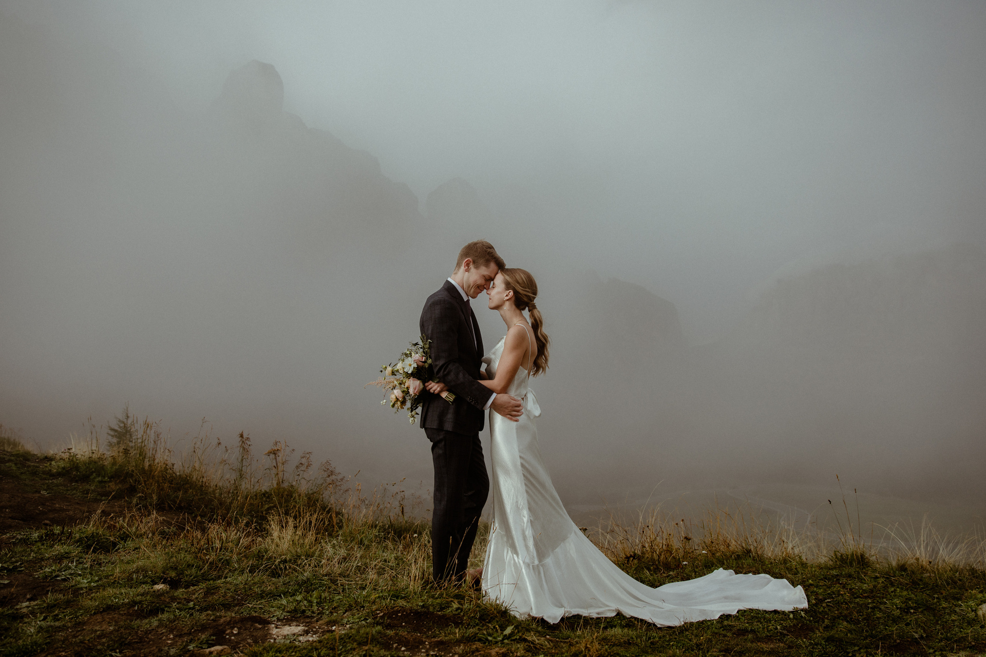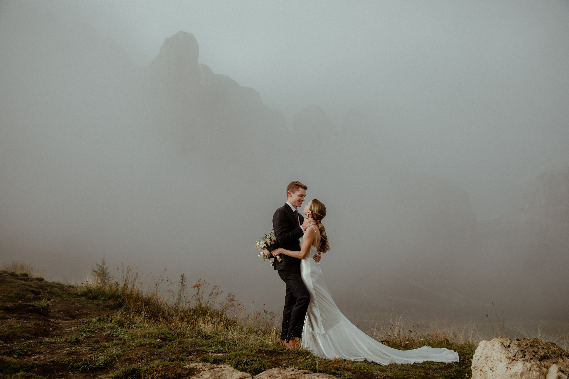 Later, they joined their closest friends and family for an intimate ceremony in Dolomites mountains, which was covered in a stunning cloud. So now they can for sure say that they got married on a cloud! :)