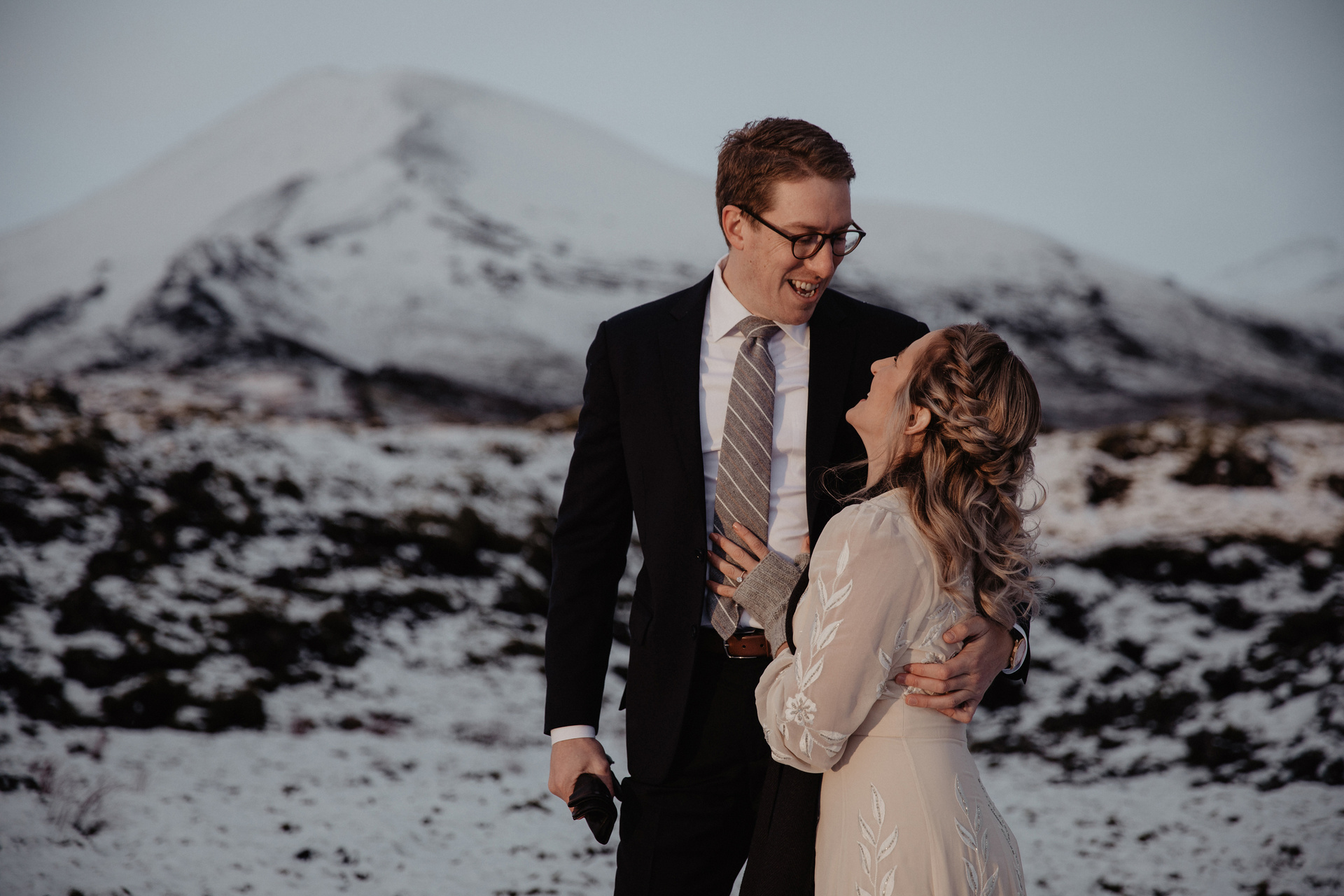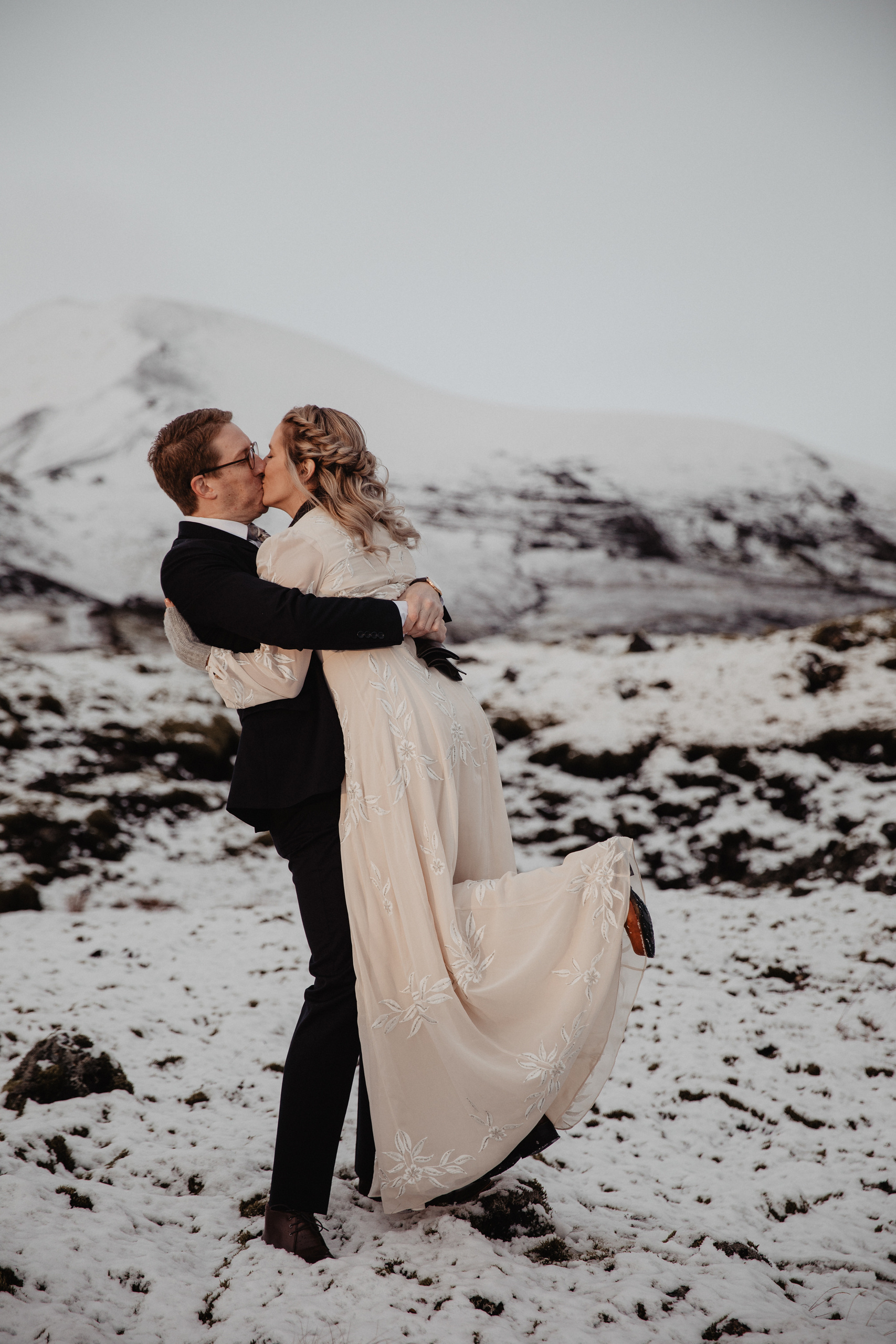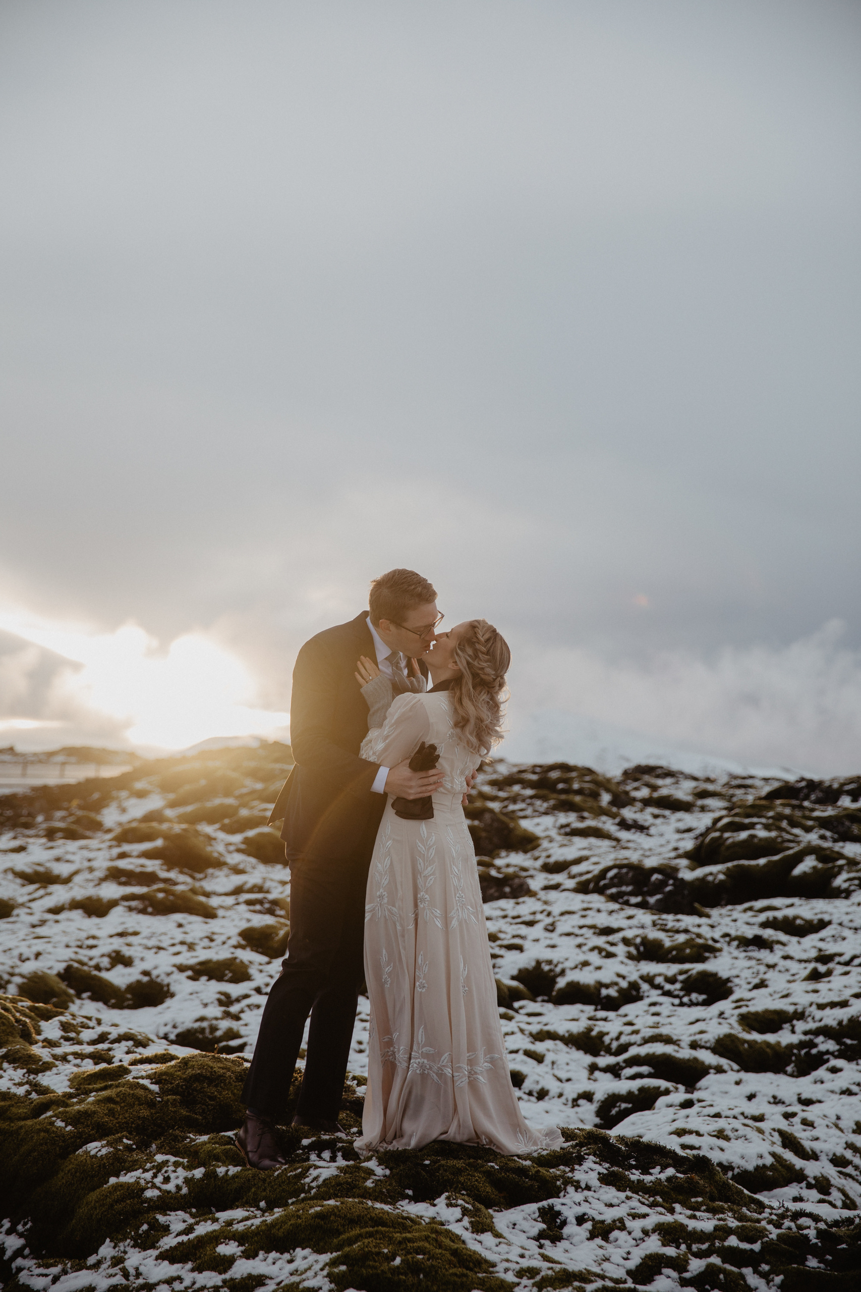 A elopement wedding for two in Iceland in early October is an amazing opportunity to see soft green moss and at the same time snow-covered fields and mountains. We spent this day with a wonderful couple from the USA — Kacey and Aaron.