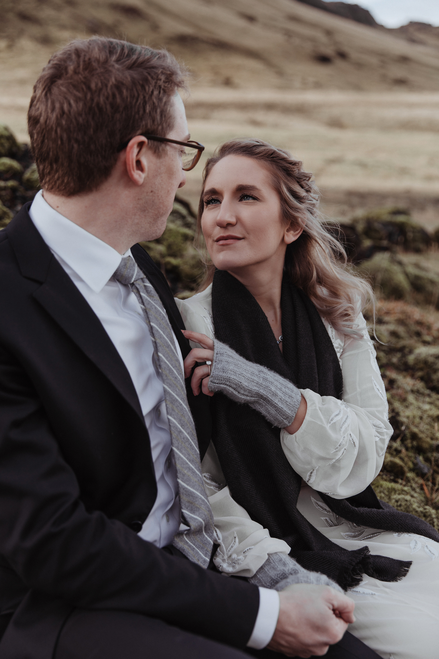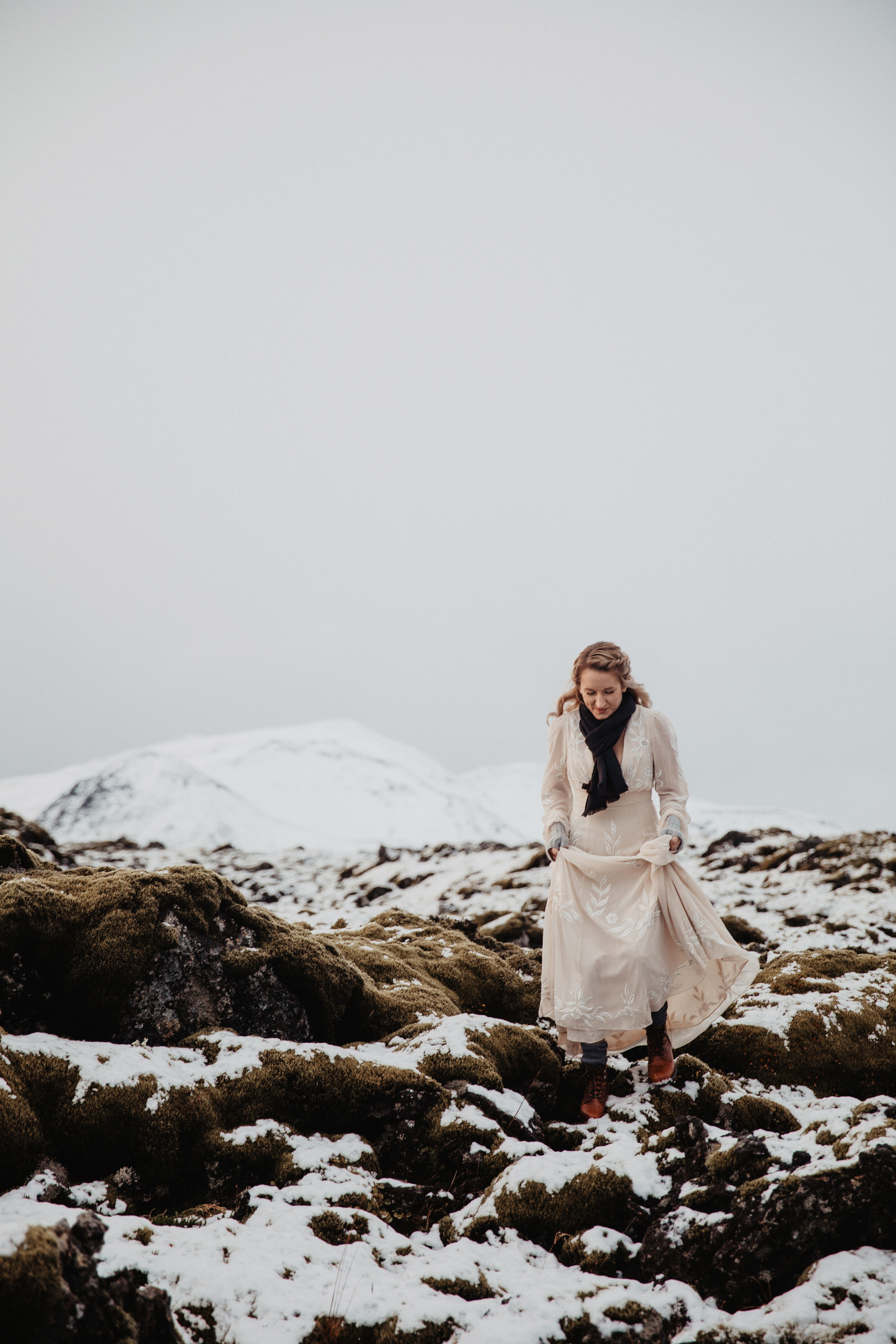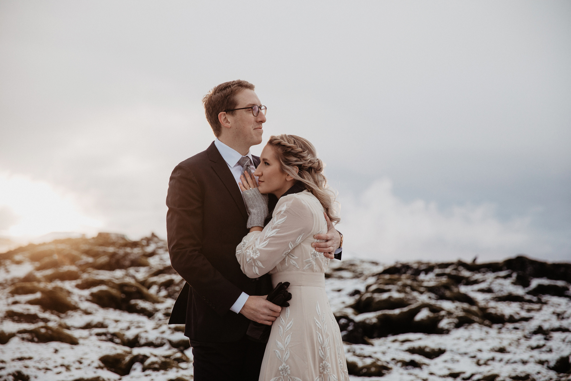 A elopement wedding for two in Iceland in early October is an amazing opportunity to see soft green moss and at the same time snow-covered fields and mountains. We spent this day with a wonderful couple from the USA — Kacey and Aaron.