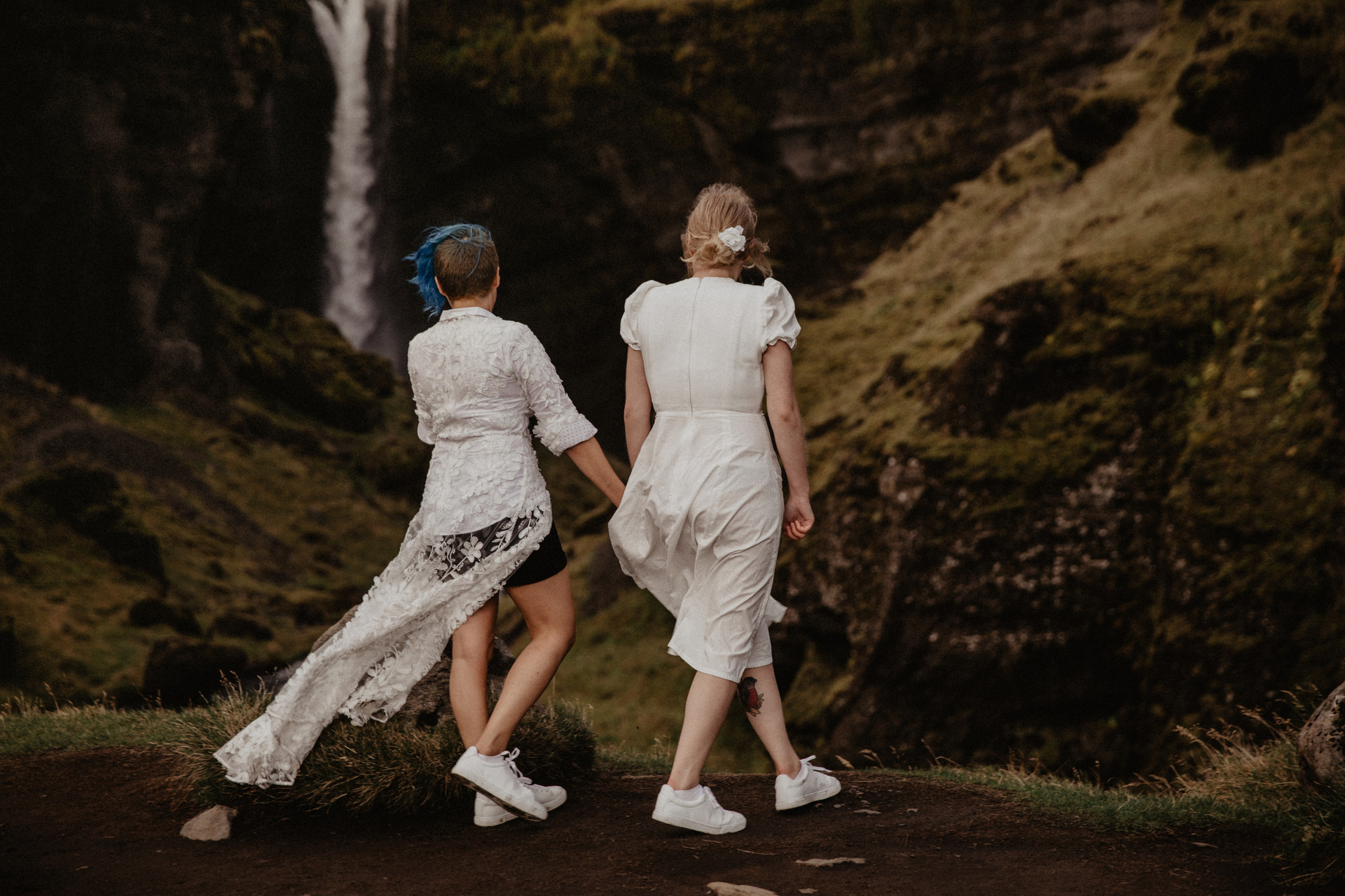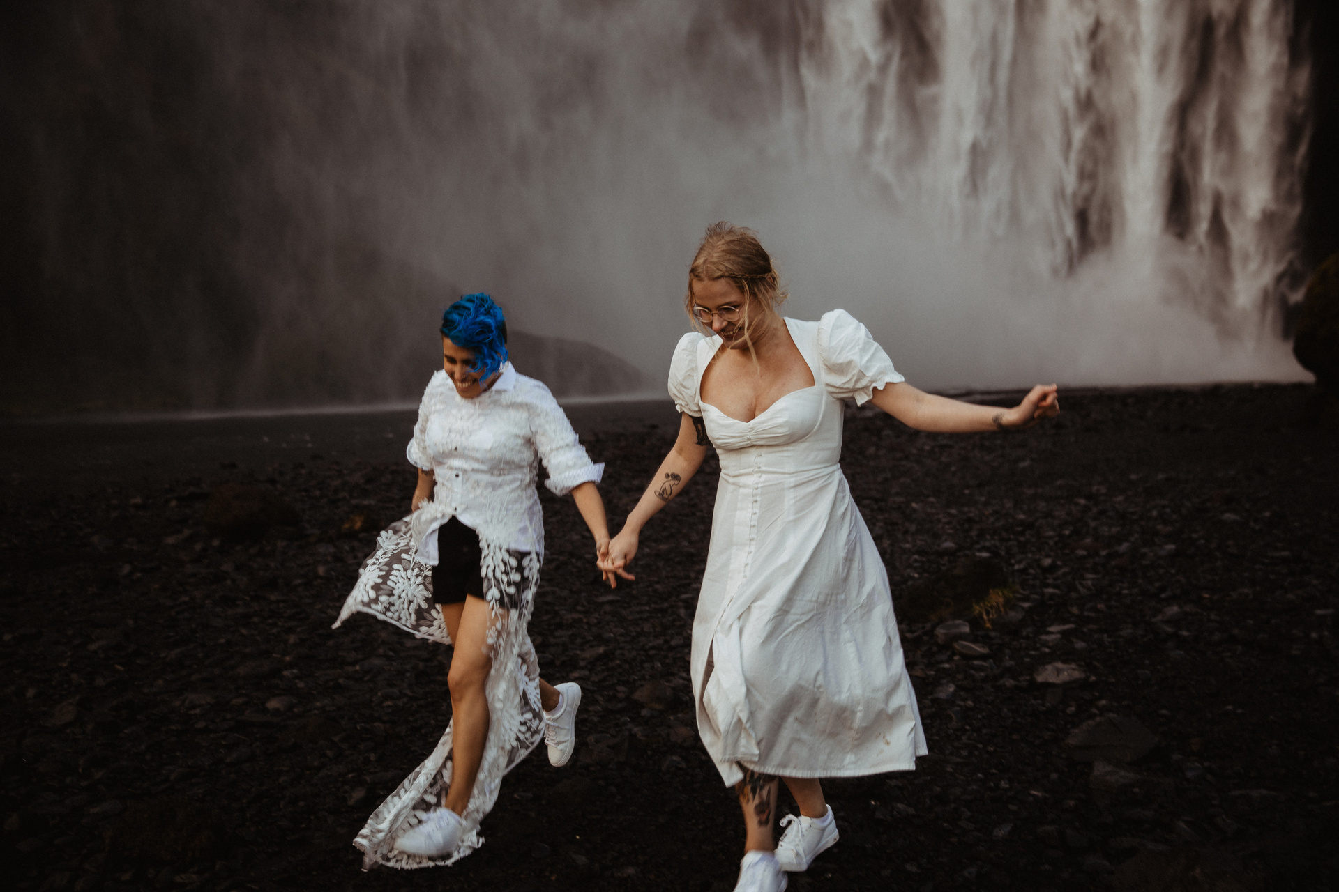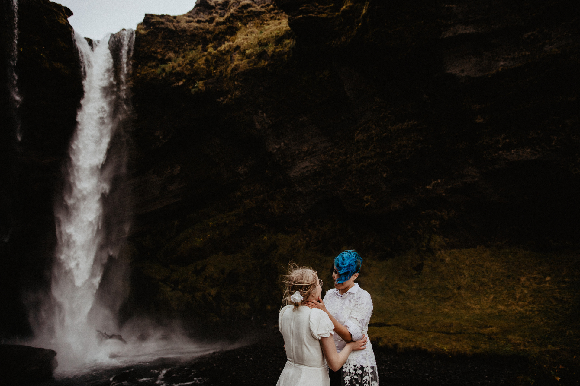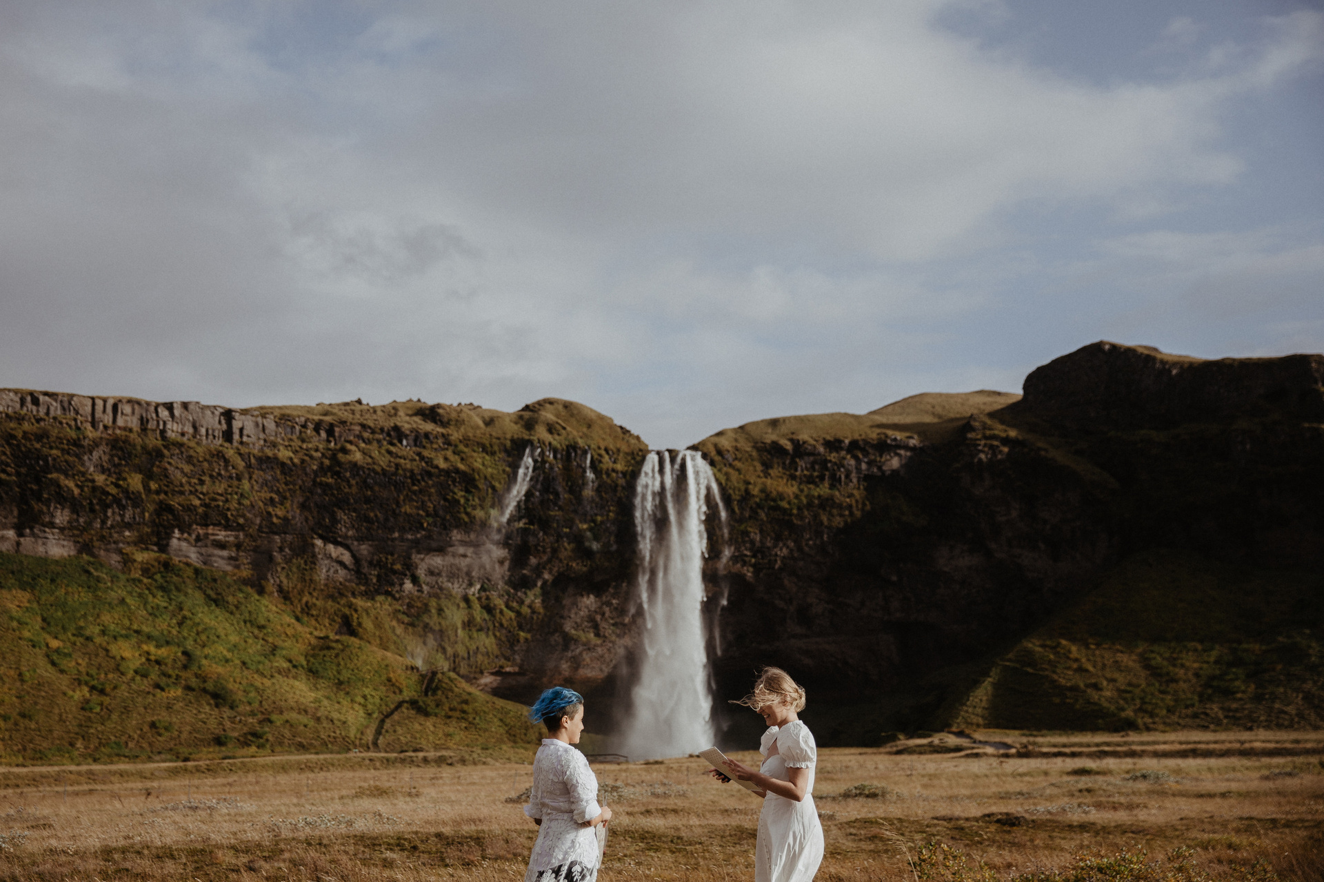 LGBT Elopement in Iceland | ceremony at Seljalandsfoss waterfall