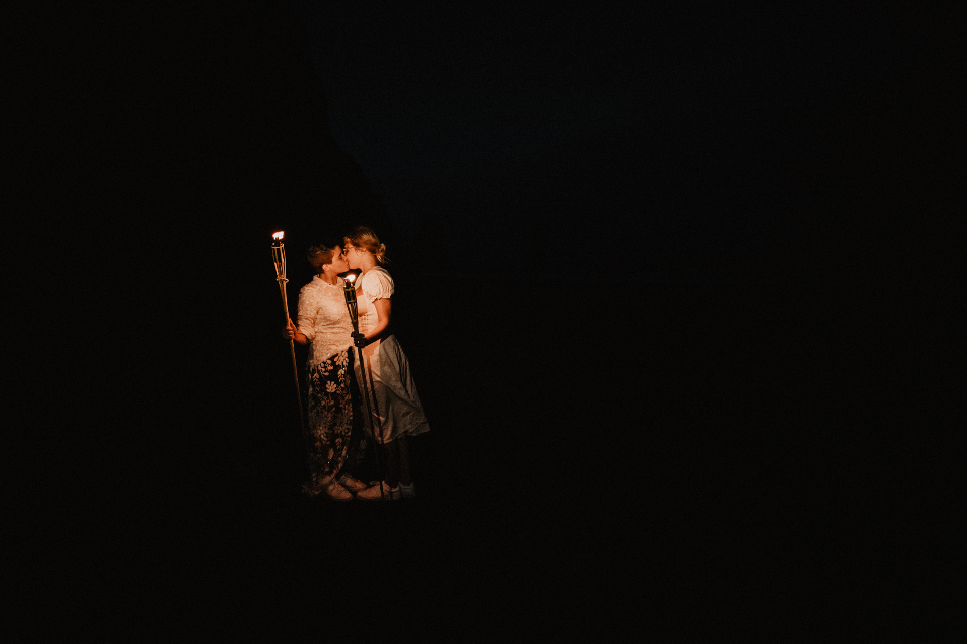 When we came to our final point Reynisfjara black sand beach near Vik it was totally dark. But it add some magic to the photos. They took two torches with them and lit them. In fully darkness it looked amazing! As a symbol that love always win. They celebrated their elopement at Icelandic black sand beach as their wedding venue in Iceland.