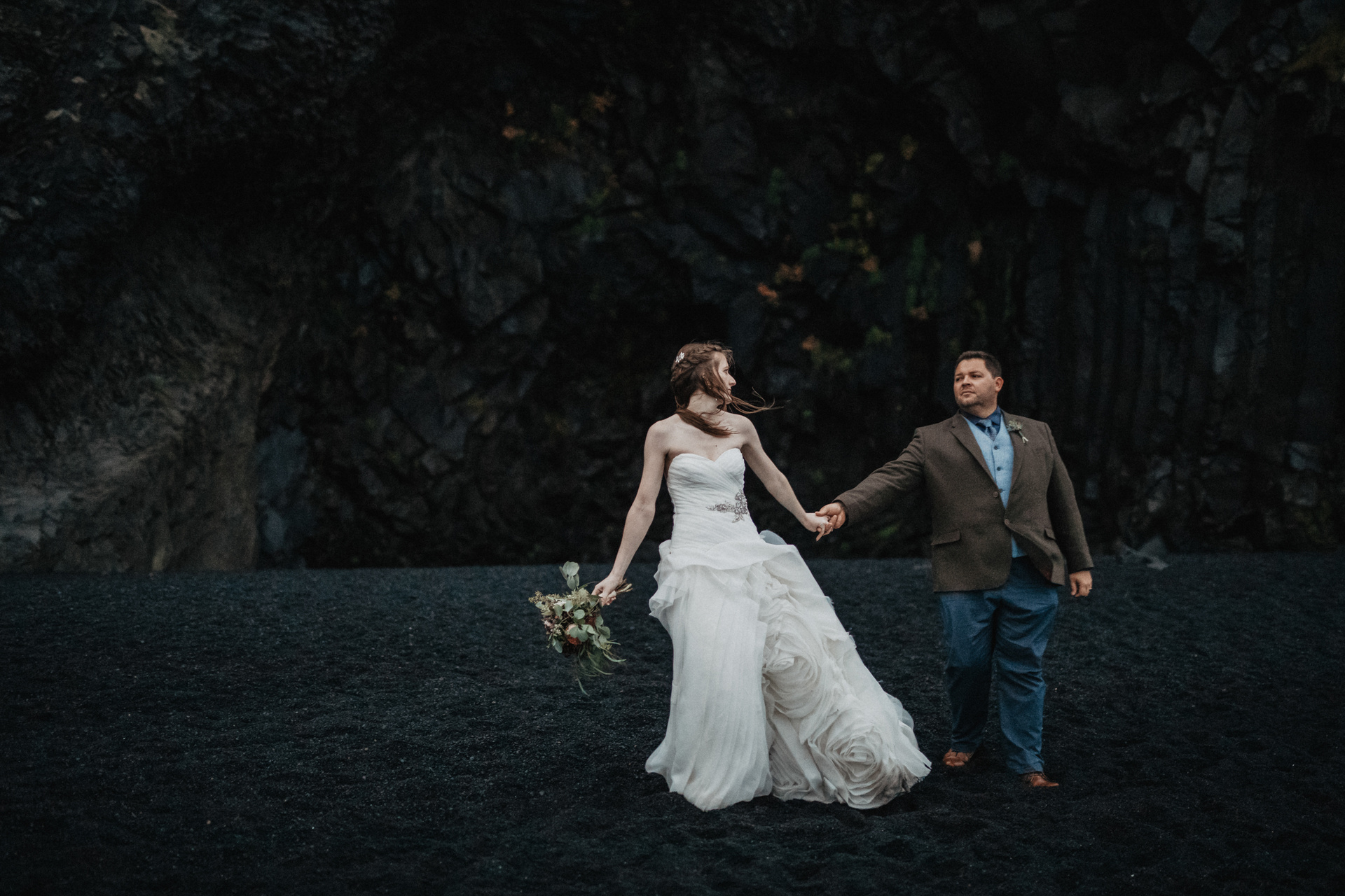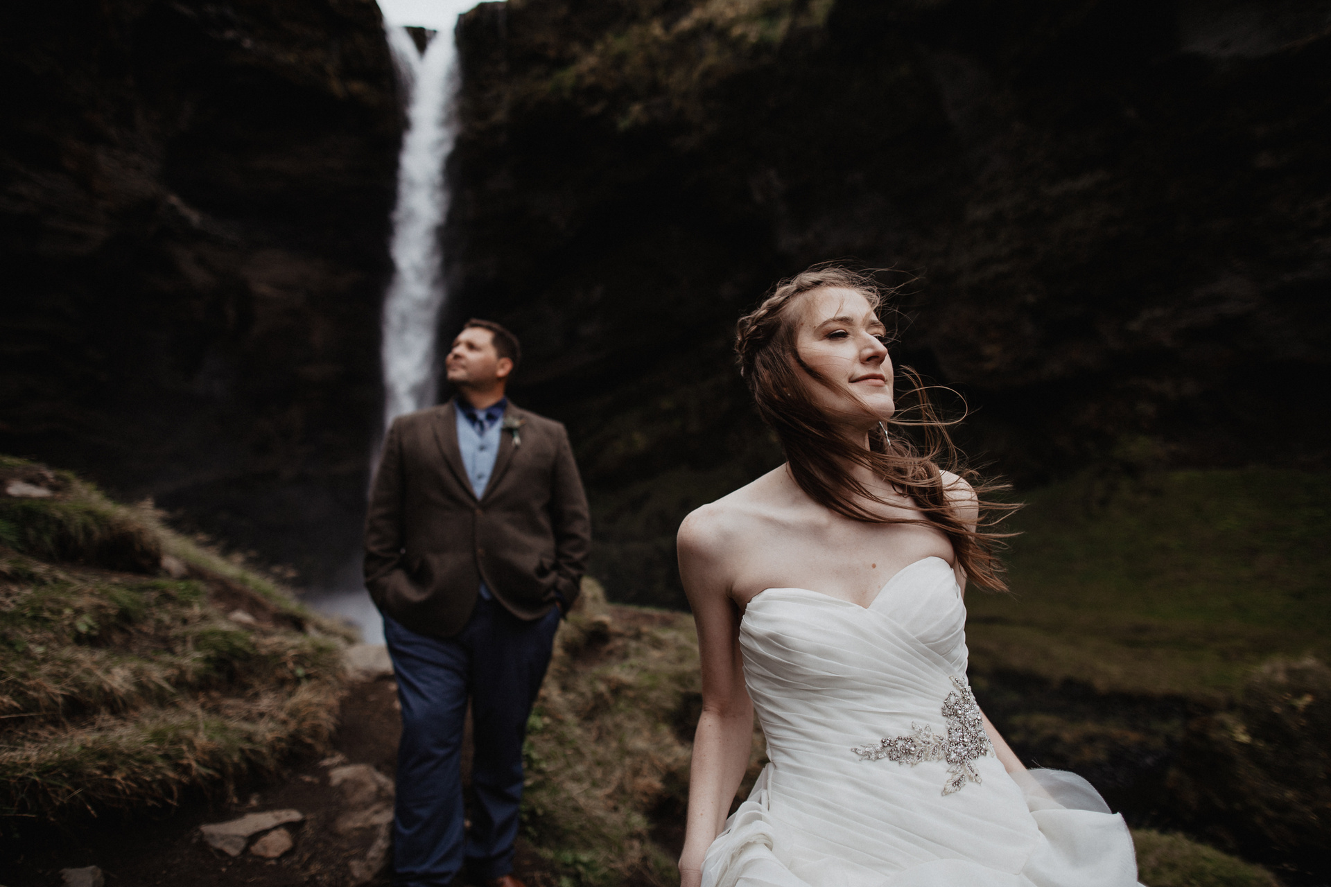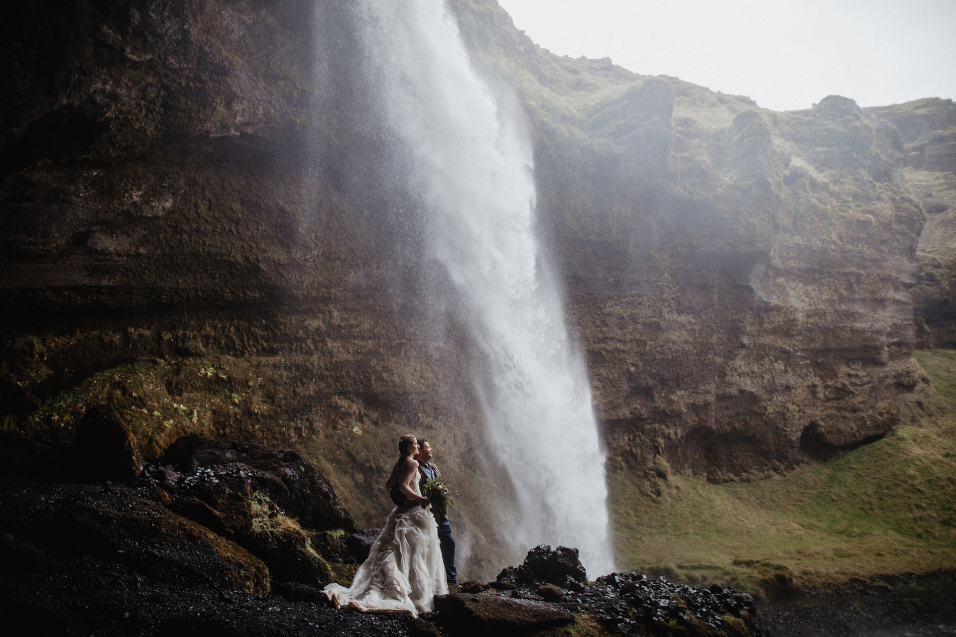 It was second day of our journey around Iceland with these two soulmates. After their ceremony in the middle of Iceland we showed them beauty of Kvernufoss and many other hidden gems around South Iceland. We spent the whole day telling each other stories, hiking and climbing and laughing of course. The wedding dress after all these adventures and running at the black sand beach was dirty but as we like to say: