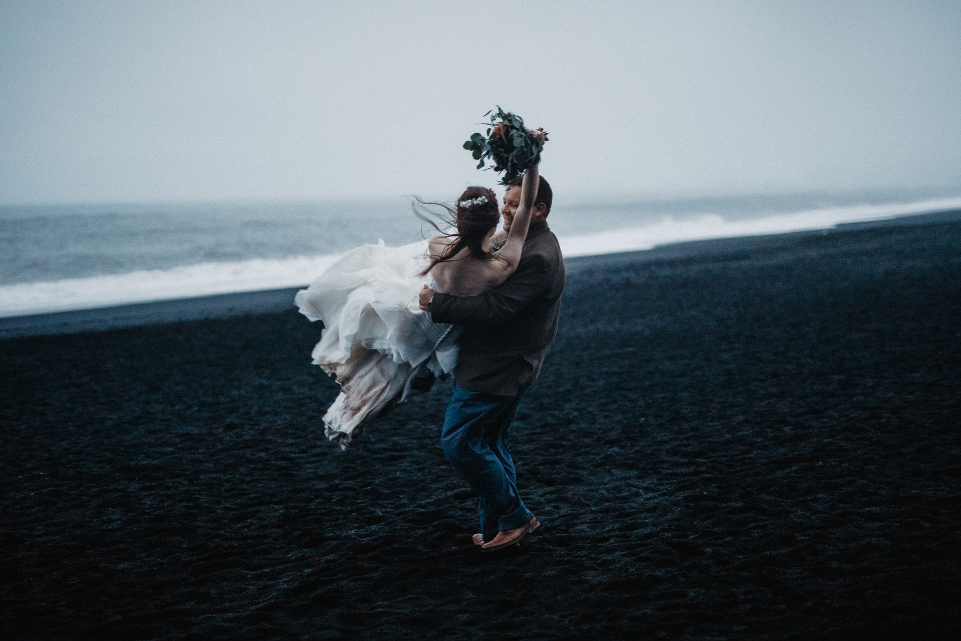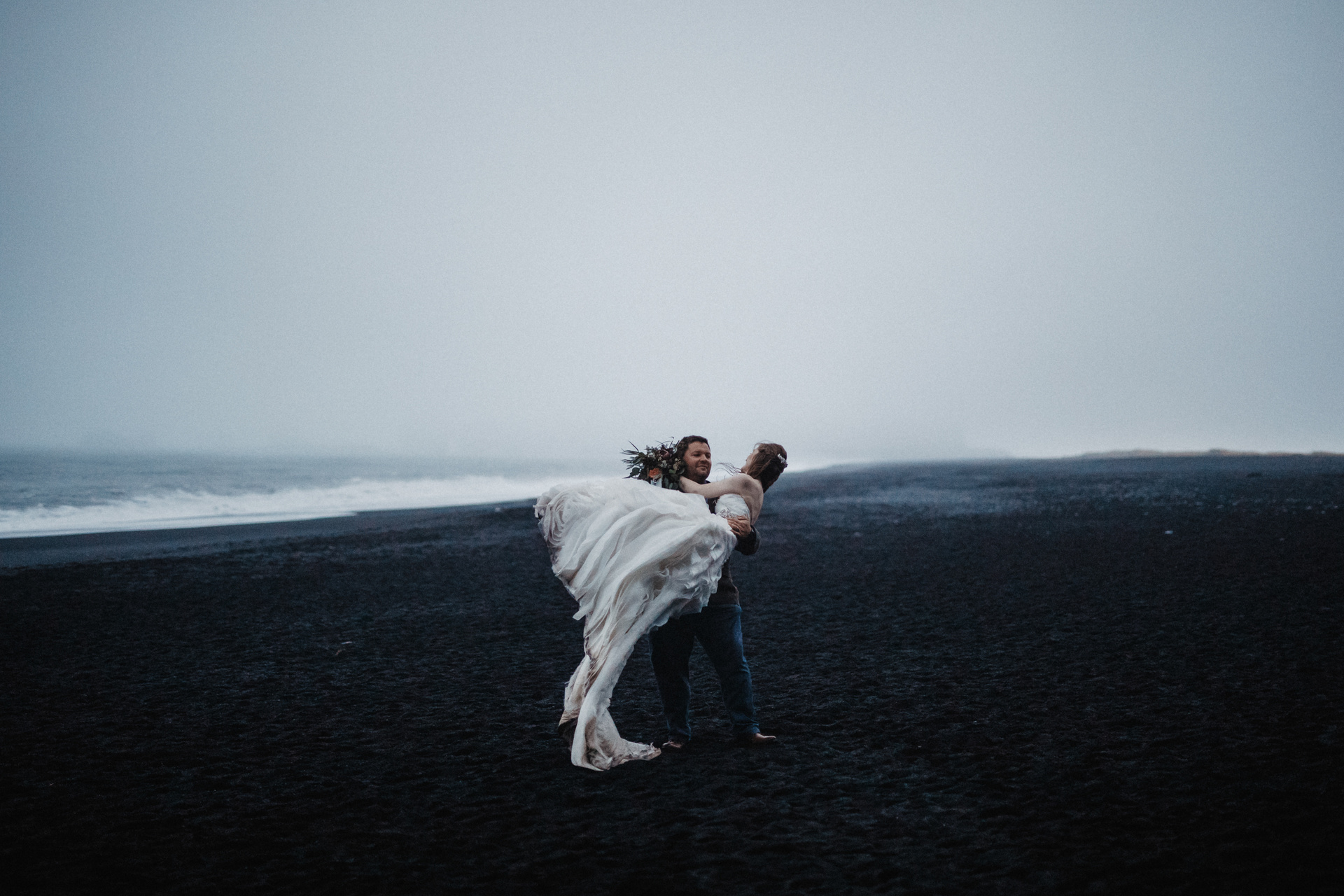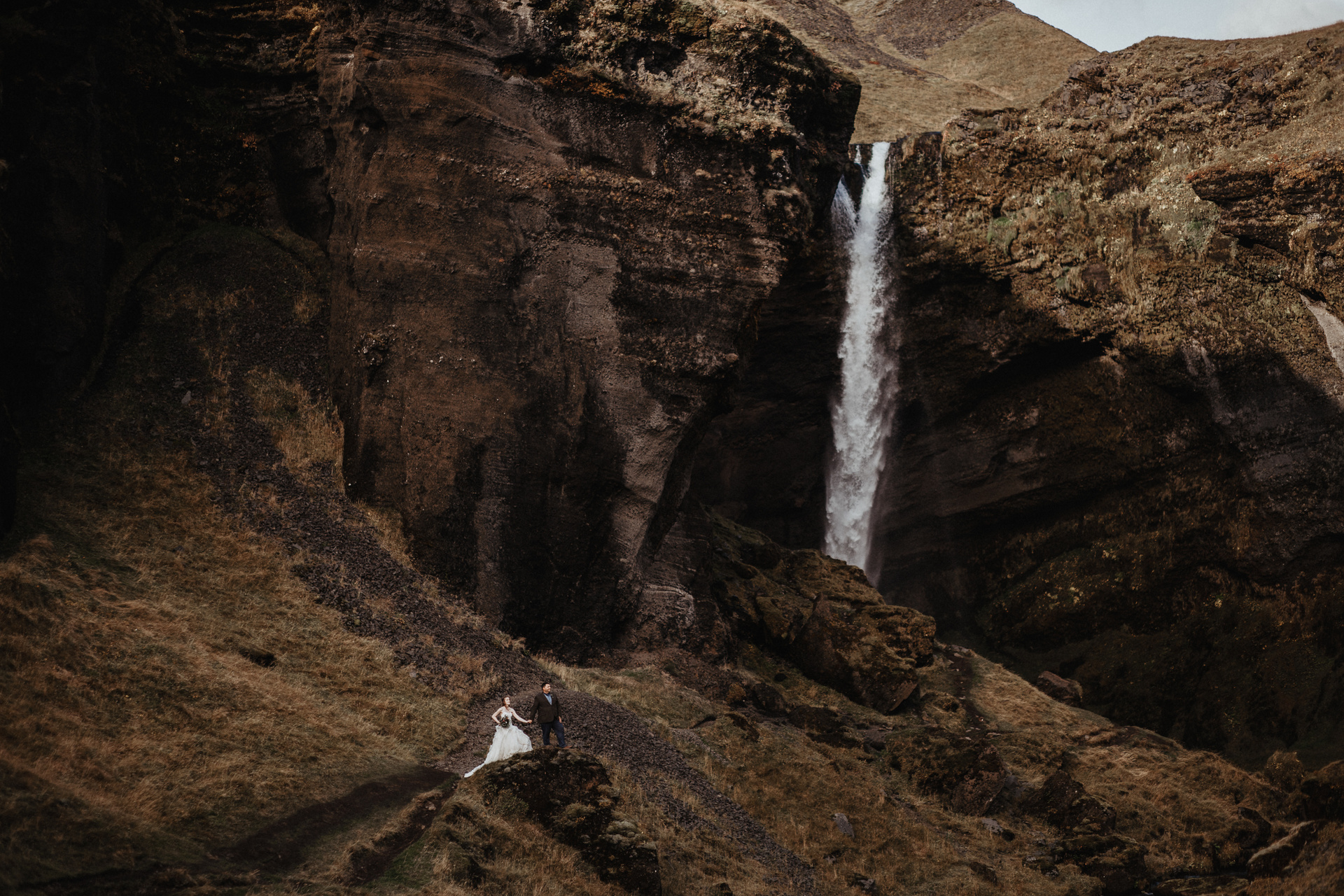 It was second day of our journey around Iceland with these two soulmates. After their ceremony in the middle of Iceland we showed them beauty of Kvernufoss and many other hidden gems around South Iceland. We spent the whole day telling each other stories, hiking and climbing and laughing of course. The wedding dress after all these adventures and running at the black sand beach was dirty but as we like to say:
