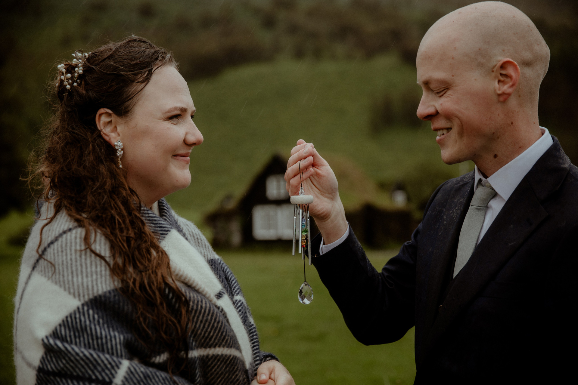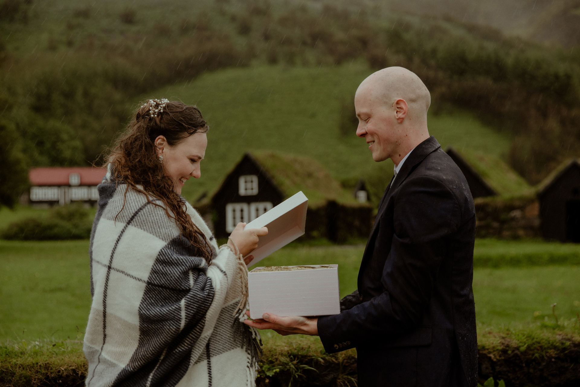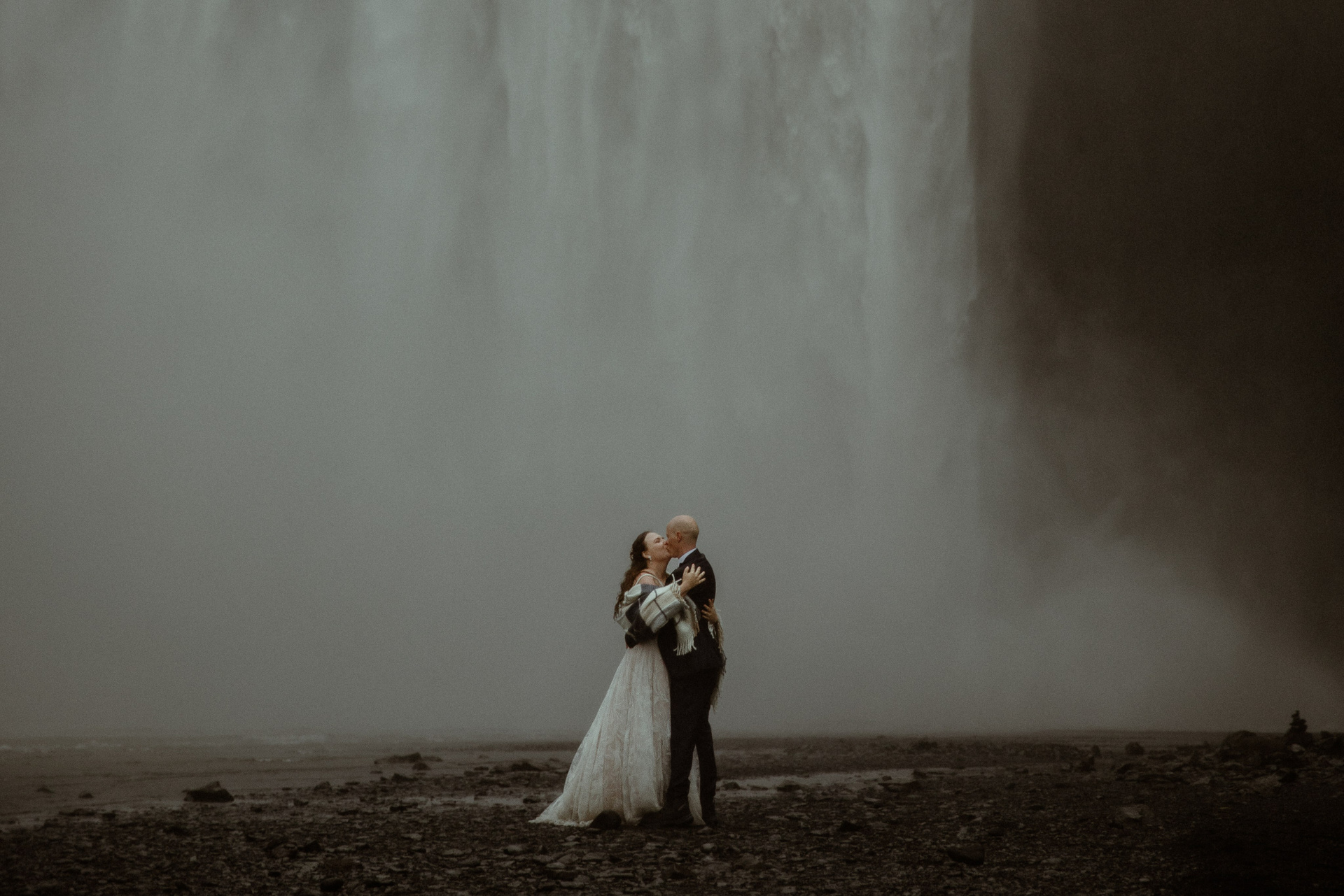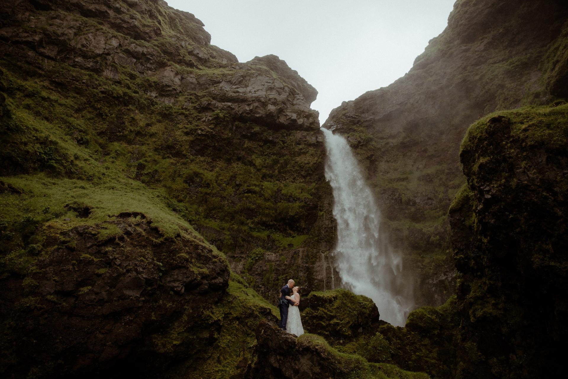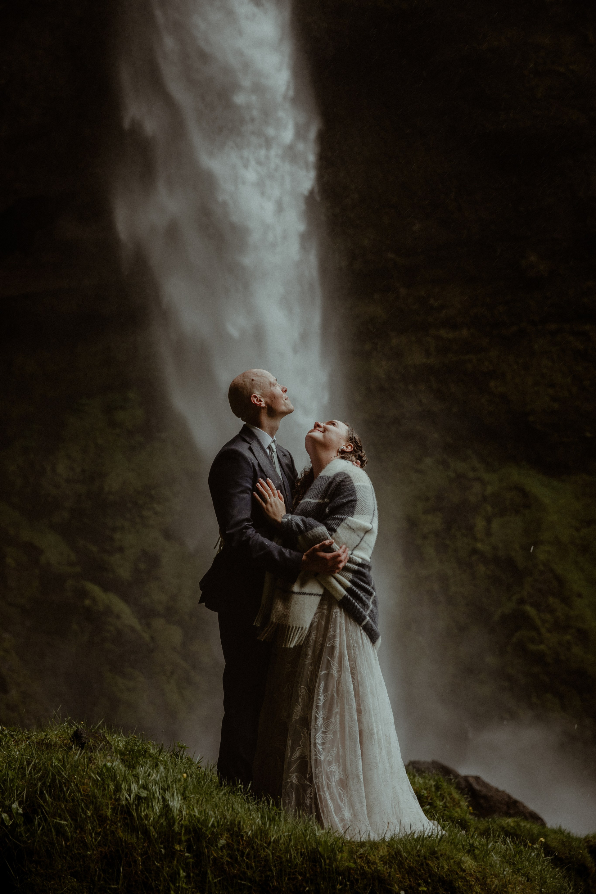 Then came the ceremony by a hidden waterfall, where the real magic happened! Our couple, standing hand in hand, with Icelandic horses as their only audience, made their promises to each other. The soft rain that started to fall only added to the intimacy and magic of their Iceland elopement, creating a beautiful, otherworldly scene.