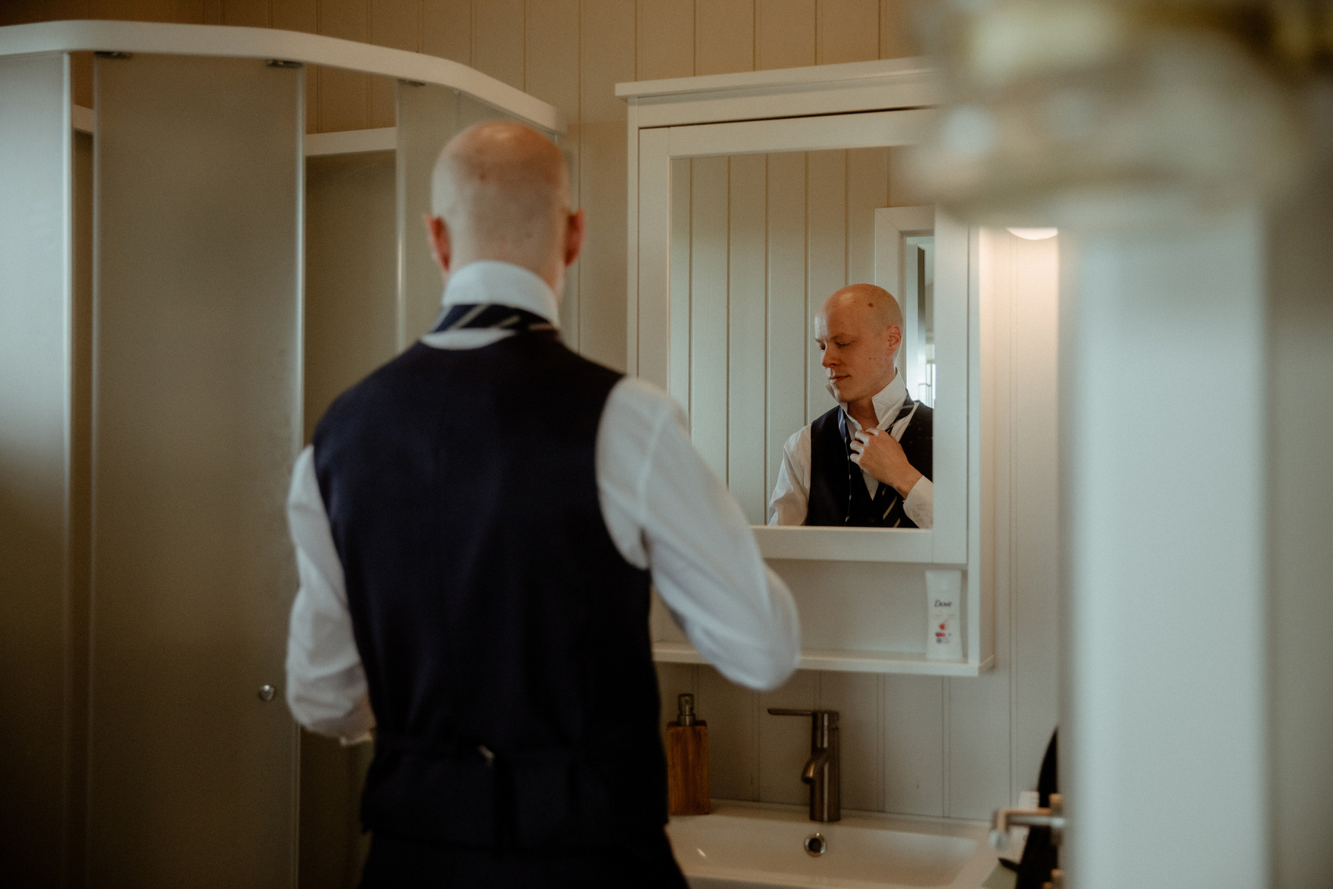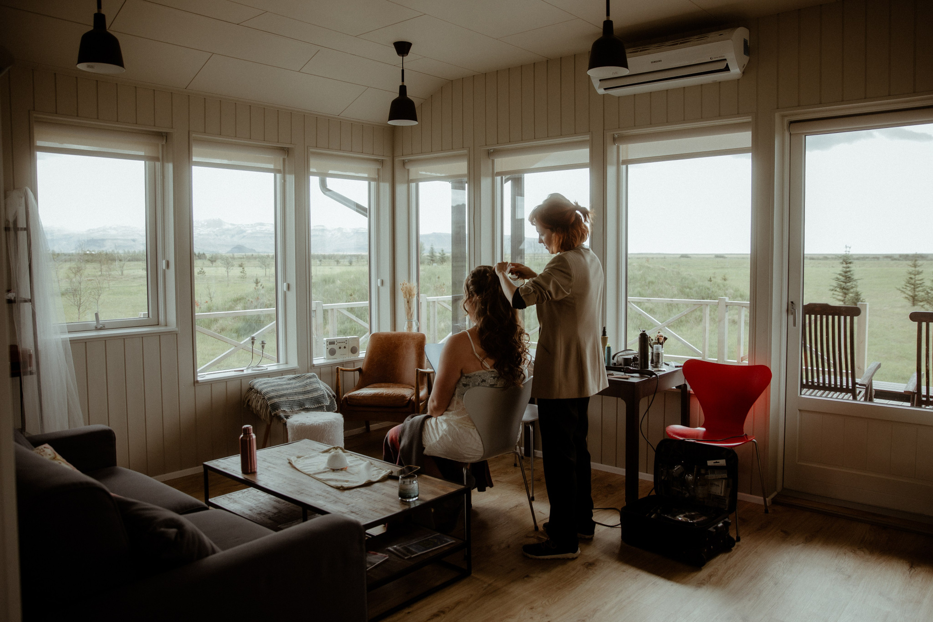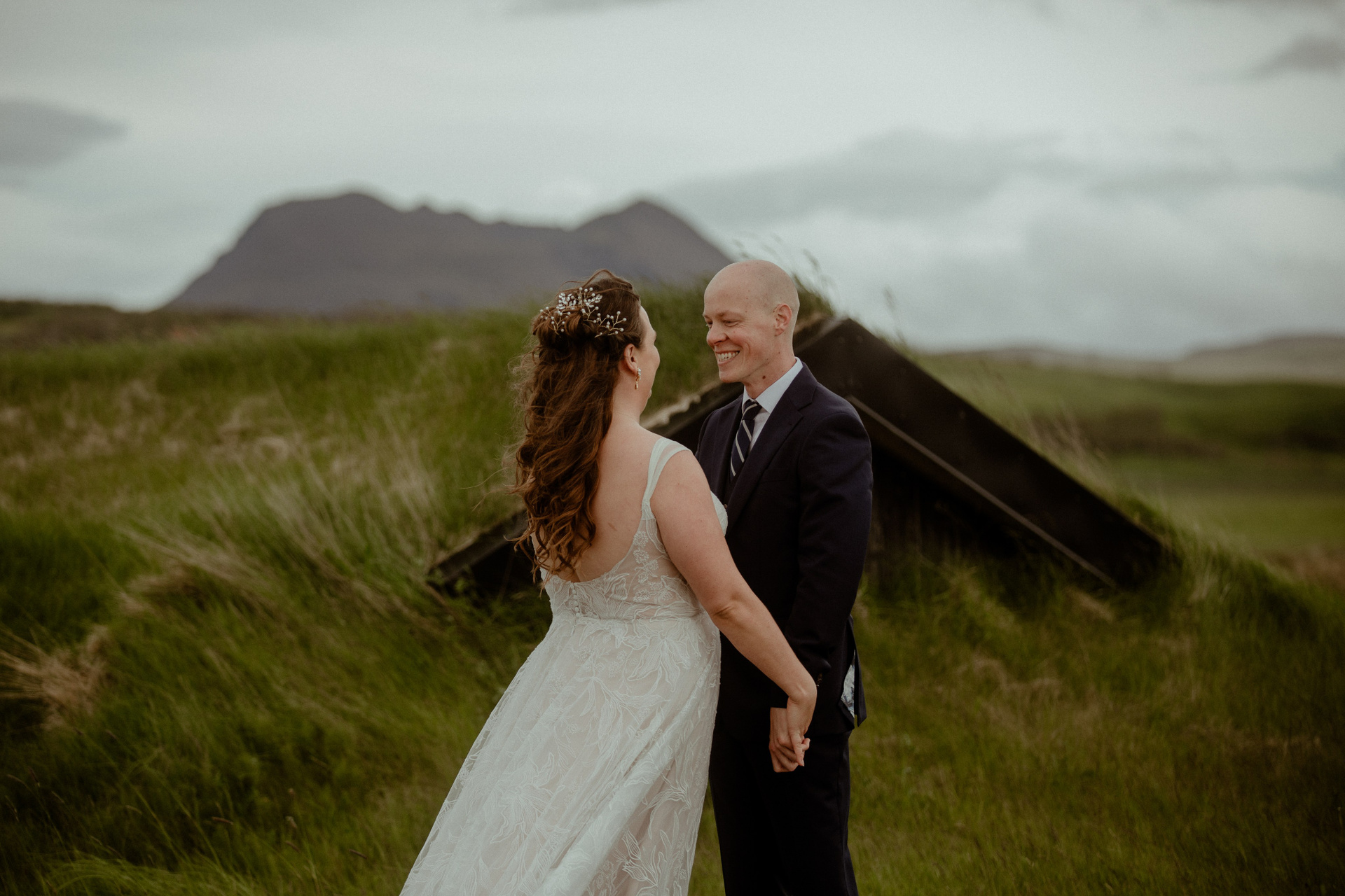 Their day started in the warmth of a quaint cottage in South Iceland. Imagine getting ready with your beloved, surrounded by the lush beauty of Iceland in June, when the lupines are in full bloom and the sun barely nods off. Their first look was nothing short of a movie scene, set against such a breathtaking mountains landscape.