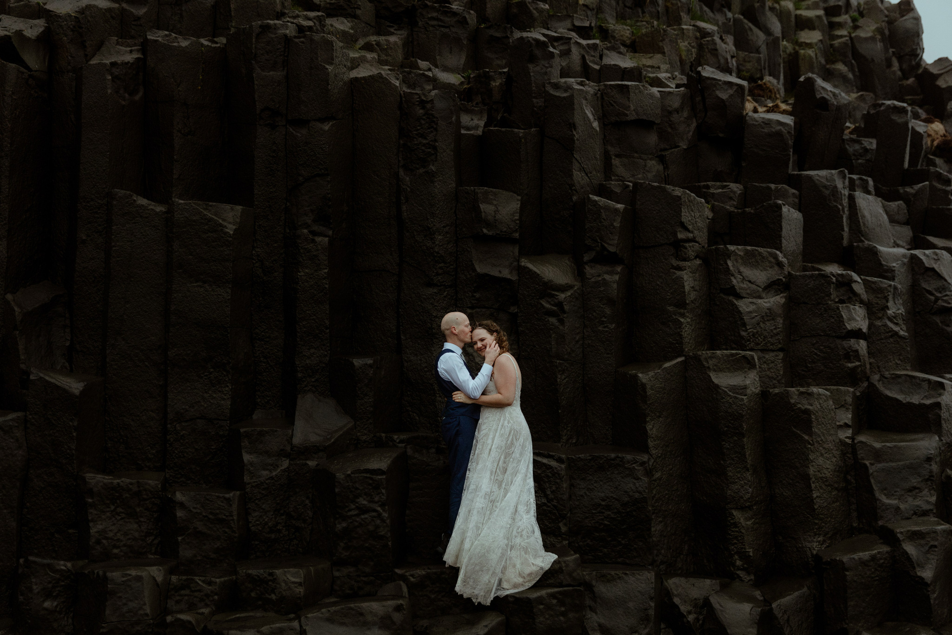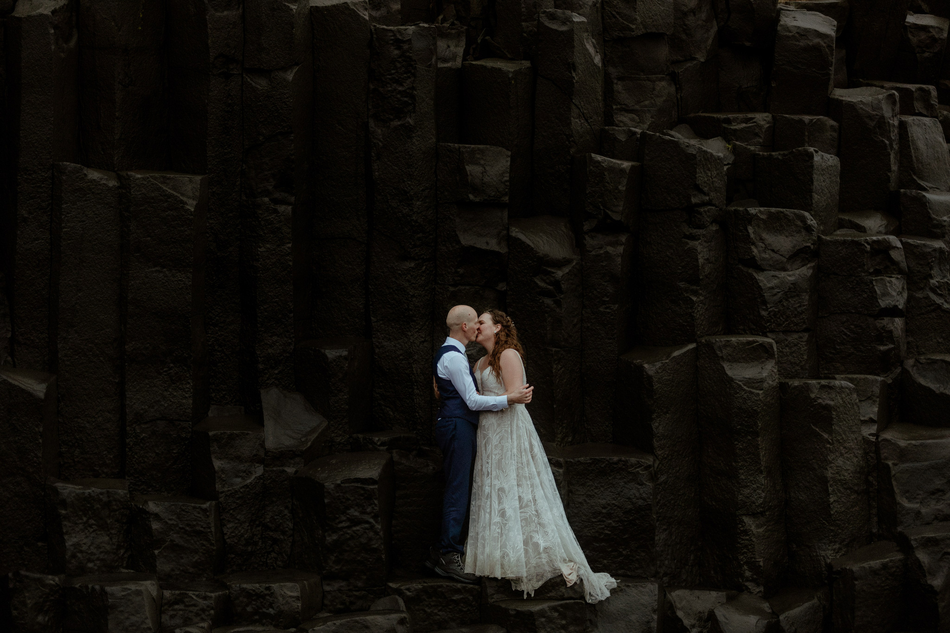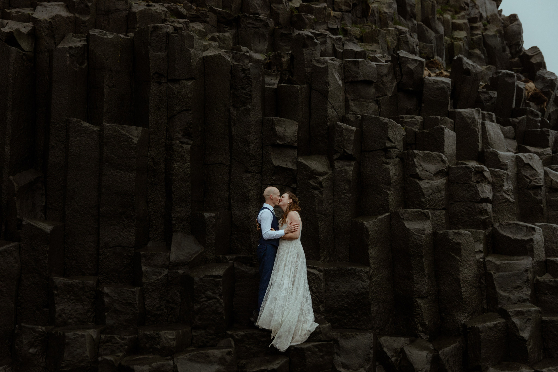 The day’s adventure culminated on a black sand beach. Alone, they explored the beach and enjoyed the view of the waves and the cliffs. These elopement photos at black sand beach was a perfect finale, a moment of peace and awe in the endless daylight of Icelandic summer.
