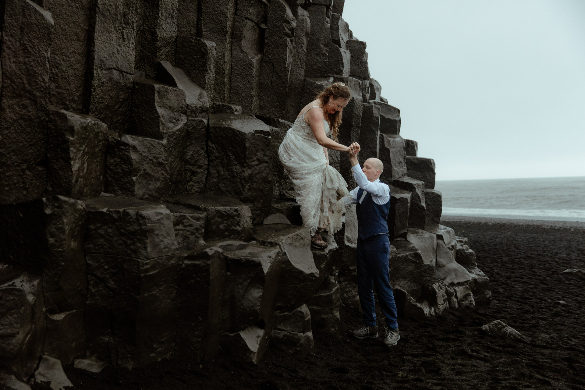 Iceland elopement at black sand beach