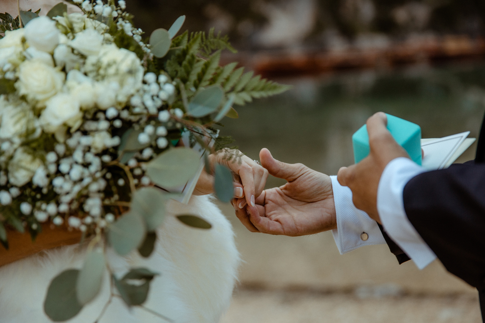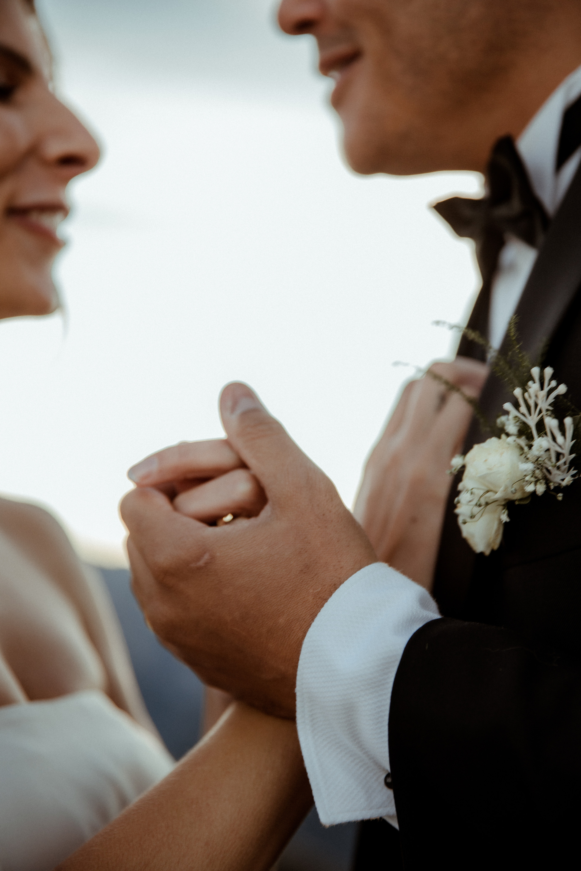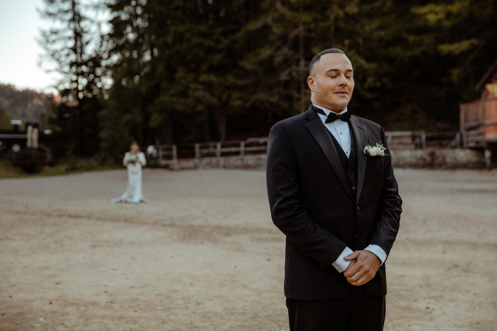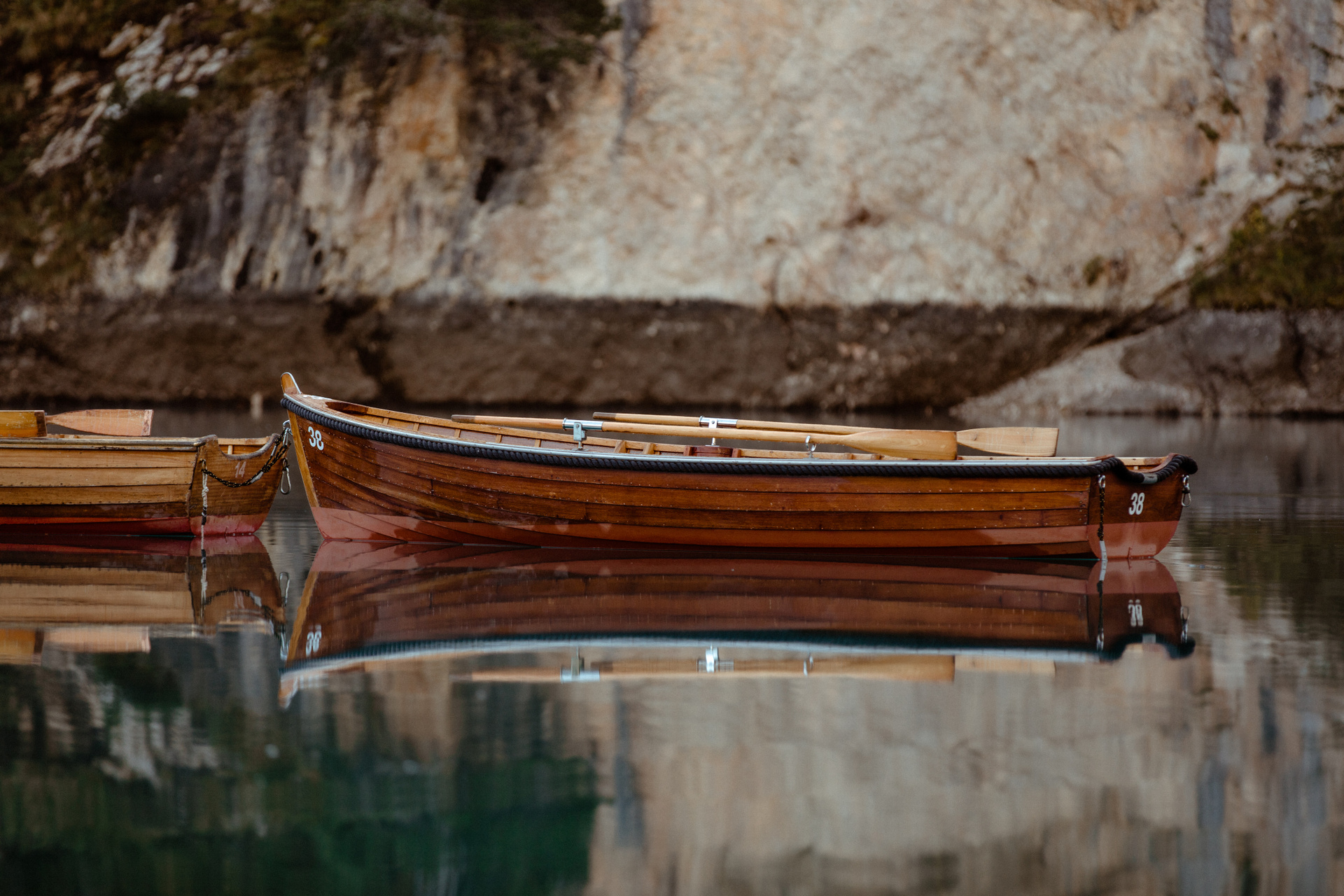 Their wedding day started at sunrise with a stunning first look at Lago di Braies. They celebrated their love with cymbolic ceremony after. Exchanged vows in a romantic ceremony on that Italian lake, where they rented a vintage wooden boat after to row to the middle for a truly unique experience!