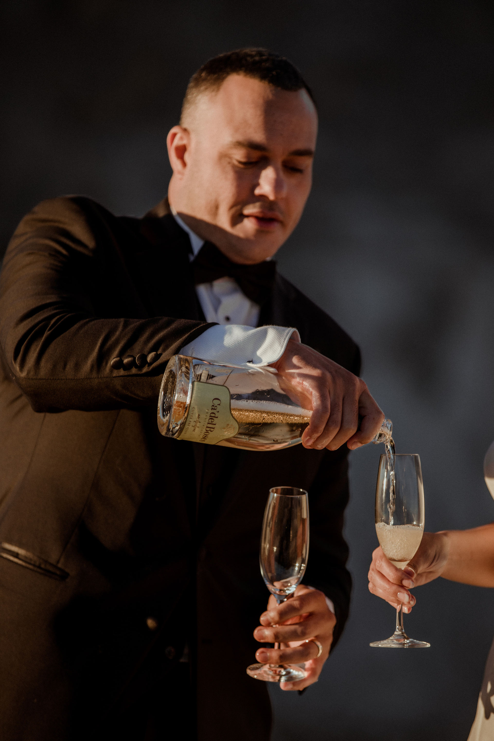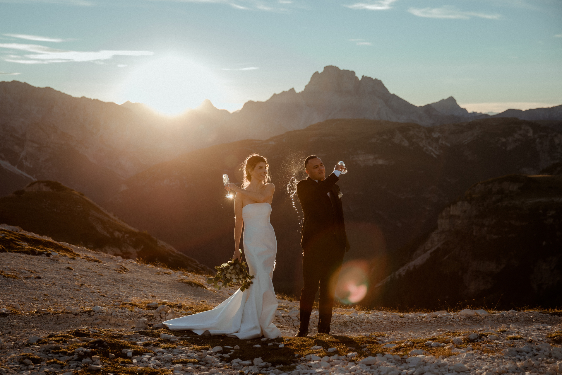Hiked to the summit, popped up a bottle of champagne, and raise a glass to the love of their life amidst the stunning panoramic views of Dolomites mountain!