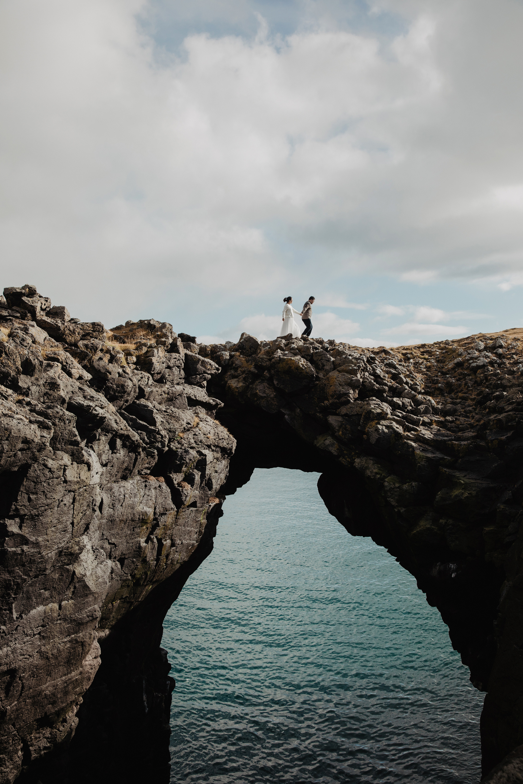 Another beautiful place is the cave and the ravine Rauðfeldsgjá Gorge, where you need to climb the mountain, but as a reward you get very beautiful landscapes from above. It is impossible not to visit the famous Arnastapi Arch (Arnastapi) for the sake of beautiful photographs and the thrill of walking along it. We were lucky and the wind was not very strong, so Young and Yu were able to calmly pass over the stone bridge.